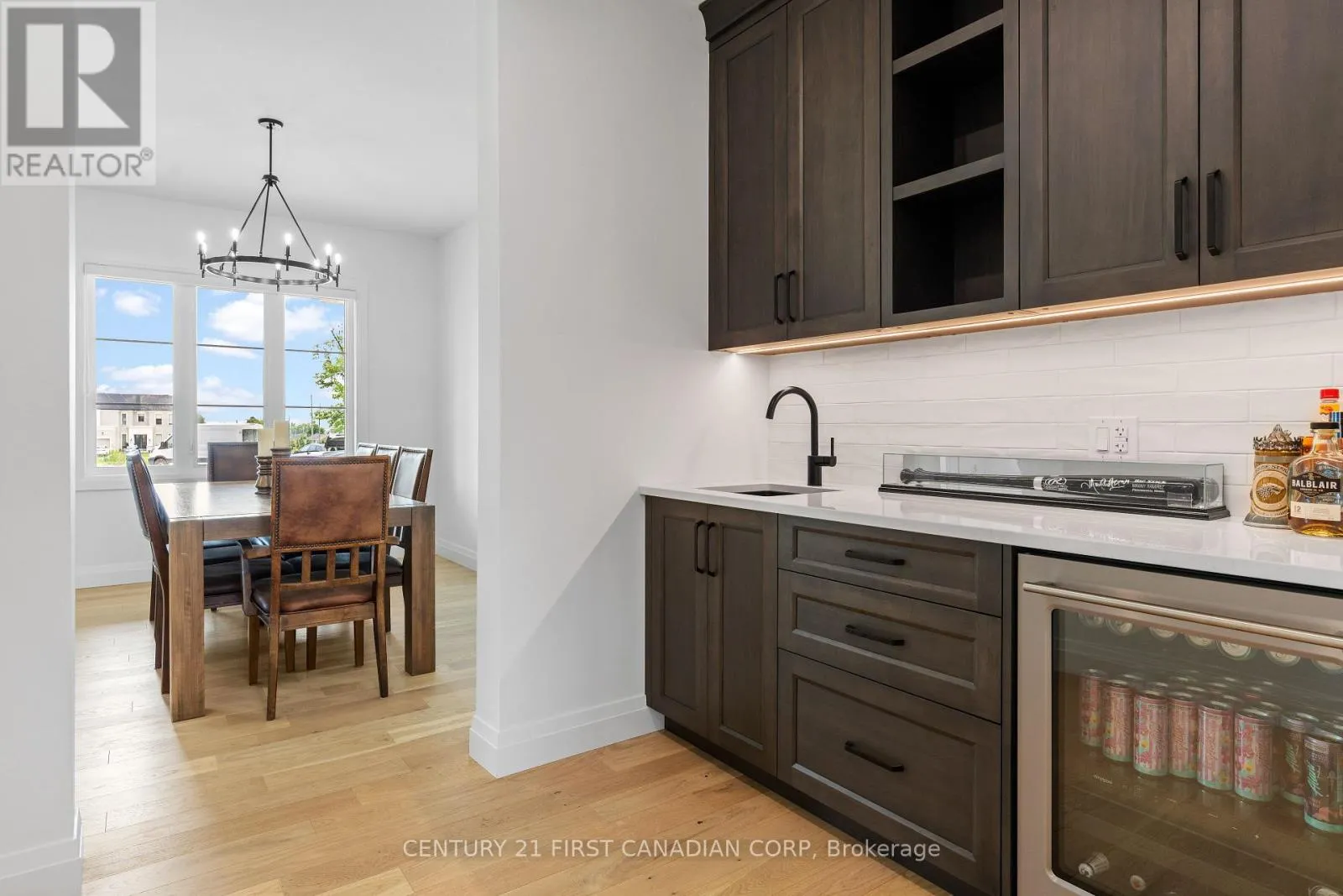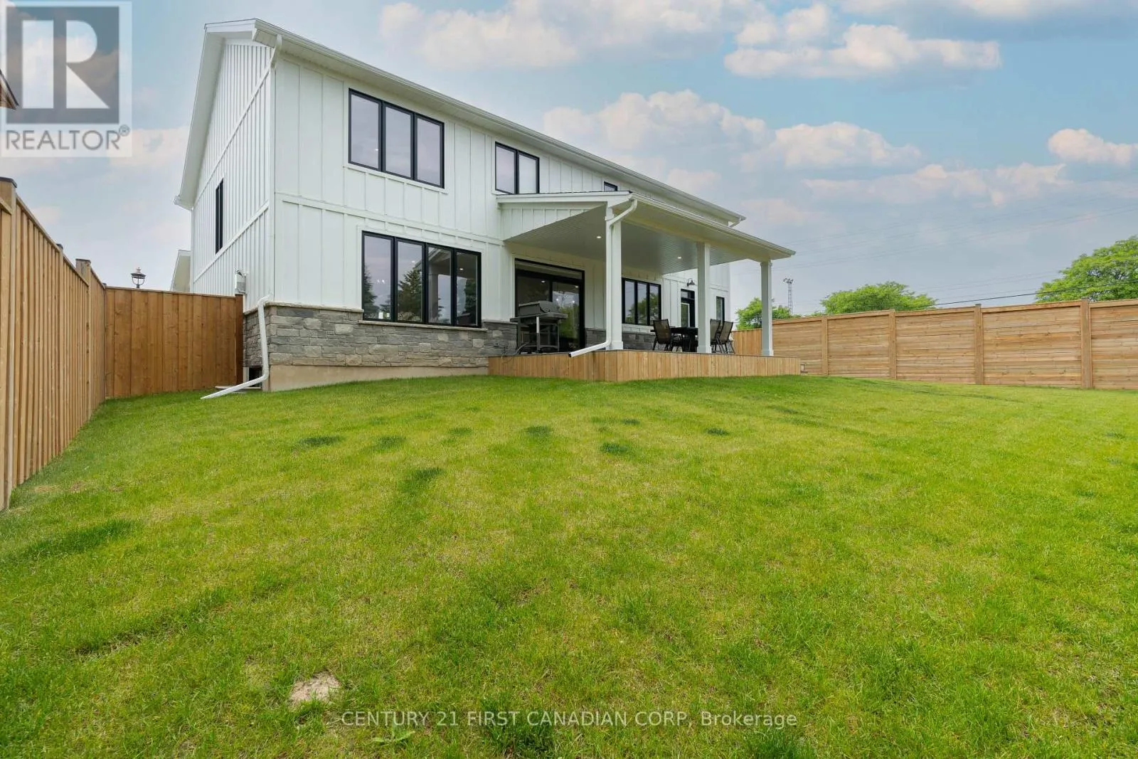 Cross Streets: Apricot Drive. ** Directions: From Boler Rd turn East on Manhattan Dr., then North on Apricot Dr then West on Princeton Terr. Custom-built by Castell Homes, this exceptional 4+1 bedroom, 4.5 bath home is located in the prestigious Boler Heights community in London. Set at the end of an exclusive court, it offers over 3,190 square feet above grade and 1,168 in the lower level for a total of over 4,300 square feet of finished space on a fully fenced, spacious lot with a complete Rain Bird irrigation system. The open-concept main floor features a great room with gas fireplace and custom built-ins, a chef's kitchen with quartz countertops, large island, gas stove, walk-in pantry, and a butler's pantry with bar fridge connecting to the formal dining room. A private office, mudroom, and powder room complete the level. Upstairs includes four bedrooms, each with bathroom access, including a luxurious primary suite with a walk-in closet and spa-inspired ensuite. A convenient laundry room adds practicality. The finished lower level offers a spacious rec room, games area, fitness room, fifth bedroom, and full bath. A covered 22' x 12' deck overlooks the backyard. Located close to Byron, Optimist Park, and Westwood Power Centre, with easy access to Highway 401. (id:27476)