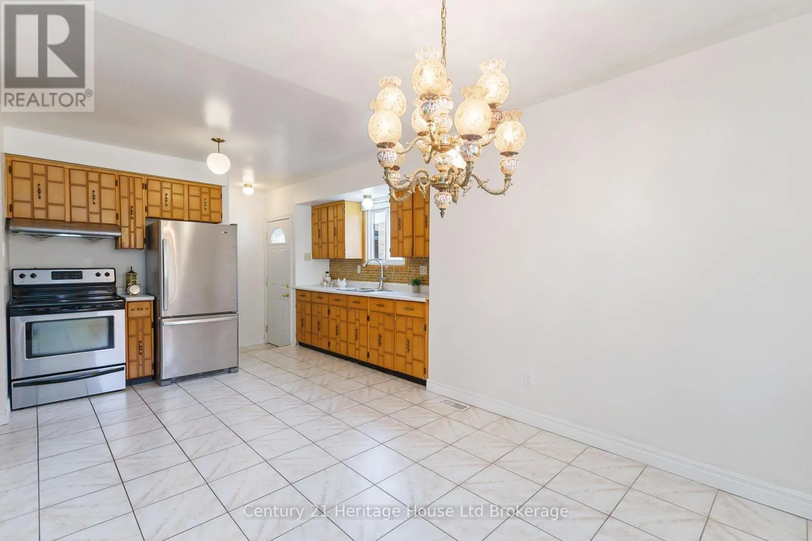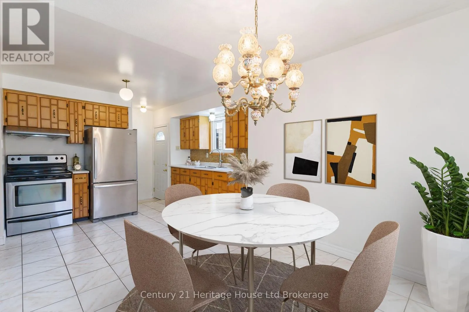 Cross Streets: Ernest Ave and Southdale Rd. ** Directions: from Southdale Rd, south on Ernest Ave and East on Rosamond Cr. Welcome to this charming all-brick bungalow in the highly sought-after Whiteoaks neighbourhood - the perfect family home or multi-generational living opportunity! Ideally located within walking distance to shopping, schools, and parks, with easy access to downtown and Hwy 401/402, this home offers convenience and comfort. The main level features an inviting open-concept layout with a spacious kitchen and dining area that flows seamlessly into the bright living room - ideal for family gatherings. The finished lower level offers a warm, cozy feel with a fireplace, a large family room with newer flooring, a recently renovated kitchen, a den/flex room, and a 3-piece bath - perfect for in-laws or as a potential income suite with its own separate entrance. Additional updates include a newer roof, updated electrical panel, and central air conditioning. Situated in a well-established area, this move-in-ready home offers plenty of finished living space and exceptional versatility for today's modern family. (id:27476)