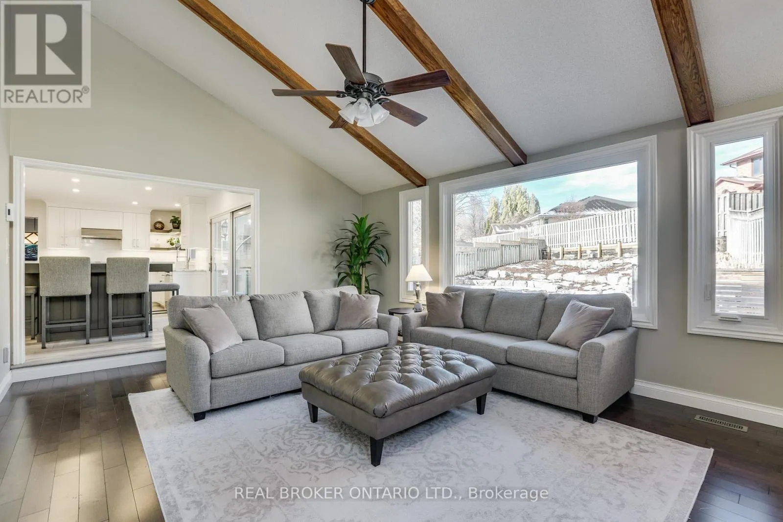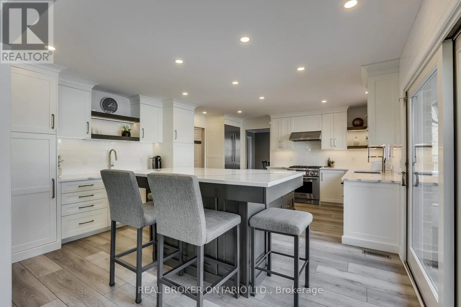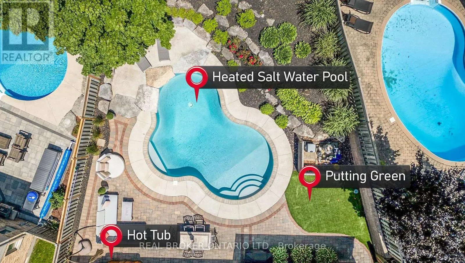 Commissioners Rd and Butternut Grove Homes like 23 Chestnut Hill don't come up often in this part of Byron. From the moment you step inside, you feel that comfortable, neighbourly feel paired with the kind of upgrades and living spaces families dream of.The main living space is the showstopper, with tall ceilings, rich beams, a brick fireplace, and large windows overlooking the backyard retreat. The flow into the custom Duo-built kitchen makes everyday life simple, with a quartz huge island, Thermador appliances, double sinks, wine fridge, and endless prep space.Major upgrades give peace of mind: new windows and front door (2025), new furnace and AC (2022), updated pool and hot tub pumps, 200 amp panel, heated floors in three bathrooms, custom closets, and irrigation system.Outside is your own private resort. Enjoy the heated saltwater sport pool, hot tub, astroturf pad, terraced gardens, and multiple patios perfect for relaxing or hosting.The finished lower level adds even more flexibility with a bright family room, bonus rooms, full bath, and wall-to-wall storage. With trails, Boler Mountain, parks, and great schools nearby, this is a rare chance to own a move-in-ready home in a sought-after pocket of Byron. (id:27476)