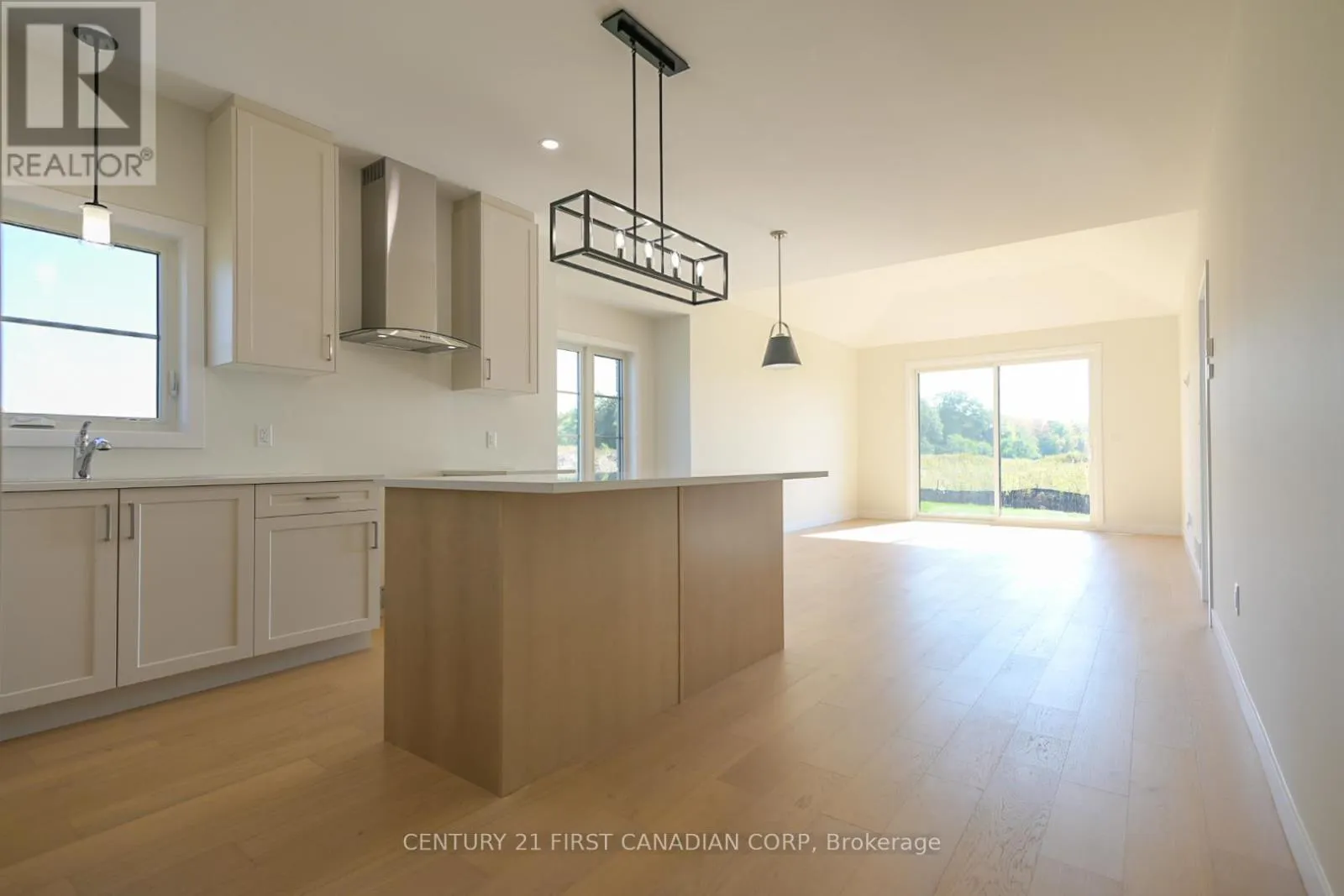 Cross Streets: Campbell Street and Main Street. ** Directions: Townblock on the south east side of the roundabout with Hayward Drive and Campbell Street. Show-Stopping from the Inside Out, these Award-Winning Townhomes are sure to Impress from the Moment You Arrive. This 2 Bed, 2 Full Bath Executive Layout is thoughtfully Finished, providing 1,281 SqFt of Main Floor Living Space, plus 1,000+ SqFt of Unfinished Basement. The Main Level features an Upgraded Kitchen with Quartz Countertops, Cabinets to the Ceiling, a Stainless Steel Chimney Range Vent, and Added Must-Haves like Pot & Pan Drawers and a Microwave Cubby. The adjoining Dinette and Great Room complete the area, showcasing a 12' Vaulted Ceiling and 8'-wide Sliding Patio Door at the rear of the home. Engineered Hardwood and Ceramic Tile Flooring throughout the Main Level with Upgraded Carpet in the Bedrooms make for Luxurious Comfort with Every Step. Each Bungalow is Located on a Large Corner Lot with an equally Expansive Side Yard with Three Sides Fenced by Rockmount Homes! The Stone Masonry and Hardie Paneling Exterior combine Timeless Design with Performance Materials to offer Beauty & Peace of Mind. This Development is in the Vibrant Lambeth Community is Finishing Up with Limited Availability Left. Act Now to Secure Your Home with Close Access to Highways 401 & 402, Shopping Centres, Golf Courses, and Boler Mountain Ski Hill. Visit weekly Open Houses or contact the Listing Agent for a Private Showing! (id:27476)