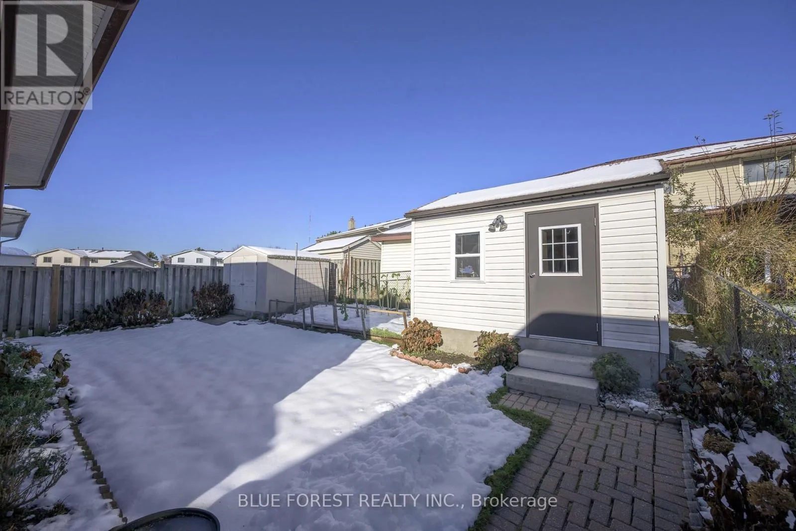 Cross Streets: Homeview Rd / Crawford St. ** Directions: From Southdale Rd E, turn North onto Homeview Rd. Turn right onto Crawford St, and left onto Golfdale St. House on left. Welcome 36 Golfdale Cres - this charming 4 level, all brick backsplit has been meticulously cared for by the same family since it was built in 1987. Timeless main floor layout that is perfect for hosting the large extended family and friends. The large eat-in kitchen has tons of cupboard and counter space. Formal dining area for family dinners and a bright, spacious living room complete the main floor. The upper level features 3 spacious bedrooms and a 4 pc bathroom. Huge lower level family room with a modern fireplace feature wall, a corner built in bar, and 3 pc bathroom. Family room could easily be divided for a 4th bedroom. The lowest level features a large recroom, spacious laundry/utility room, storage rooms and a cold room! Many features throughout the years, including furnace 2024, A/C 2025, roof, 200 amp panel and more. Fully fenced yard has a patio area, 2 sheds (one with hydro), and lots of greenspace for the kids to run around. Double wide concrete driveway and located on a quiet crescent with quick access to HWY 401, Victoria Hospital, Westmount, downtown, parks and more. Convenient side entrance could be utilized to turn the lower levels into a separate basement unit! Come see what this home has to offer! (id:27476)