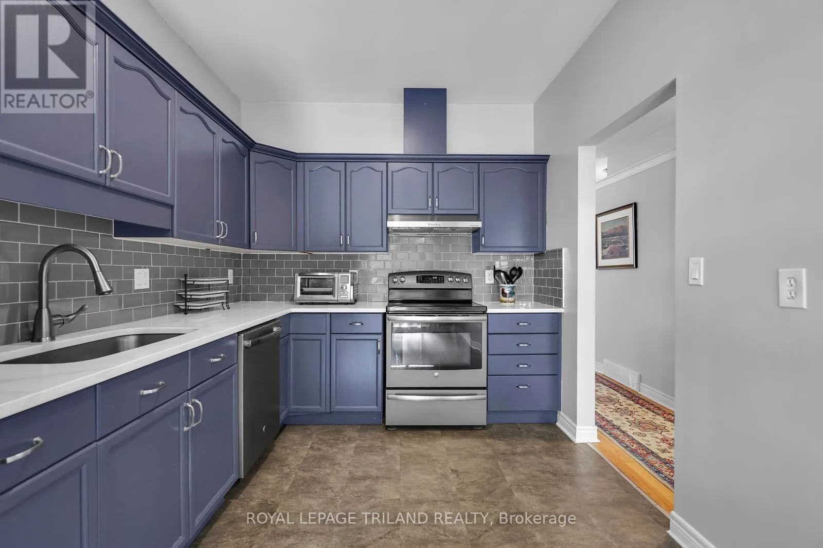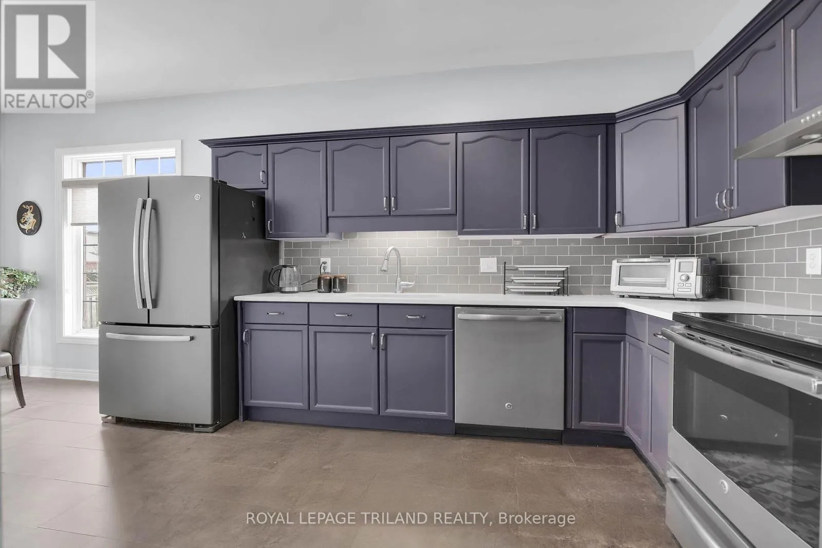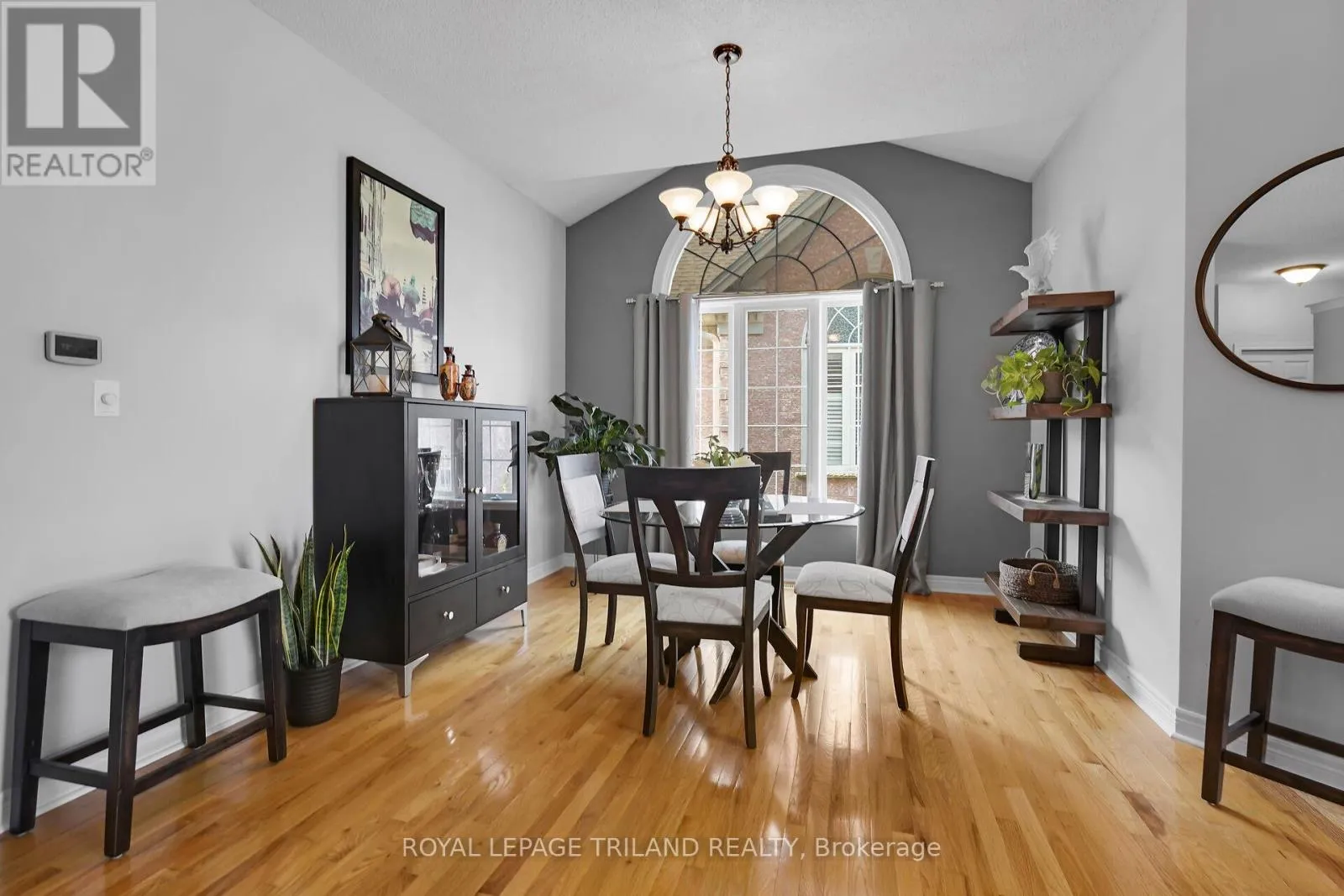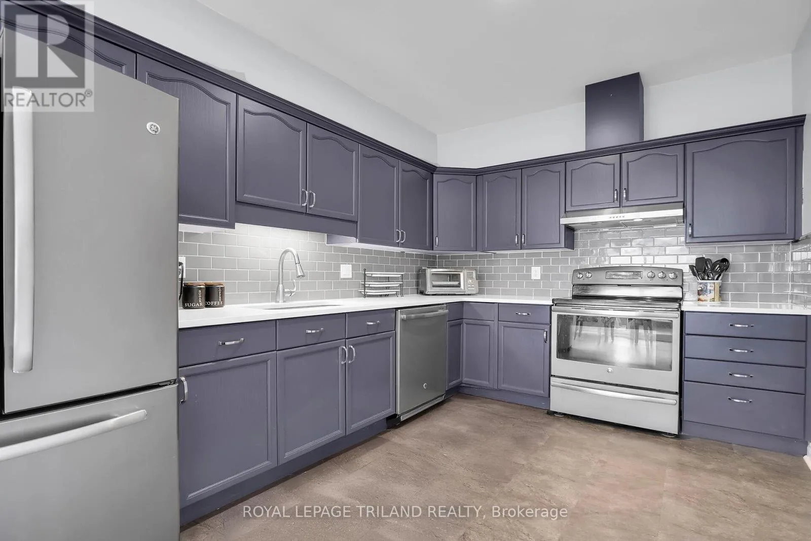 COMMISSIONERS ROAD AND HIGHBURY AVENUE Welcome to 121-2025 Meadowgate Blvd, a charming end unit townhouse nestled within a desirable gated community. Boasting 2+1 well-appointed bedrooms and 2.5 modern bathrooms, this residence is perfect for anyone looking to embrace a more comfortable, downsized lifestyle without compromising on quality or space. Upon entering this exquisite home, you'll be surrounded by the warmth of natural light that beams across the open concept living and dining area, complete with rich hardwood flooring, a striking vaulted ceiling, and an inviting ambience. The living space seamlessly unfolds into the eat-in kitchen, where culinary enthusiasts will delight in the opportunity to create sumptuous meals before stepping out to the private deck, crowned with a delightful gazebo, ideal for savouring peaceful moments. Convenience is key, with main floor laundry facilities and a generous primary bedroom that features a serene ensuite and a spacious walk-in closet. The large finished lower level offers additional living space, including a comfortable bedroom, a full bathroom, a recreation room perfect for entertaining, and a gas fireplace that adds a touch of cozy elegance. This immaculate home also includes a single car garage with opener and inside entry. The clubhouse, a hub of social activity, provides a party room, meeting room, gym, library, and an indoor pool. Its deck overlooks a tranquil pond with a fountain, offering picturesque views and a sense of community. Located with easy access to the 401, parks, trails, shopping, and the hospital, this property presents a turn-key solution for those seeking a serene, maintenance-free lifestyle. Spotless and move-in ready, this townhouse awaits to be your new haven of comfort and elegance. (id:27476)
