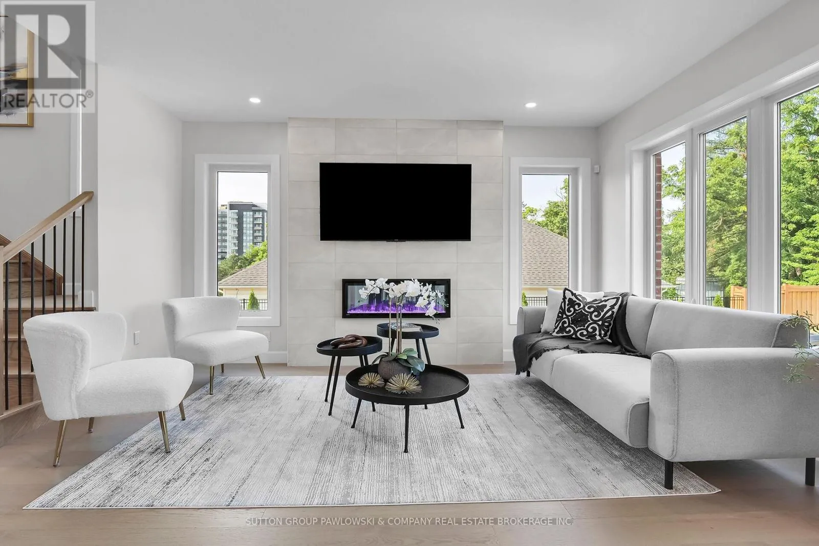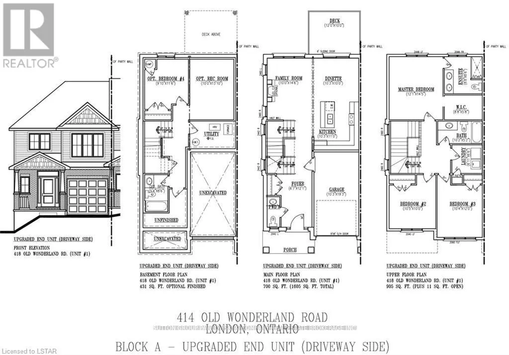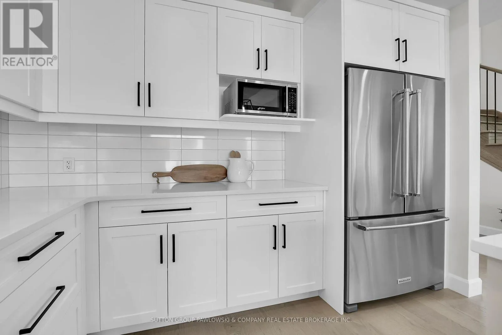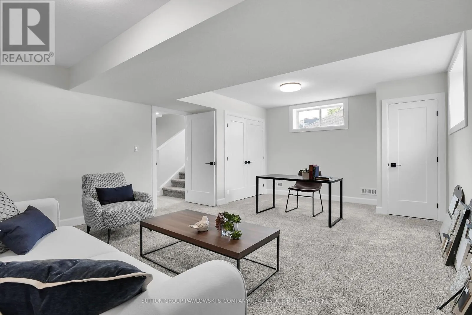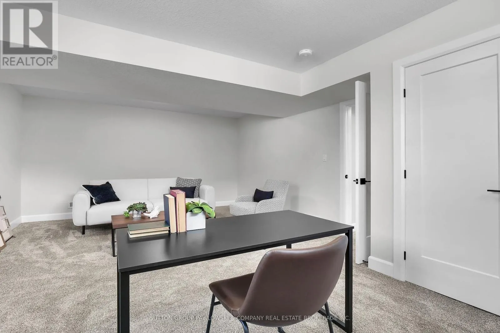 Cross Streets: Teeple Terrace. ** Directions: Wonderland Rd East on Teeple Terrace & North on Old Wonderland Rd. IMMEDIATE POSSESSION AVAILABLE. Discover modern luxury and low-maintenance living in this quality-built vacant land condo tucked at the end of a quiet cul-de-sac in Southwest London. Offering approx. 1,622 sq ft plus a beautifully finished 431 sq ft lower level, this end unit stands out for its craftsmanship, layout.The main floor features 9 ft ceilings, engineered hardwood, and an open concept design ideal for both everyday living and entertaining. The chef-inspired kitchen combines custom cabinetry, quartz countertops, tile backsplash, and a large island, with all appliances included. A bright dining area opens to the back deck, while the spacious family room showcases oversized windows and an electric fireplace with modern tile surround.Upstairs, three well-appointed bedrooms include a primary suite with a custom walk-in closet and a sleek ensuite with a porcelain and ceramic tile shower and quartz vanity. A convenient second-floor laundry room completes this level. The lower level adds a versatile finished space-perfect as a rec room, guest suite, or private home office-featuring large windows and a full bathroom.Outside, enjoy your 10' x 12' deck complete with a privacy screen, offering a quiet retreat for morning coffee or evening wind-downs. This thoughtfully designed home delivers comfort, style, and the ease of condo living, all within minutes of shopping, parks, trails, schools, and major amenities. A rare opportunity to move into a brand new home without the wait. (id:27476)
