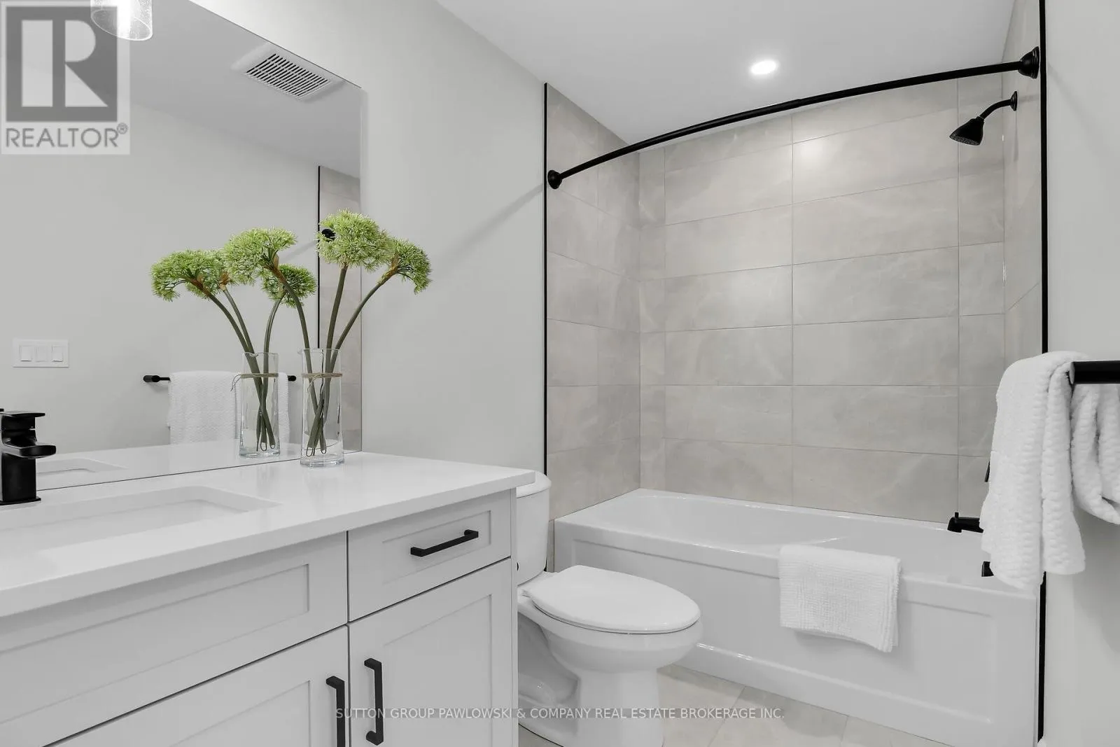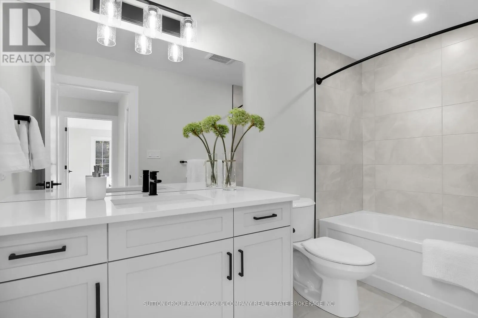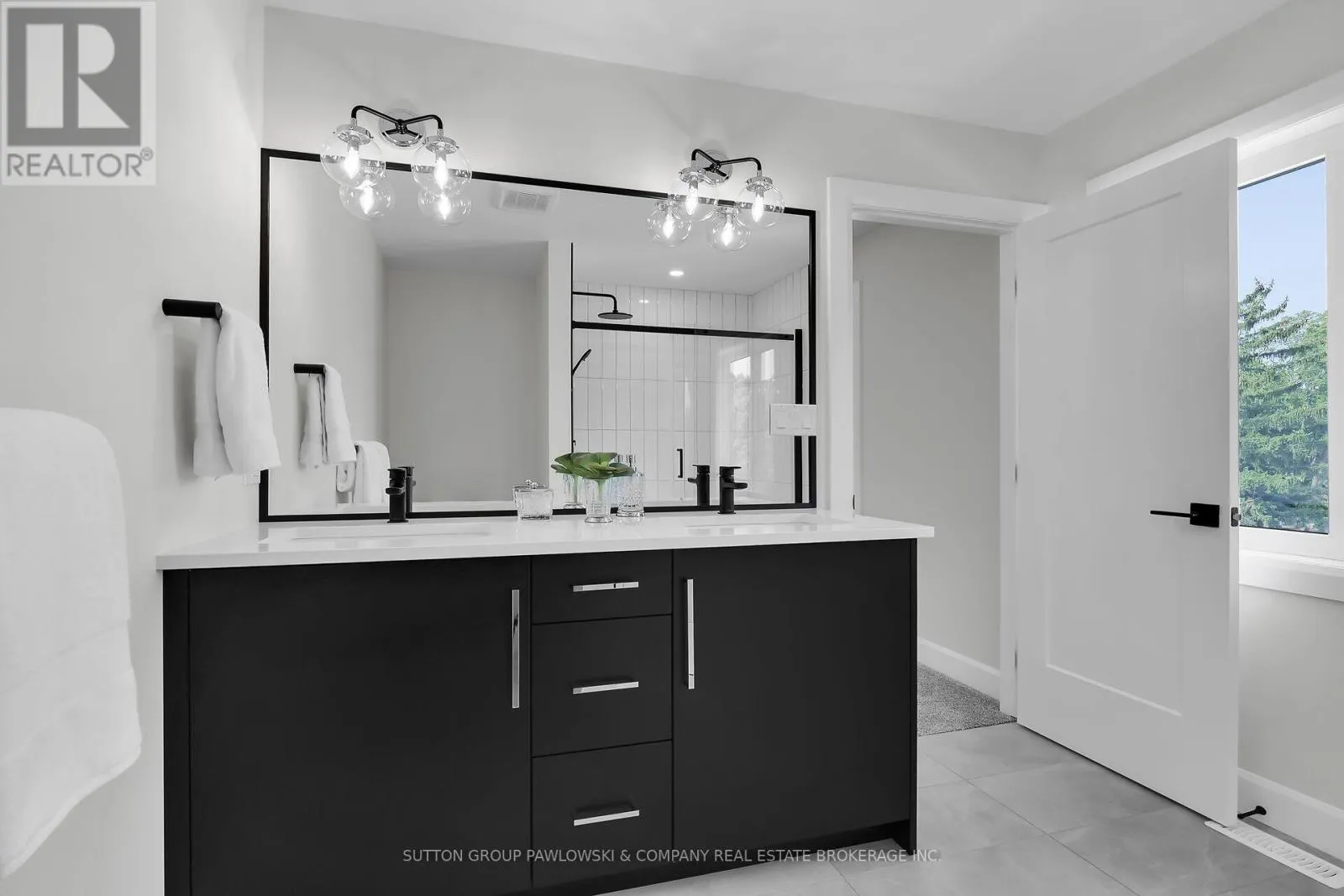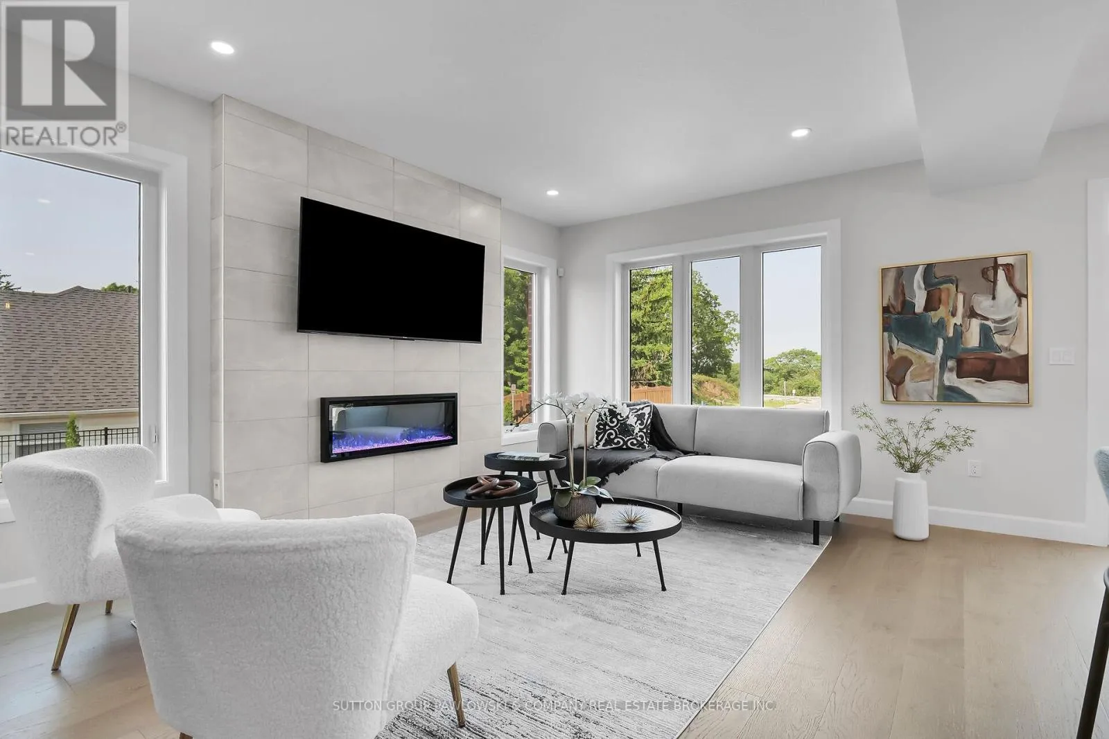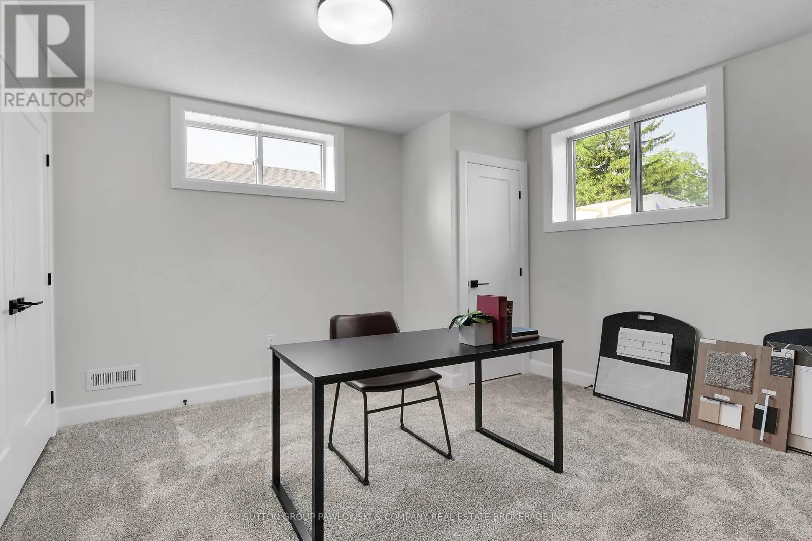Cross Streets: Teeple Terrace. ** Directions: Wonderland Rd East on Teeple Terrace & North on Old Wonderland Rd. IMMEDIATE POSSESSION AVAILABLE. Discover modern luxury and low-maintenance living in this quality-built vacant land condo tucked at the end of a quiet cul-de-sac in Southwest London. Offering approx. 1,622 sq ft plus a beautifully finished 431 sq ft lower level, this end unit stands out for its craftsmanship, layout.The main floor features 9 ft ceilings, engineered hardwood, and an open concept design ideal for both everyday living and entertaining. The chef-inspired kitchen combines custom cabinetry, quartz countertops, tile backsplash, and a large island, with all appliances included. A bright dining area opens to the back deck, while the spacious family room showcases oversized windows and an electric fireplace with modern tile surround.Upstairs, three well-appointed bedrooms include a primary suite with a custom walk-in closet and a sleek ensuite with a porcelain and ceramic tile shower and quartz vanity. A convenient second-floor laundry room completes this level. The lower level adds a versatile finished space-perfect as a rec room, guest suite, or private home office-featuring large windows and a full bathroom.Outside, enjoy your 10' x 12' deck complete with a privacy screen, offering a quiet retreat for morning coffee or evening wind-downs. This thoughtfully designed home delivers comfort, style, and the ease of condo living, all within minutes of shopping, parks, trails, schools, and major amenities. A rare opportunity to move into a brand new home without the wait. (id:27476)