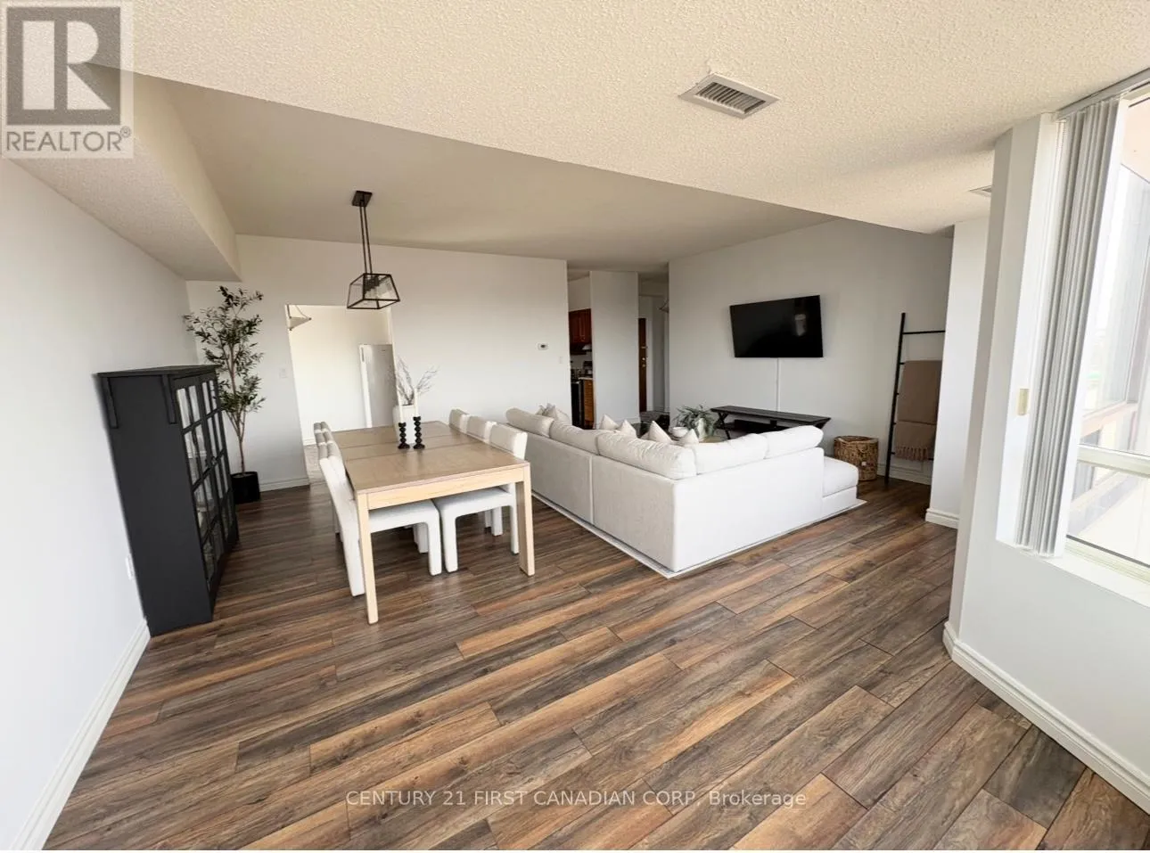 Cross Streets: Commissioners Road. ** Directions: Wonderland Rd S and Village Green Ave. PENTHOUSE LIVING AT ITS FINEST! Welcome to this stunning top-floor corner unit offering breathtaking southeast panoramic views and approximately 1,370 sq. ft. of bright, modern living. This spacious 2-bedroom, 2-bathroom condo features a beautiful eat-in kitchen with ample cabinetry, a pantry, and a dishwasher, opening into a large living and dining area filled with natural light. Both bedrooms include large windows, with the primary suite serving as a private retreat complete with a 3-piece ensuite and walk-in closet. The large second bedroom -currently used as a theatre and guest room-offers two closets for added storage. Additional highlights include in-suite laundry, high ceilings, generous storage, and numerous updates throughout, such as new flooring, lighting, blinds and central A/C. Enjoy exceptional building amenities including a rooftop patio with BBQ, party room, and gym, all while taking in spectacular city views. Water and one covered parking space are included in the rent. $2,500 Plus Hydro and Gas. (id:27476)