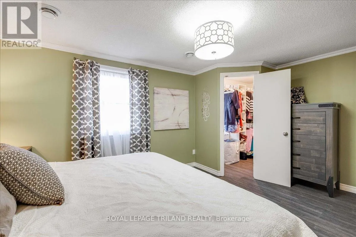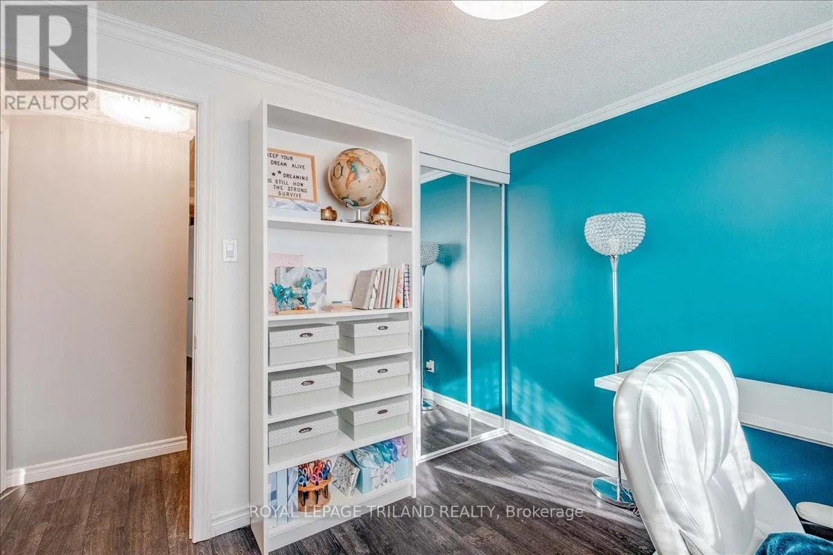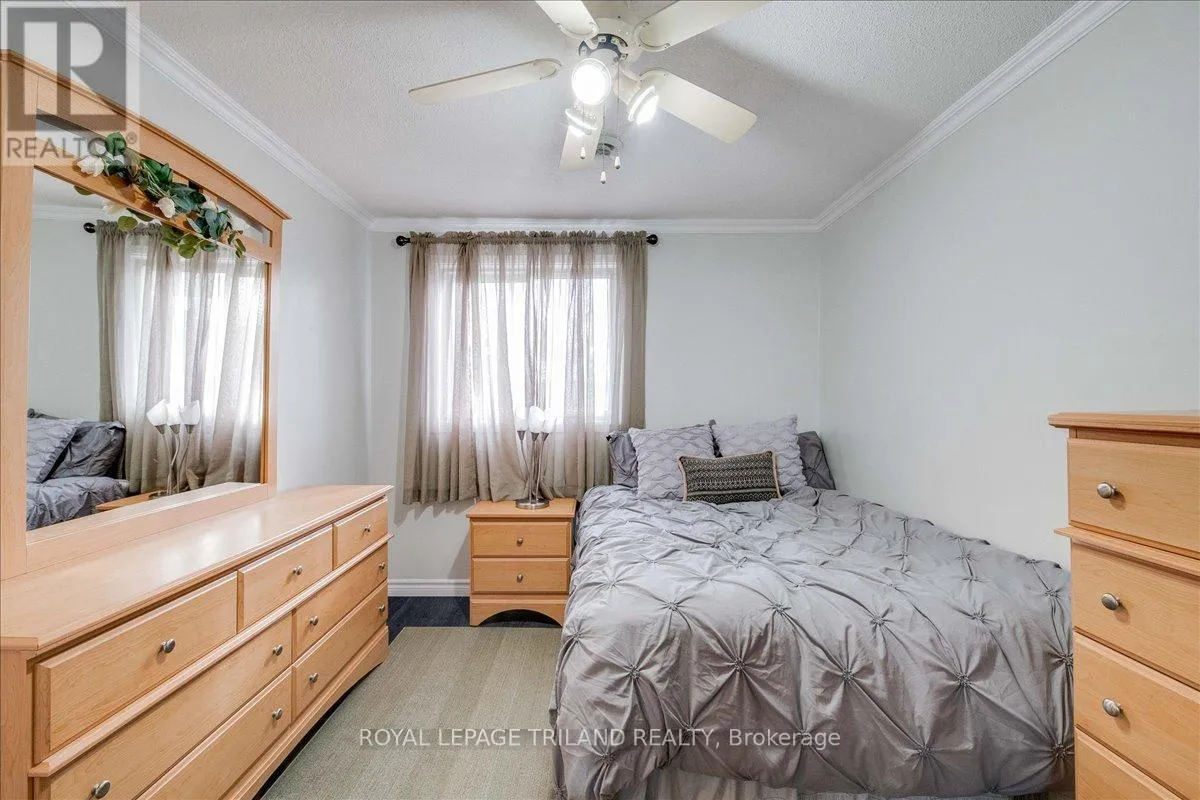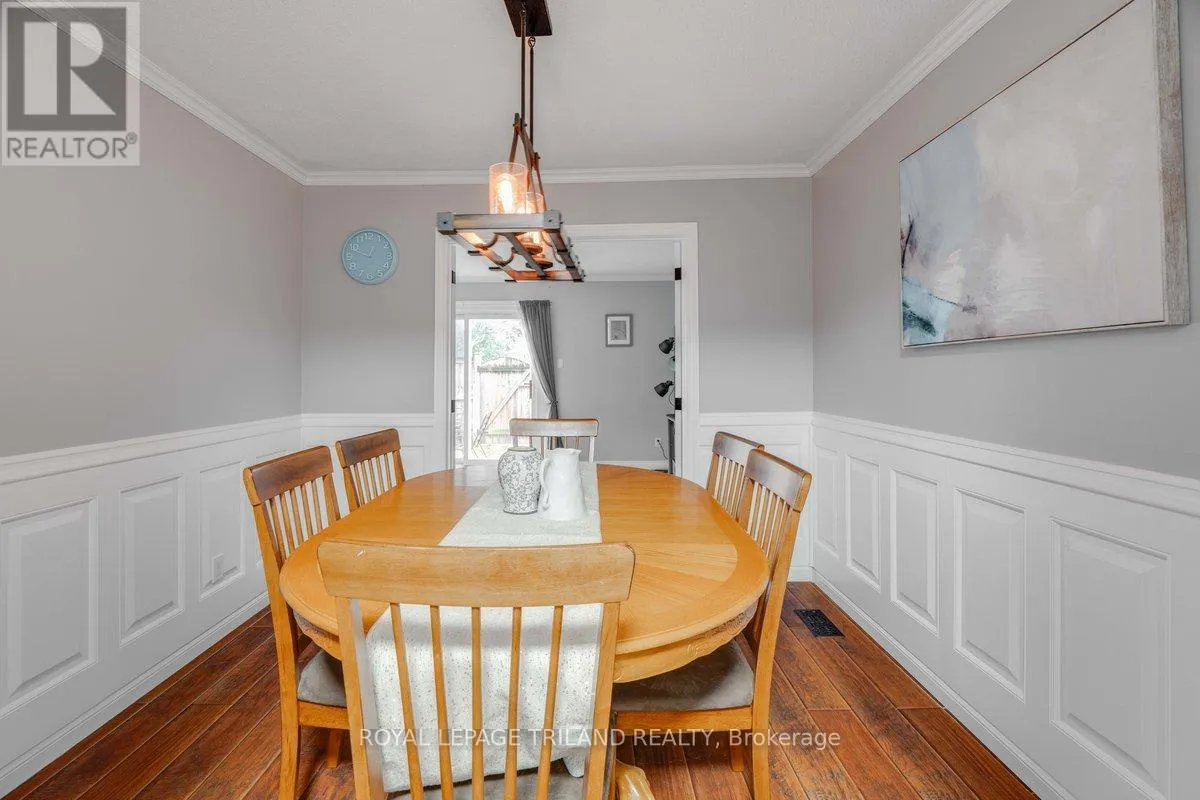 Cross Streets: Ernest Ave. ** Directions: In the intersection between Ernest Ave and Jalna Blvd. Beautifully maintained end-unit townhome with a carport-style garage. The main floor offers a kitchen, 2-piece bath, and rich laminate flooring through the formal dining area and living room. Bright patio doors provide access to your own fully fenced patio that backs onto open green space. Upstairs features an updated 4-piece bathroom and three spacious bedrooms, including a light-filled primary with a walk-in closet. The finished basement adds valuable living space and extra storage/ personal gym, complete with newly updated flooring (2025). Enjoy the comfort of central heating and air conditioning, no baseboard heaters! Condo fee includes water. Located in a prime location just minutes from Victoria hospital, White Oaks Mall, schools, parks, the Aquatic Centre, and quick access to Highway 401. A wonderful place to call home! (id:27476)