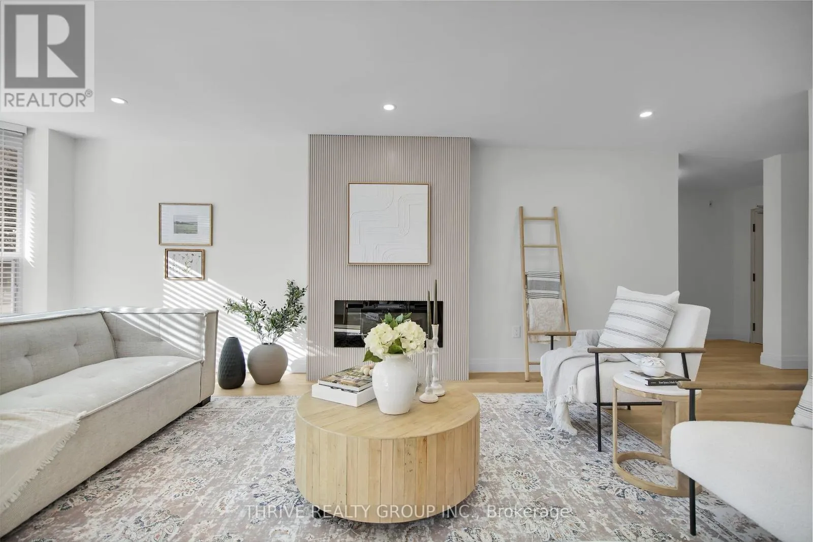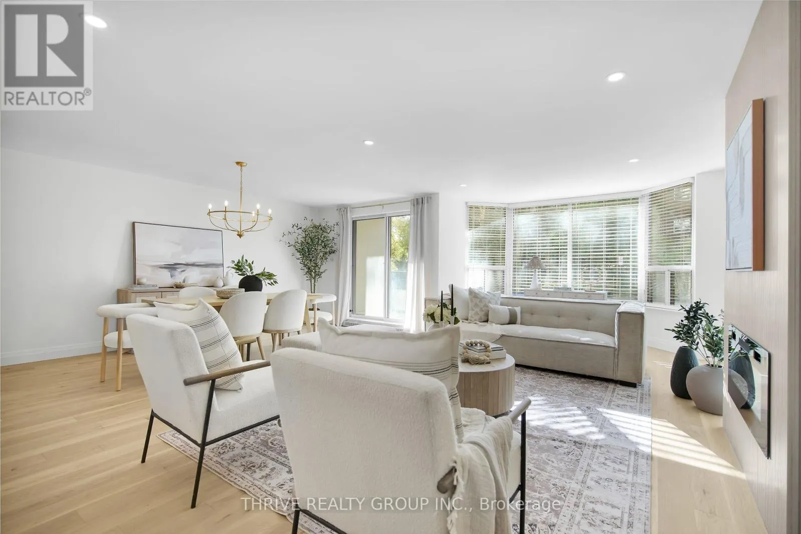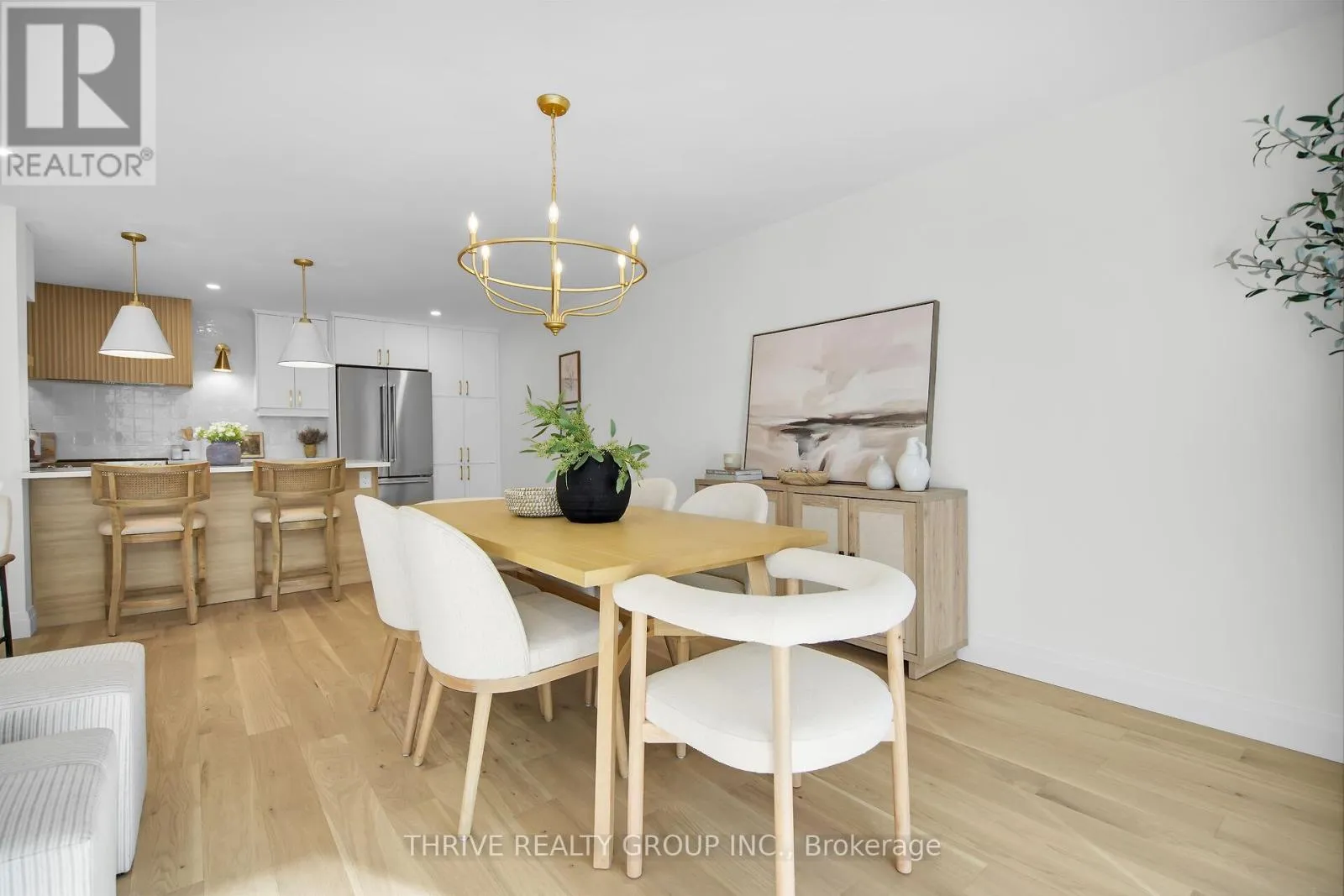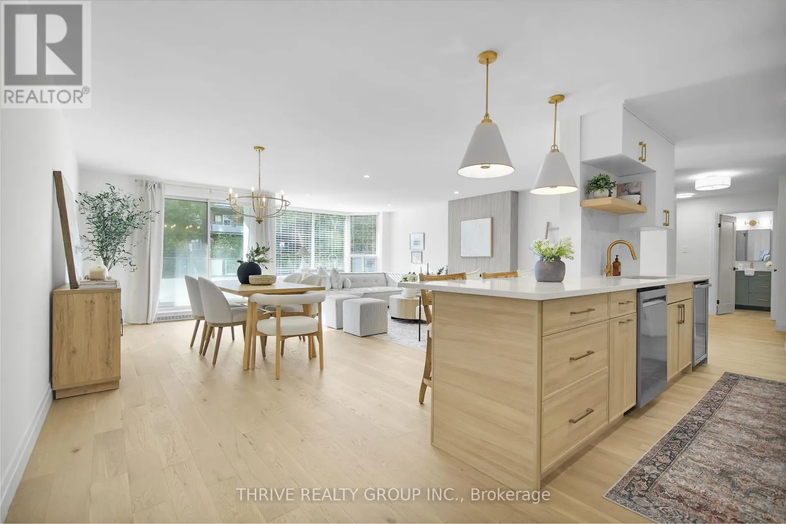 Cross Streets: Commissioners Rd West & Lynden Crescent. ** Directions: South side of Commissioners Rd West, opposite Springbank Park. Welcome to the ultimate blend of style, comfort, and convenience at Byron's Park Terrace Development - just steps from the trails and beauty of Springbank Park! Perfect for downsizers or anyone craving easy one-floor living, this fully updated 2-bedroom, 2-bath condo delivers the wow factor at every turn. The open-concept layout showcases a stunning custom kitchen with quartz countertops, a beverage centre, peninsula seating, and endless storage - ideal for both entertaining and everyday living. Relax in the spacious living room with its engineered hardwood flooring and cozy feature fireplace, or host dinner parties in the dining area with room for 8-10+ guests. The primary suite is a private retreat with a luxurious custom-tiled shower, dual sinks, and direct access to your terrace for morning coffee or evening sunsets. The second bedroom offers flexibility as a guest room, home office, or den. Life at Park Terrace means enjoying amenities like an indoor pool, underground parking, a putting green, and more - all just steps from Byron's best shops, restaurants, and conveniences. Style. Luxury. Location. This is the one you've been waiting for! (id:27476)