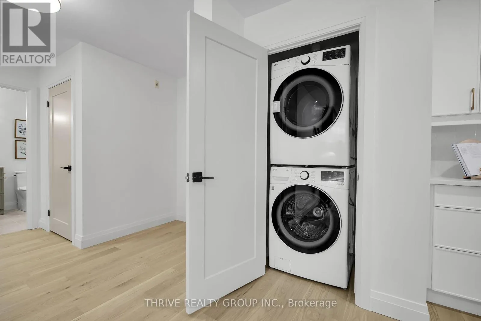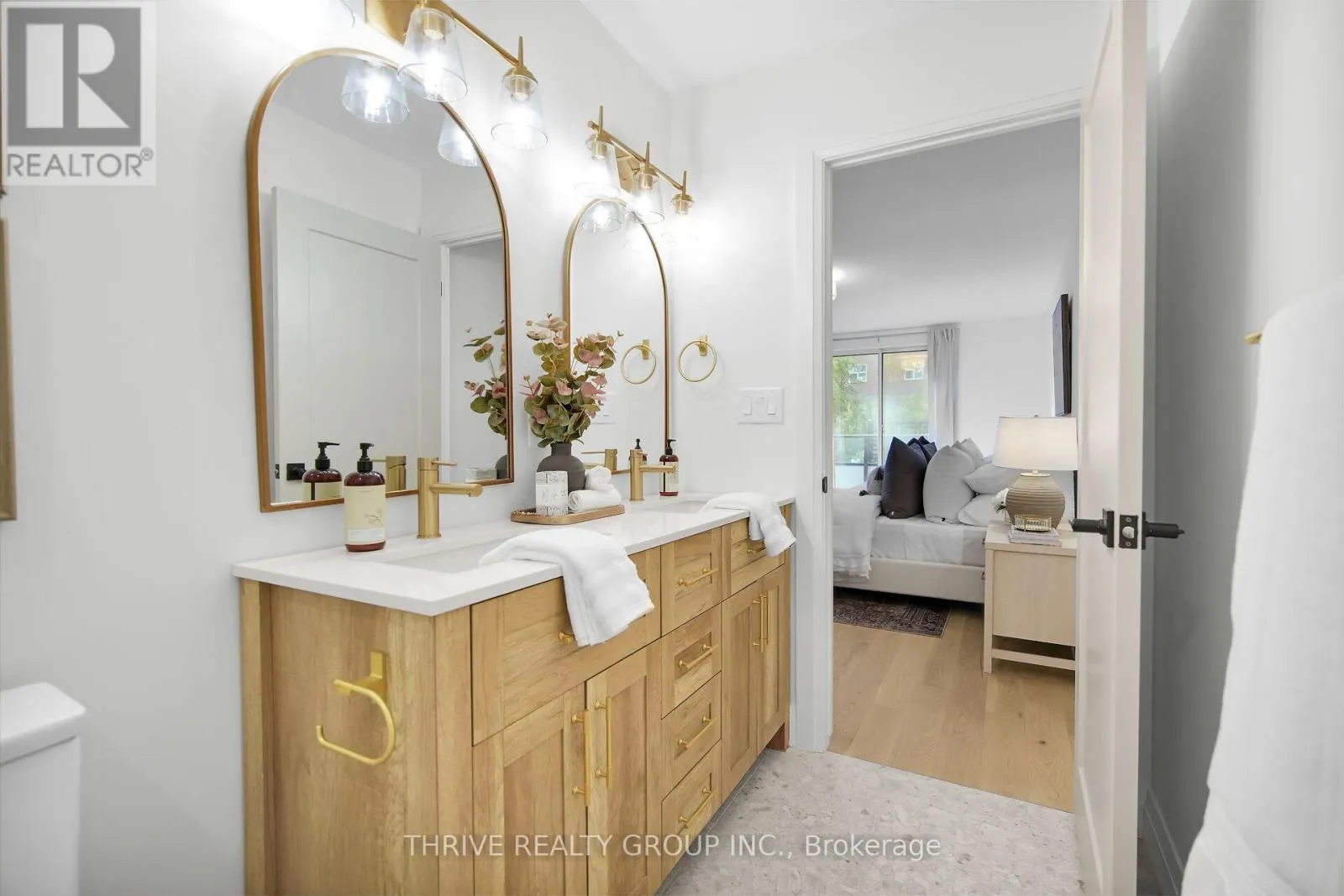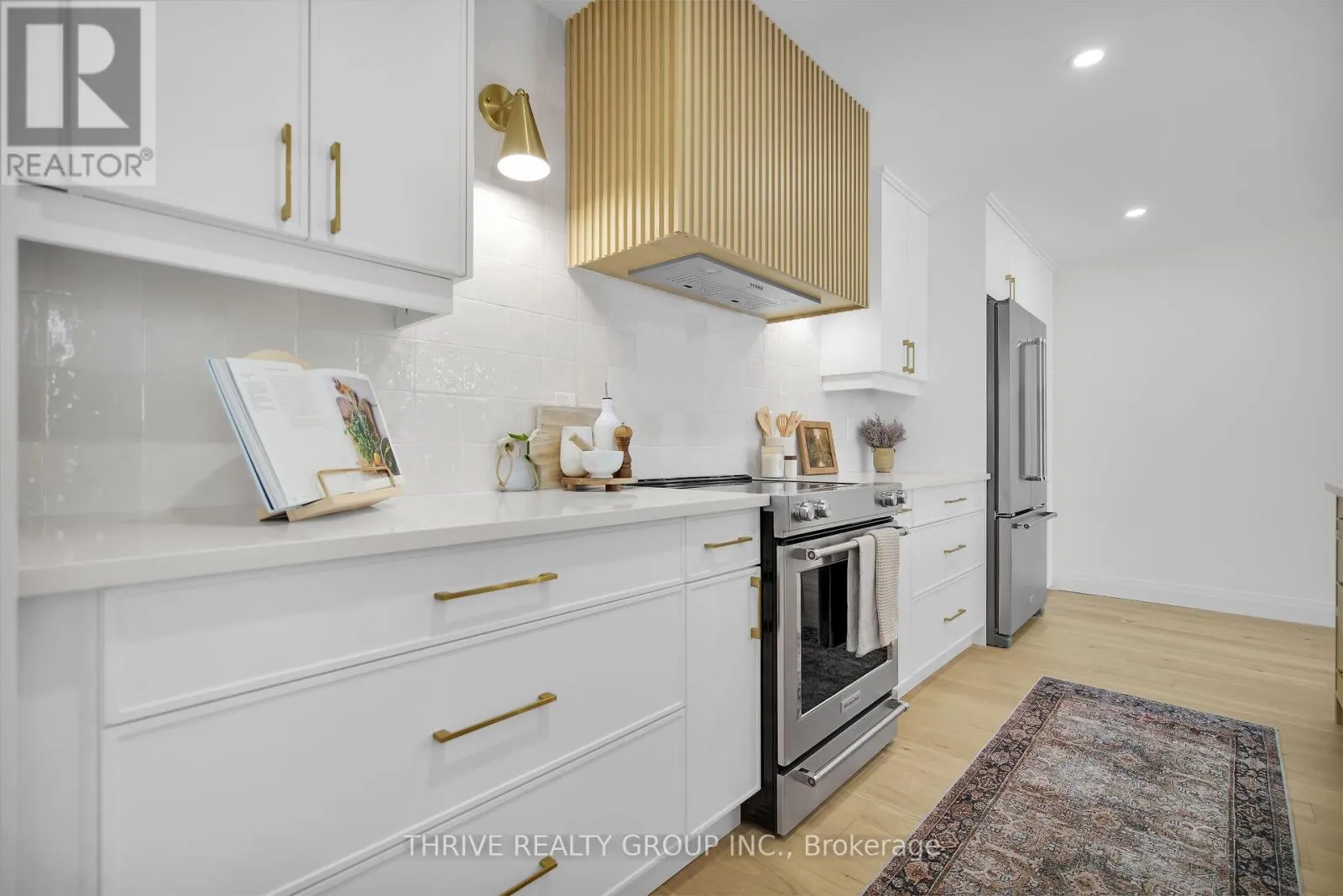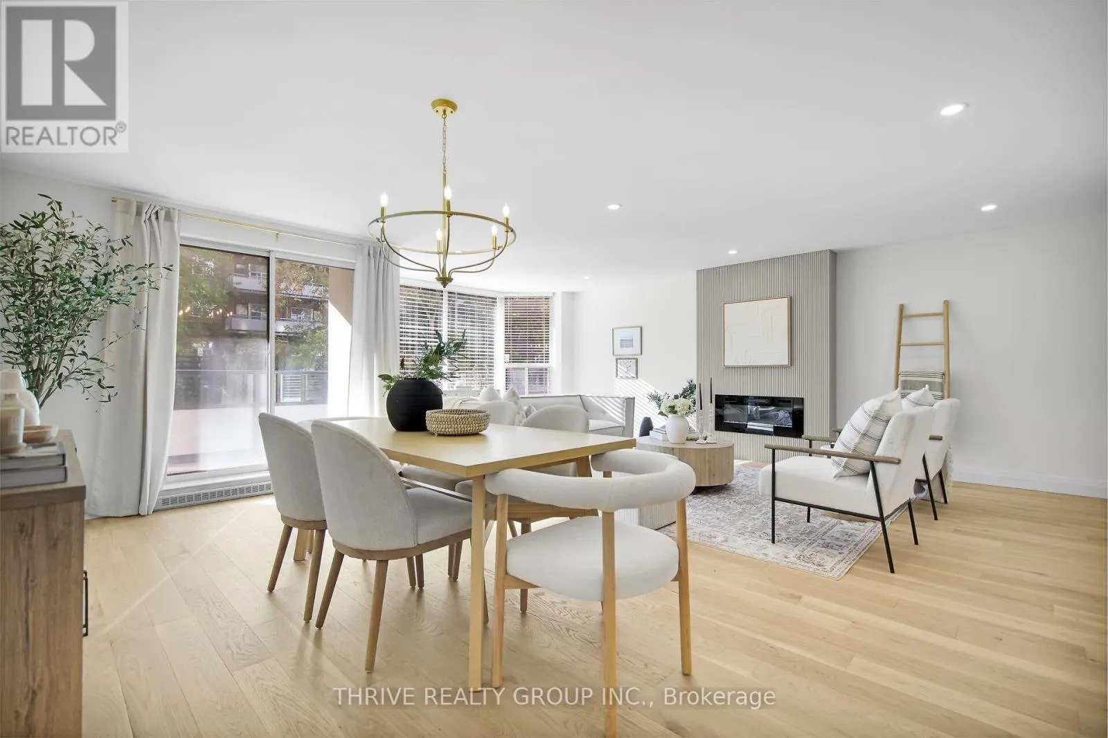 Cross Streets: Commissioners Rd West & Lynden Crescent. ** Directions: South side of Commissioners Rd West, opposite Springbank Park. Welcome to the ultimate blend of style, comfort, and convenience at Byron's Park Terrace Development - just steps from the trails and beauty of Springbank Park! Perfect for downsizers or anyone craving easy one-floor living, this fully updated 2-bedroom, 2-bath condo delivers the wow factor at every turn. The open-concept layout showcases a stunning custom kitchen with quartz countertops, a beverage centre, peninsula seating, and endless storage - ideal for both entertaining and everyday living. Relax in the spacious living room with its engineered hardwood flooring and cozy feature fireplace, or host dinner parties in the dining area with room for 8-10+ guests. The primary suite is a private retreat with a luxurious custom-tiled shower, dual sinks, and direct access to your terrace for morning coffee or evening sunsets. The second bedroom offers flexibility as a guest room, home office, or den. Life at Park Terrace means enjoying amenities like an indoor pool, underground parking, a putting green, and more - all just steps from Byron's best shops, restaurants, and conveniences. Style. Luxury. Location. This is the one you've been waiting for! (id:27476)