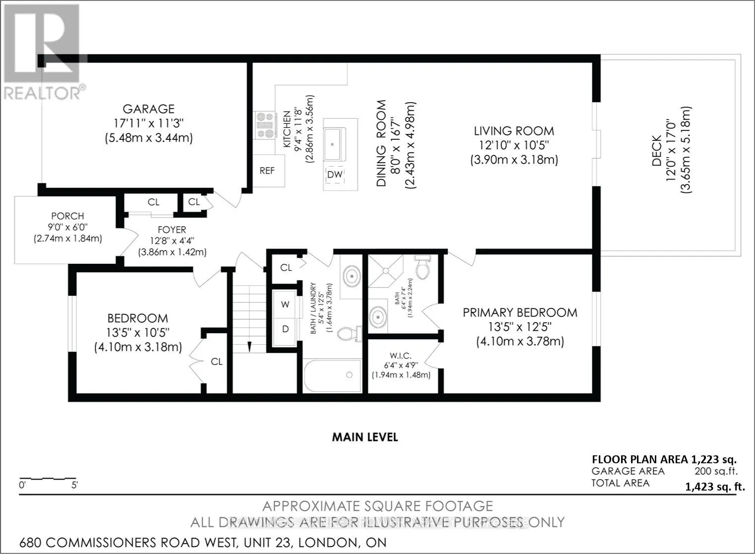 Cross Streets: Commissioners & Wonderland. ** Directions: Commissioners Rd W between Cranbrook & Nottinghill. Westmount ONE FLOOR BUNGALOW CONDO offering great value and just minutes to all major shopping, restaurants, churches, coffee shops, highways and more. Very desirable location at rear of complex backing to single family homes...very private. Open concept design with vaulted ceilings and skylight. Large bright white kitchen with full breakfast bar, hardwood floors through most of main floor, large rear sundeck (new in 2025) off great room. Spacious primary bedroom with walk-in closet and full ensuite bath. Main floor laundry. Single car garage with automatic opener and inside entry. 5 appliances included. (id:27476)