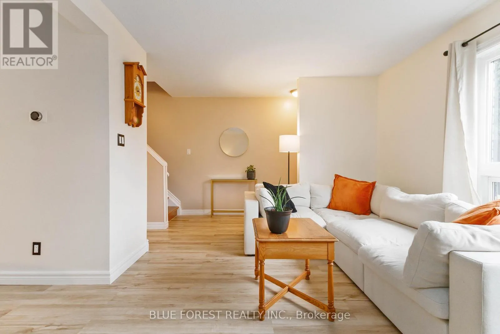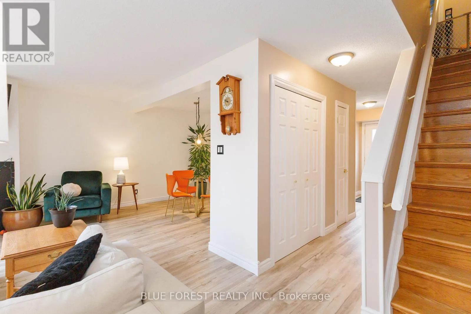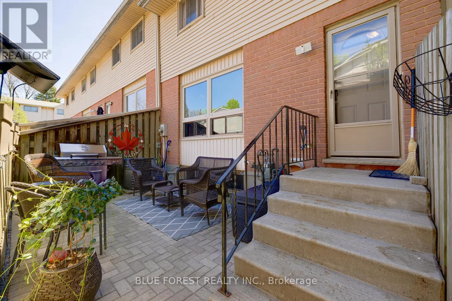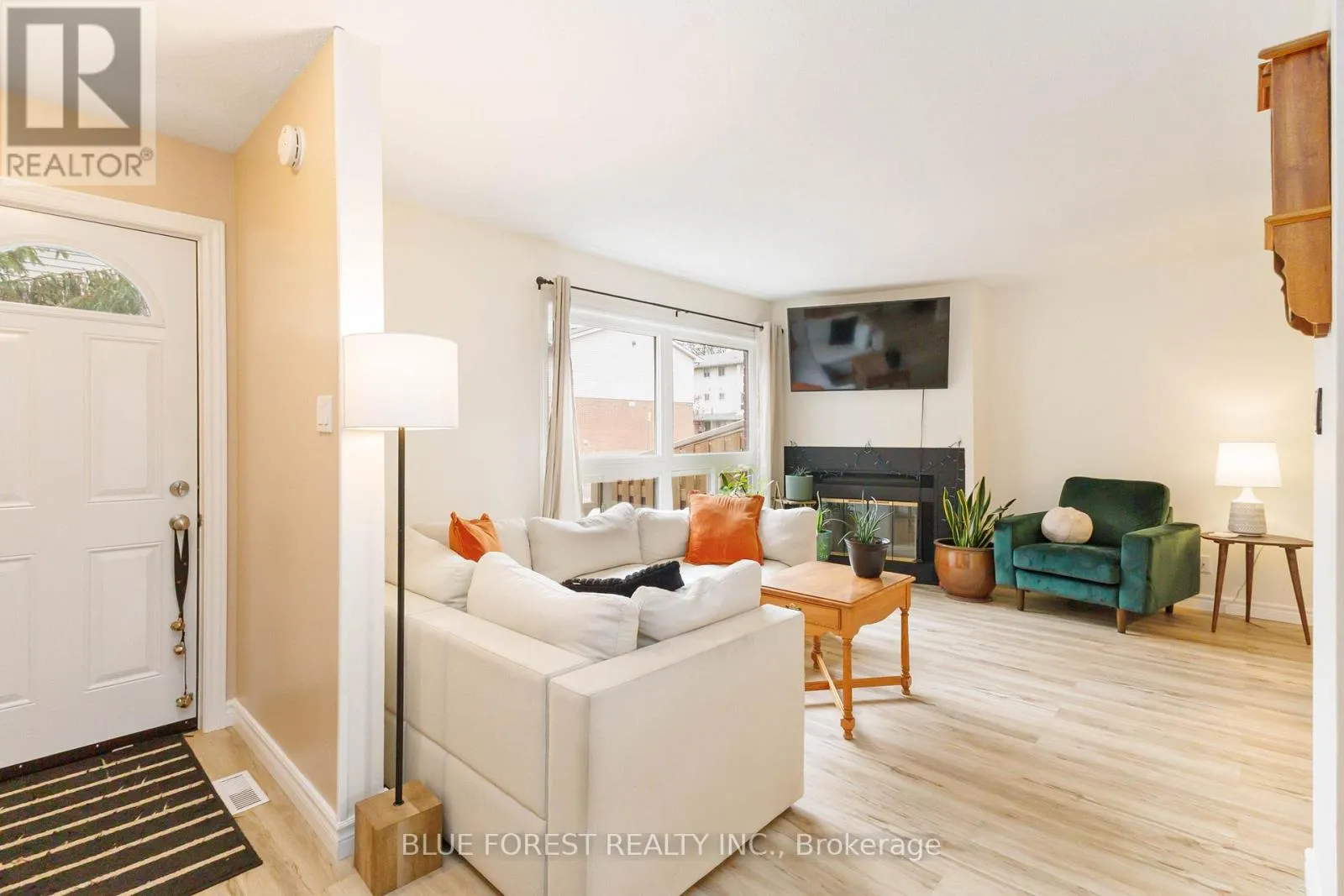 TURN WEST ONTO WATERMAN AVE FROM WELLINGTON ROAD AND DRIVE TO THE END OF THE CUL-DE-SAC Updated condo in south London, Located just minutes walk to Victoria Hospital, Parkwood and White Oaks Mall this is an extremely convenient location! There are restaurants, grocery stores, pharmacies, shopping, and all other amenities nearby as well. The main level has recently been freshened up with new flooring and paint throughout, there is a large foyer, a powder room, updated kitchen with new counter tops, dining area and living room that is accented by a natural wood fireplace! Upstairs are 3 spacious bedrooms with new flooring and the updated 4pc washroom. The lower level has a finished recreation room that adds a ton of living space to the home as well as a huge storage space that could be developed into additional living space. Outside is a private fenced in yard with interlocking brick patio requiring no maintenance. Just enjoy hanging out and relax! Parking has never been an issue as the owner is given 2 Exclusive parking spaces directly outside the unit and in addition there are many visitor spots directly out front that are accessible to this unit! Book your showing today! (id:27476)