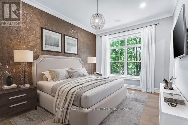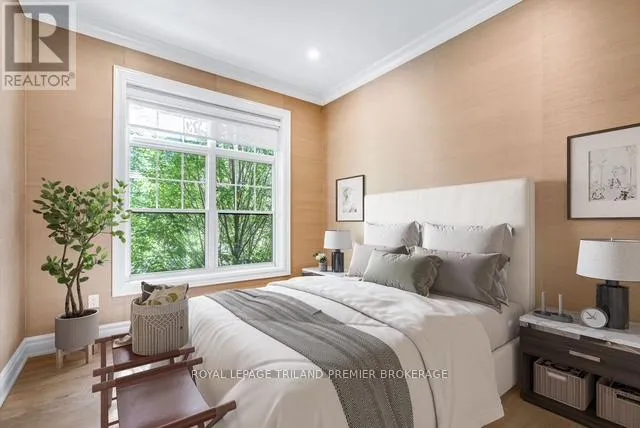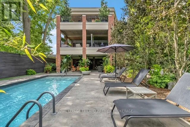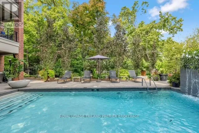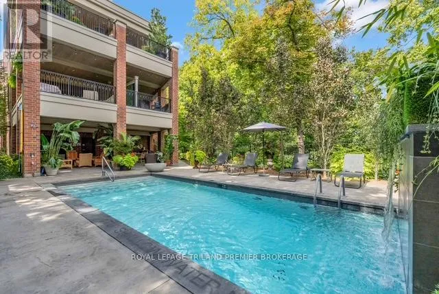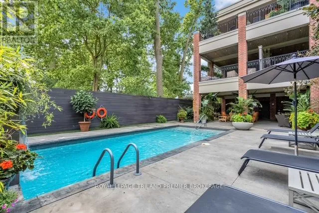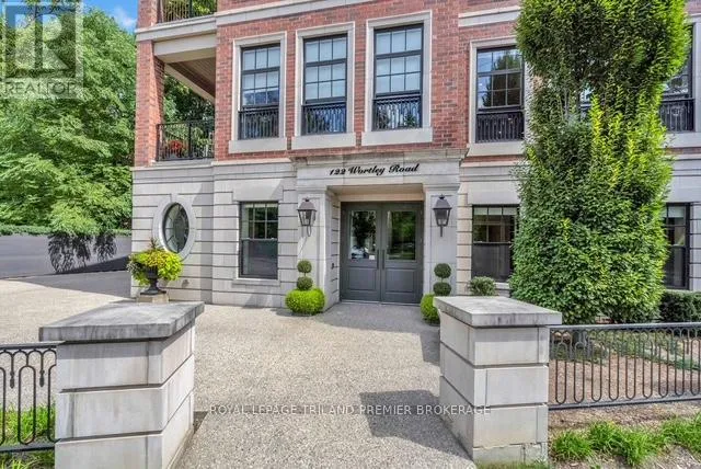 Cross Streets: Craig Street. ** Directions: Wortley Village near Craig Street. Welcome to PARKS EDGE, featuring only 7 suites in one of London's most desirable areas. Surrounded by majestic trees and beautifully landscaped grounds, complete with a pool and waterfall, this location is just minutes from downtown and mere steps from everything Wortley Village has to offer. Finished in the fall of 2017, Suite 202 boasts 1,332 square feet of interior space, along with an 8x15 southwest-facing covered terrace that overlooks the village. This terrace includes a hose bib, power, and gas hookup. This two-bedroom, two-bath suite exemplifies unparalleled quality, featuring 10-foot ceilings, oversized windows, a gas fireplace, and top-tier fixtures and finishes. Other notable attributes include custom GCW granite in the kitchen and bathrooms, high-end appliances, wide-plank white oak flooring, in-floor radiant heating, solid core doors, extensive millwork, and automated blinds with blackout options in both bedrooms. Enjoy virtually no sound transfer between units, along with a Sonos sound system in the great room, kitchen, and primary bedroom. The Lutron lighting system throughout, including motion-activated features, adds significant value. The suite also offers extensive built-ins in all closets and a heated garage. A guest suite located just off the lobby is available for overnight visitors. The Common Element Fee covers building insurance, maintenance, common areas, door upkeep, landscaping, heating, private garbage removal, property management fees, roofing, snow removal, water, and windows. PETFRIENDLY BUILDING. This could be your next home sweet home! (id:27476)