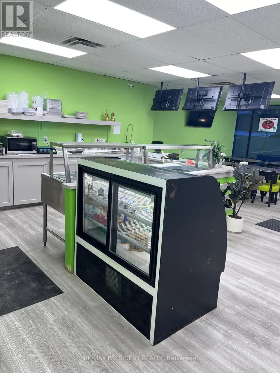 Cross Streets: Commissioners road E and Pond Mills Road. ** Directions: NORTH EAST CORNER OF COMMISSIONERS RD EAST & POND MILLS RD. Busy Plaza - Indian Grocery Store, Bank, Subway, Convenience and other stores in the same plaza..This is a rare opportunity to own a well-established, highly regarded Indian/Pakistani restaurant in a prime high-traffic location and highly recommended Google reviews. The independent, non-franchise business offers both dine-in and take-out service with seating for 20+ guests and ample surface parking in the plaza. A fully equipped kitchen includes a 6-burner stove, BBQ grill, naan oven, tandoor, two additional stoves, a walk-in cooler, double-door freezer, a dough-making machine, two extra freezers, water heater, and a complete security camera system and much more. The current owner is retiring and will provide training to ensure a smooth transition. You can also convert this into different cuisine as well. With shorter operating hours at present, there is strong potential to increase revenue by extending hours or adding catering and tiffin services to capture nearby markets such as students, taxi drivers, and truck drivers (proximity to major truck stops). All equipment, furniture, and leasehold improvements are included in the turnkey sale, along with a long-term lease offering optional renewal terms. AI Image from the front. (id:27476)