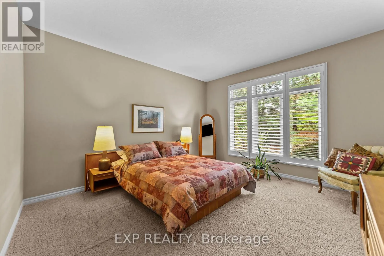 Sandy Somerville Dr/Jack Nash Dr This home stands out for more than its beauty - it carries one of the lowest land-lease fees in RiverBend ($430.97/month), offering unmatched value in London's most exclusive 50+ gated golf community. Set around an 18-hole championship course and 160 acres of protected forest along the Thames River, RiverBend blends resort-style amenities with small-town warmth. Residents enjoy a 28,000 sq. ft. clubhouse featuring a restaurant, lounge, verandah overlooking the greens, indoor heated pool, fitness centre, and over 20 active social clubs. Add 24-hour concierge service and forested walking trails, and you get a lifestyle that's social, secure, and maintenance-free. This Westchester model bungalow offers over 3,000 sq. ft. of finished living space, surrounded by mature trees and lush gardens. The covered screened in back porch spans the rear of the home, overlooking a patio feeling like a private, park-like retreat. Curb appeal shines with manicured landscaping, a double garage, wide drive with plenty of parking, and dedicated golf-cart bay with interior access. Inside, the Great Room features vaulted ceilings, hardwood floors, and a gas fireplace. The upgraded kitchen includes granite counters, a large island, pantry, and breakfast nook. The primary suite showcases garden views, a walk-in closet, and a spa-style ensuite. A second bedroom has its own ensuite, and a third makes a perfect office or den. The finished lower level adds a large recreation area with wet bar, 3rd/4th bedroom, full bath, and workshop. Updates include an updated roof, fresh paint, select new windows, central vac, and owned 60-gallon water heater. Maintenance fee ($633.31/month) covers concierge, lawn care, snow removal, and full clubhouse privileges. 2137 Jack Nash Drive is more than a home - it's right-sized living in London's most desirable adult community. The absence of sidewalks at the end of the laneway creates a retreat-like atmosphere. (id:27476)