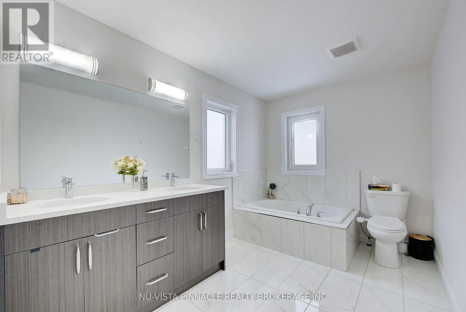 Cross Streets: .CAMPBELL ST. ** Directions: DRIVE ON WHARNCLIFFE RD S FRON WONDERLAND RD,TURN RIGHT ON CAMPBELL ST , TURN LEFT ON TRIPP DR PROPERTY ON CORNER. Stunning full brick, carpet-free executive home in the desirable Heathwoods at Lambeth community. Offering over 3,000 sq ft above grade with a 3-car garage, separate living and family rooms, and a beautifully designed open-concept layout. Main floor features hardwood and ceramic flooring throughout, plus a spacious eat-in kitchen with granite countertops, large island, and pantry. The second floor includes 2 master bedrooms, each with its own ensuite - the primary with a 5-piece luxury ensuite and walk-in closet, and a second master with a private 3-piece ensuite. Two additional bedrooms and a full bath complete the level. The fully finished basement with Separate entrance adds exceptional living space with a bedroom, rec room, full 3-piece bath, and kitchenette - ideal for extended family or guests. Prime location close to shopping, parks, schools, and with easy access to Highways 401 and 402. (id:27476)