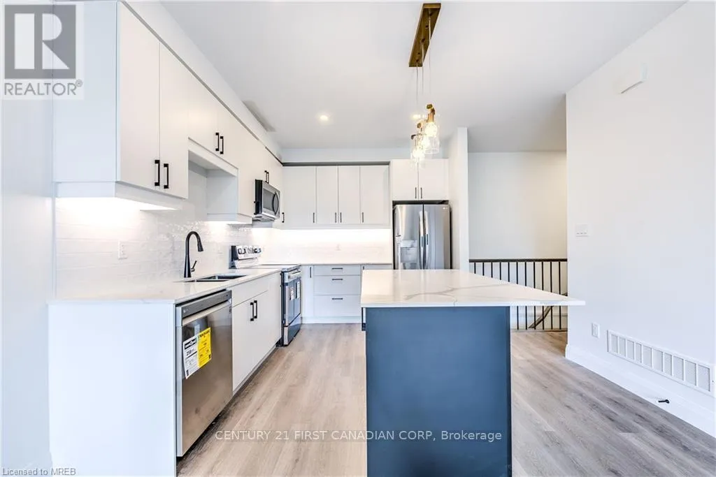 Cross Streets: WESTWICK WALK. ** Directions: West of Wharncliffe (just south of Exeter/Bostwick). Welcome to this beautifully designed, newly built 2-bedroom, 2.5-bath stacked townhouse located in the Most Vibrant community of Lambeth. Just steps from scenic walking trails and only minutes from top-ranked Lambeth Public School, this home also offers quick access to Highways 401 and 402, Close to Victoria Hospital, Amazon Fulfillment Centre and Maple Leaf Foods Processing Plant. The main floor features a bright and spacious family room with oversized windows, along with a modern eat-in kitchen complete with white cabinetry, a designer backsplash, a centre island, abundant storage, and brand-new stainless steel appliances. On the lower level, the primary suite boasts a walk-in closet and a luxurious ensuite with a granite vanity and glass/tile shower, while the second bedroom also includes a walk-in closet and a private 3-piece ensuite with a soaking tub. Occupancy is available starting 1st March 2026, making this the perfect opportunity to move into one of London's most desirable and growing neighbourhoods. (id:27476)
