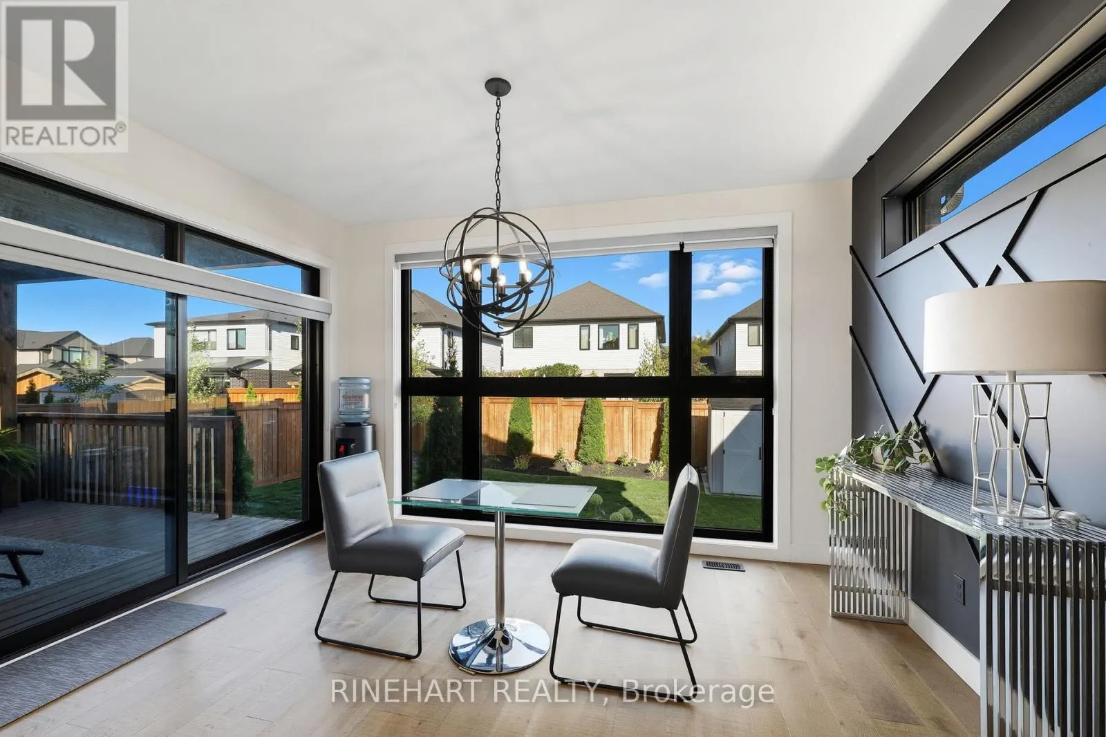 Cross Streets: WICKERSON RD. ** Directions: Wickerson Rd to Tibet Bulter Blvd to Brayford Ave. Welcome to 1754 Brayford Avenue, a stunning contemporary home in the sought-after Wickerson community, just steps from the ski hills and year-round activities at Boler Mountain. Designed with modern family living in mind, this 4+1 bedroom, 5 bathroom home blends luxury, comfort, and thoughtful detail throughout. Step inside to an open-concept main floor where natural light pours through large picture windows with motorized blinds. Custom accent walls, hardwood flooring, and black interior windows create a sophisticated atmosphere. The designer kitchen is a showpiece, featuring Fisher & Paykel appliances, quartz island, ample storage, and a custom floor-to-ceiling wine wall. The adjoining dining space and breakfast area flow seamlessly to a cozy covered deck with in-ceiling speakers, perfect for entertaining. The living room impresses with a gas fireplace framed in floor-to-ceiling tile and views of the beautifully landscaped, fully fenced yard. A convenient laundry and mudroom complete this level. Upstairs, the primary suite offers a true retreat with vaulted ceilings, walk-in closet, and a spa-inspired ensuite boasting heated floors, freestanding tub, double vanity, and glass shower. Two bedrooms are joined by a Jack & Jill bath with heated flooring, while a fourth bedroom enjoys its own private bath across the hall. The finished lower level provides a large family rec room, a fifth bedroom currently used as a home gym, and a cheater 3-piece ensuite, offering flexibility for guests or hobbies. Set in a safe, family-oriented Byron neighbourhood, this home offers the best of contemporary living with thoughtful upgrades throughout. Additional highlights include in-ceiling speakers, a sprinkler system roughed-in, and the included fridge, stove, washer, and dryer. With its blend of contemporary design and functional space, this property delivers a lifestyle as impressive as its location. Don't miss out and book a showing today! (id:27476)