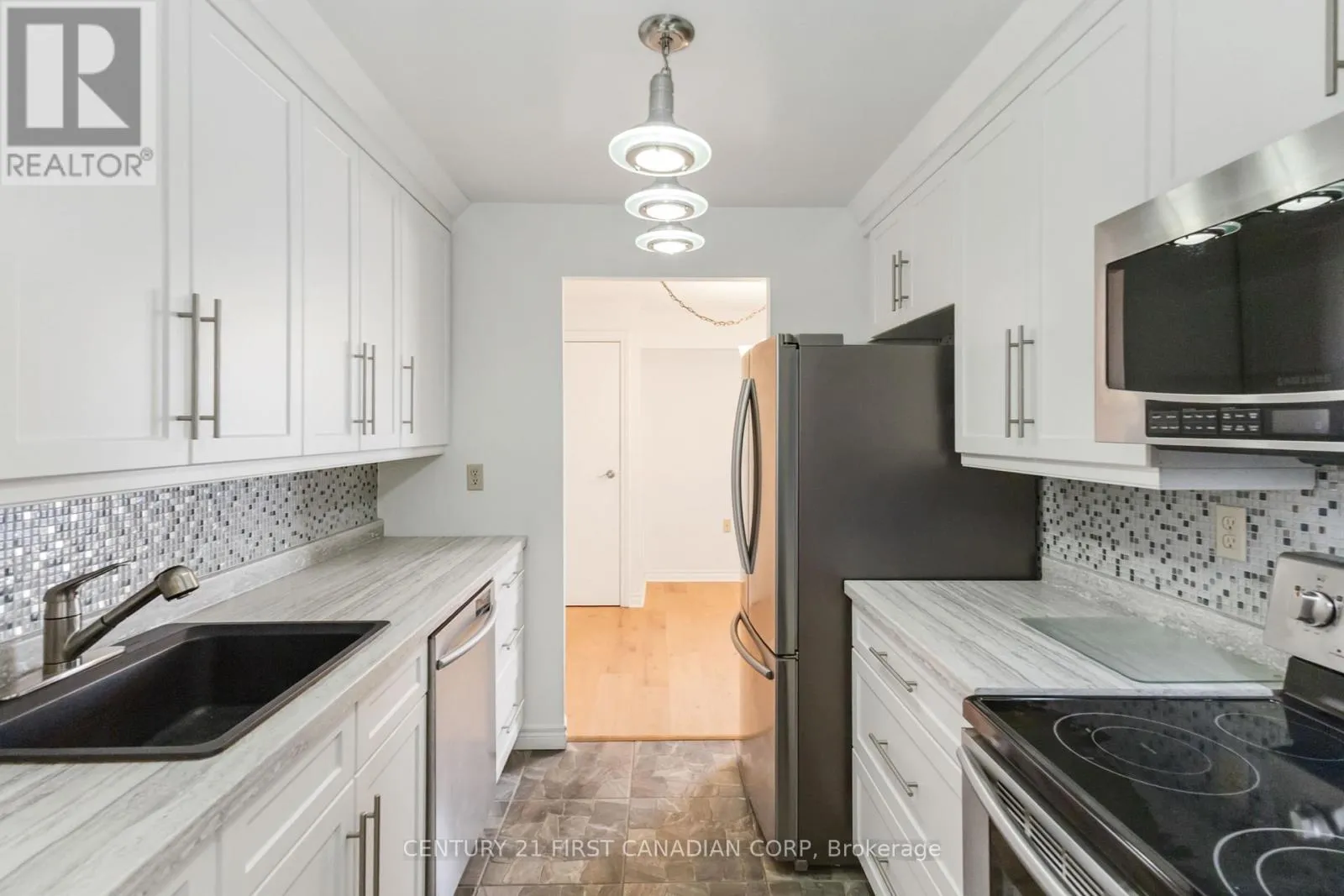 Cross Streets: Adelaide & Commissioners. ** Directions: Passing Adelaide going west on Commissioners, building is on the north side of the street. Welcome Home to 860 Commissioners Road - Bright, Updated & Ideally Located! This wonderfully bright and spacious 2-bedroom, 1-bathroom condo offering 974 sqft of comfortable space, modern updates and outstanding convenience. Located just minutes from the 401 and both of London's major hospitals, this home is a fantastic option for commuters, healthcare professionals, investors, or anyone looking for a well-connected location in the city. The unit has had many upgrades over the past five years or so, including a beautifully refreshed kitchen with new cabinets, countertops, backsplash, flooring, and a full set of stainless steel appliances. as well as the bathroom was also refreshed with updated shower tiles, fixtures, vanity, and counter-leaving nothing to do but move in and enjoy. You'll also love the convenience of an ensuite laundry. Premium new flooring with cork underlay runs throughout the living room, dining room, and hallway, providing durability and easy care, while large windows allow natural light to pour in, giving the entire space a bright and inviting feel. You'll also enjoy a full list of building amenities including an outdoor pool, fully equipped fitness center, sauna, and tennis courts-perfect for relaxing or staying active year-round. This stylish and well-maintained condo checks all the boxes: great location, thoughtful updates, and desirable amenities-all at an excellent value. Come see why this could be the perfect place to call home! Please note that parking allows each owner one spot and there are an abundance of surface and covered parking spots available. The photos with furniture have been virtually staged. (id:27476)
