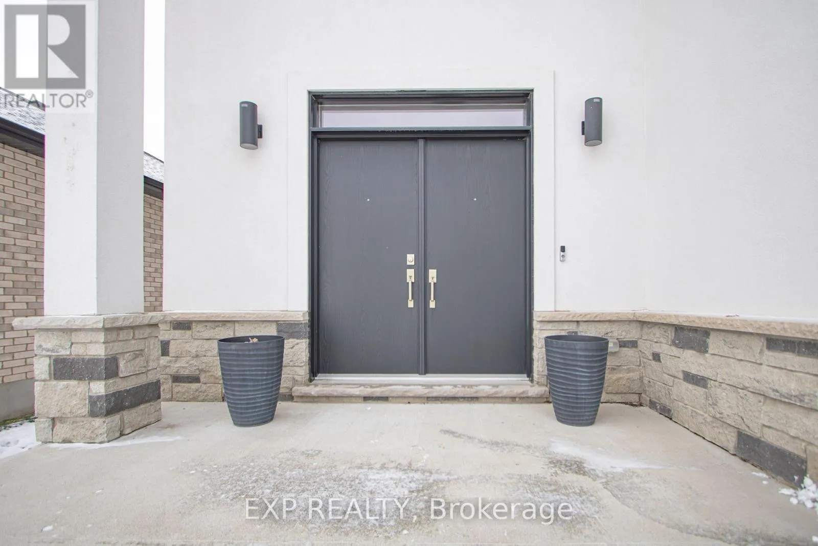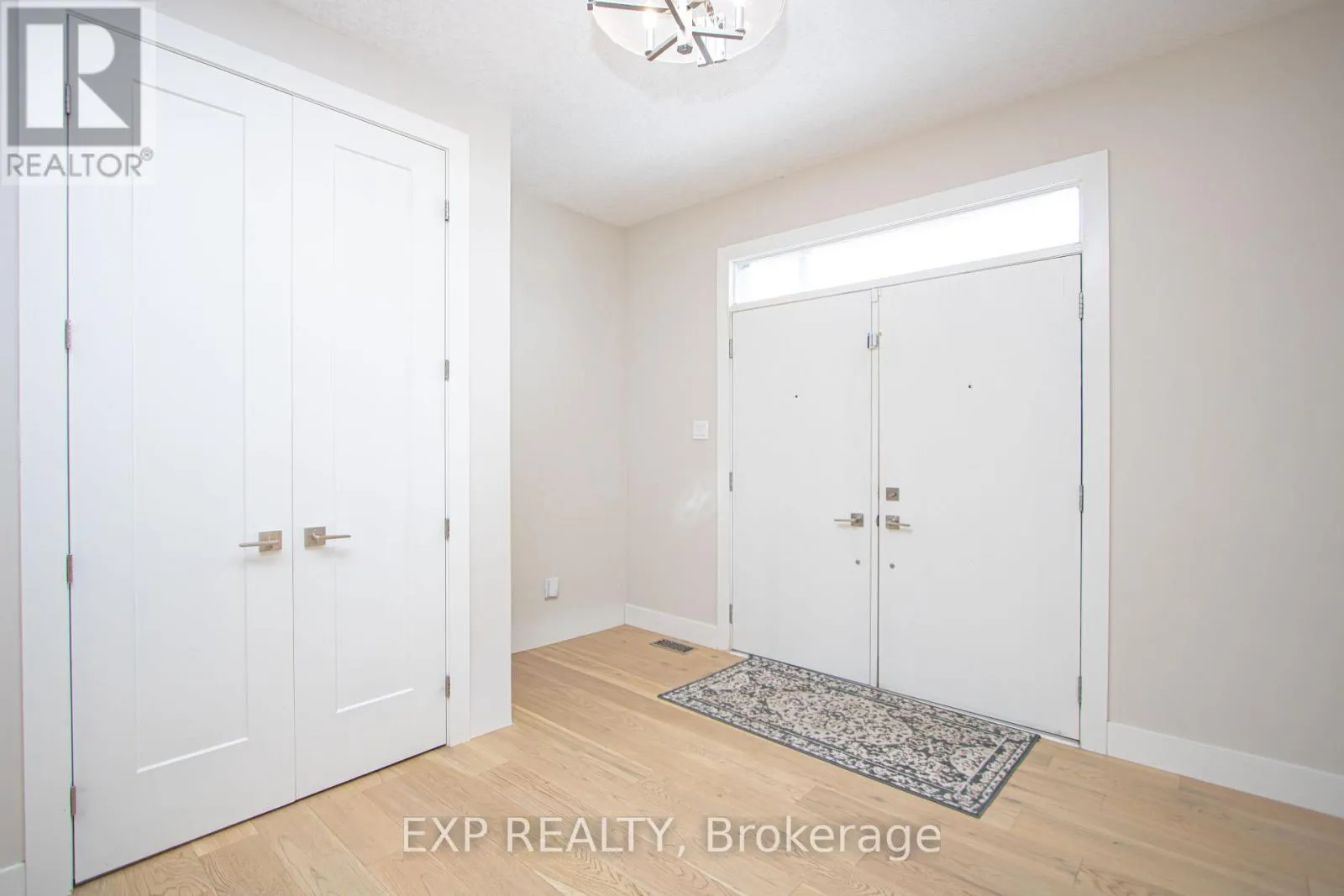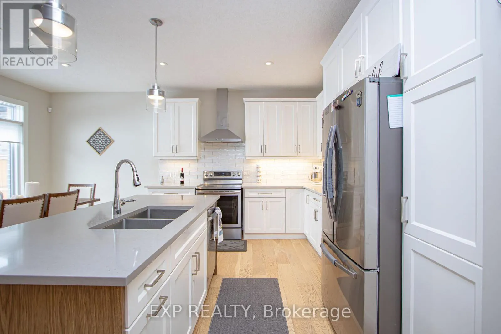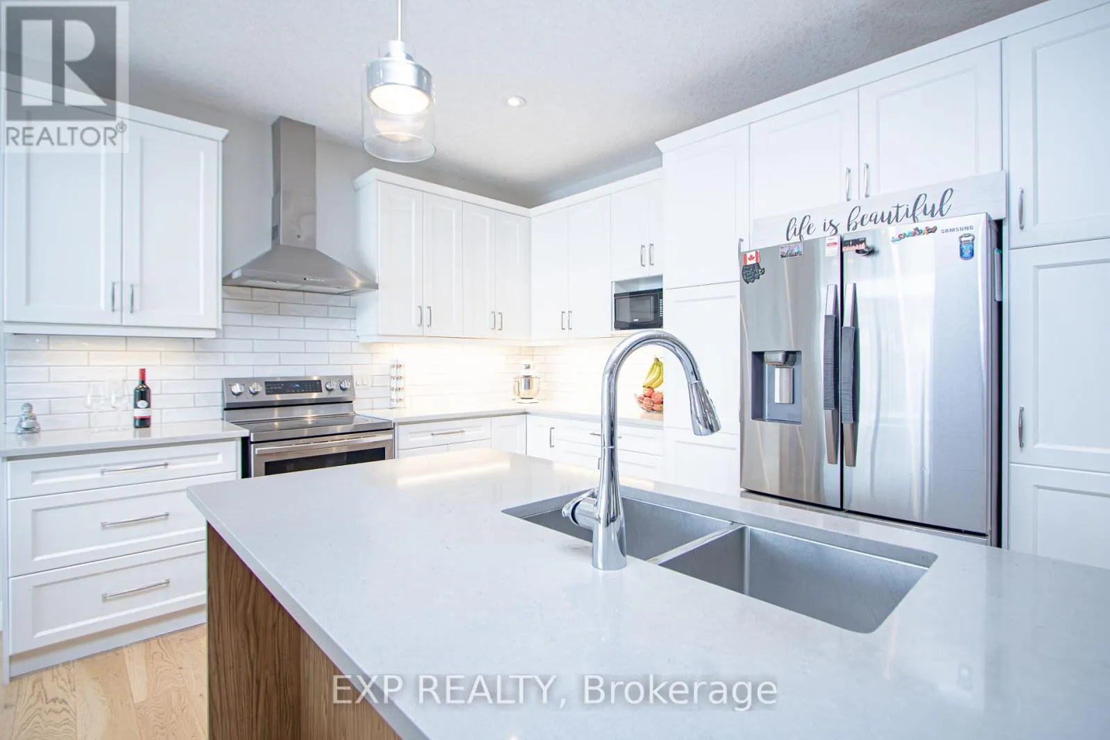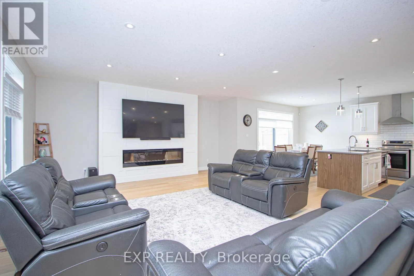TAKE SOUTHDALE TO BOSTWICK RD, TURN LEFT. TURN RIGHT ONTO PACK RD FIRST RIGHT ONTO REGIMENT RD Welcome to this beautifully upgraded Regiment Model home featuring rich hardwood flooring on the main level and staircase, a designer kitchen with valance lighting, pot lights, a large island with seating, and an open-concept Great Room with an electric fireplace. The upper level offers a convenient laundry with built-in cabinetry and a spacious primary suite with a walk-in closet and luxurious 5-piece ensuite. Adding exceptional value, the home includes a legally finished 2-bedroom basement with a separate entrance, completed with proper permits and approvals, providing versatile additional living space. Located in a rapidly growing family-friendly community, the property is just steps away from a newly opened public school. (id:27476)