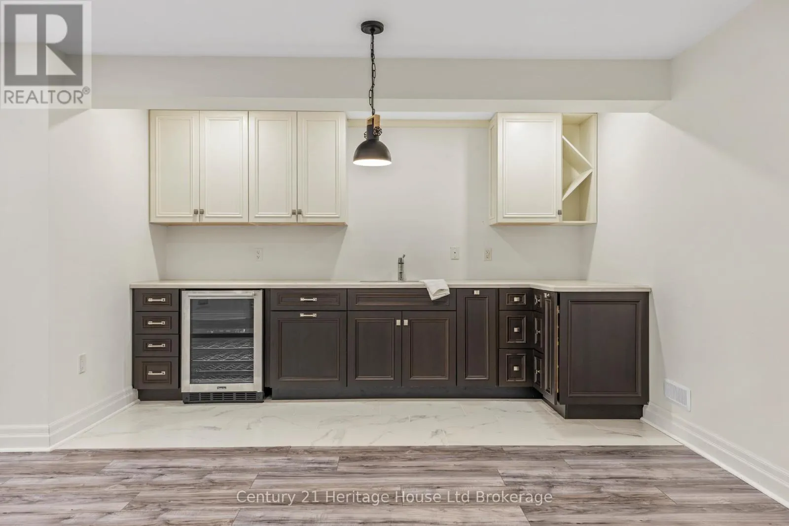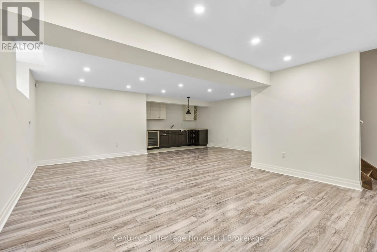 Cross Streets: Trailsway Ave and Upper West. ** Directions: Turn south on Riverbend on Oxford stree west. Welcome to this spectacular family home located in the highly sought-after Byron neighbourhood in southwest London. Backing onto scenic walking trails, this home offers the perfect blend of nature, luxury, and convenience. Just 15 minutes from Highways 402/401, Western University & downtown London, it's an ideal location for families and professionals alike. Key Features: Bedrooms: 3+2 spacious bedrooms. Bathrooms: 3.5 beautifully appointed baths, heated floors & pocket doors. Main Floor: Open concept with rich hardwood flooring, upgraded lighting and lots of pot lights, large windows, and cathedral ceilings in the family room. Kitchen: Gourmet kitchen featuring quartz countertops, dark 8-foot island, pots & pans drawers, slide-out spice drawers, under-valance lighting, and top-of-the-line Jen Air appliances including gas stovetop, wall oven, and built-in microwave. Primary Retreat: Main floor primary bedroom with large walk-in closet and a 5-piece spa ensuite boasting quartz counters, double sinks, heated floors, hot tub, and glass shower. Upper Level: Two generously sized bedrooms with a 5-piece main bath featuring double sinks. Basement: Approximately 1,460 sq ft of finished space with a large bedroom and an office, full bath and a wet bar. Total 3600 sq ft finished living space. Don't miss out on this incredible opportunity! (id:27476)