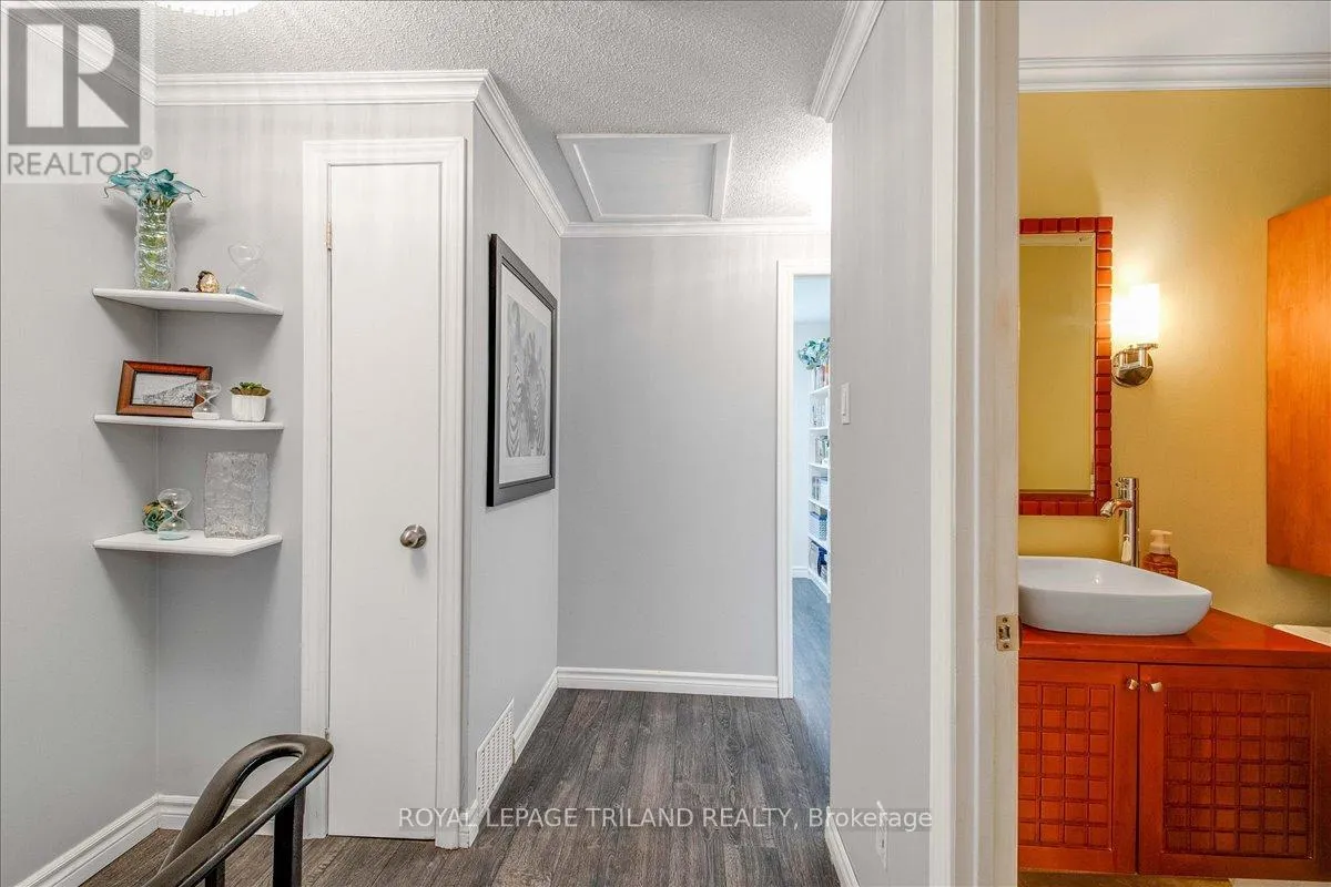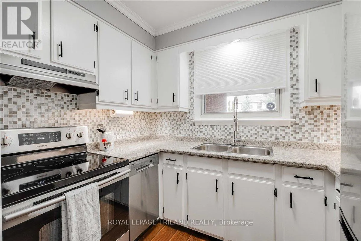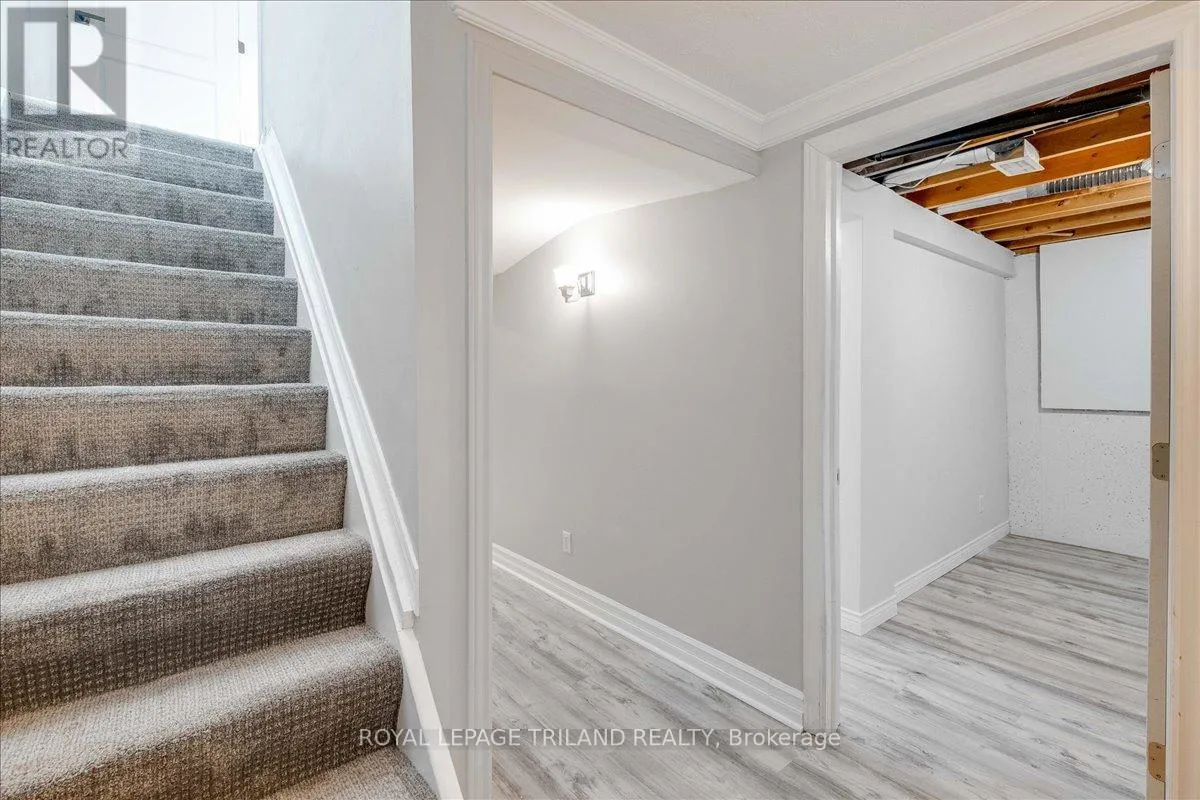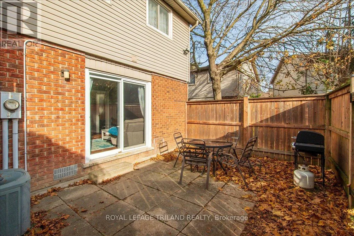 Cross Streets: Ernest Ave. ** Directions: In the intersection between Ernest Ave and Jalna Blvd. Beautifully maintained end-unit townhome with a carport-style garage. The main floor offers a kitchen, 2-piece bath, and rich laminate flooring through the formal dining area and living room. Bright patio doors provide access to your own fully fenced patio that backs onto open green space. Upstairs features an updated 4-piece bathroom and three spacious bedrooms, including a light-filled primary with a walk-in closet. The finished basement adds valuable living space and extra storage/ personal gym, complete with newly updated flooring (2025). Enjoy the comfort of central heating and air conditioning, no baseboard heaters! Condo fee includes water. Located in a prime location just minutes from Victoria hospital, White Oaks Mall, schools, parks, the Aquatic Centre, and quick access to Highway 401. A wonderful place to call home! (id:27476)