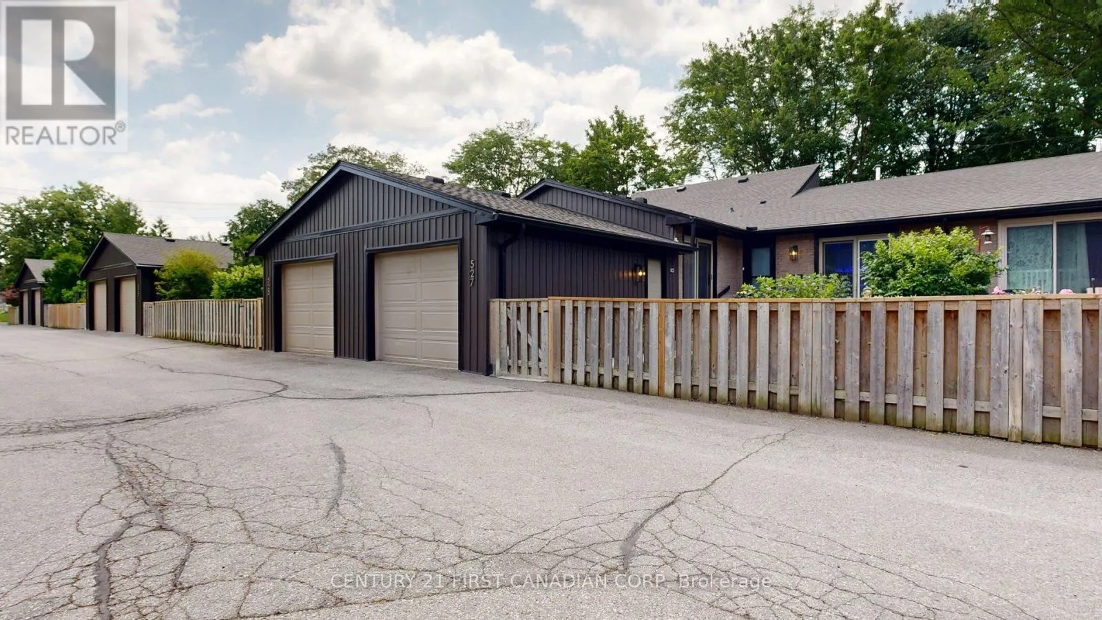 Cross Streets: COMMISSIONERS AND TOPPING. ** Directions: NOTH ON TOPPING, WEST INTO PARKING LOT. HOME ON LEFT. Reimagined one-level luxury with thoughtful living in every detail. This fully renovated bungalow-style townhome offers sophisticated design, premium upgrades, and effortless turnkey living. No expense has been spared in this meticulously upgraded home, ideal for those who appreciate quality craftsmanship and refined finishes. The heart of the home is a stunning chef's kitchen featuring GE Café and Bosch 800 Series appliances, gas cooktop with pot filler, convection wall oven and microwave, custom Casey's cabinetry, quartz countertops, under-cabinet lighting, floating shelves, a sleek VENT-A-HOOD, oversized island, and pull-out pantry. Enjoy engineered hardwood flooring, dimmable pot lights, and remote-controlled blinds in the bedrooms. Custom storage continues with glass-paneled sliding closet doors and built-in shelving throughout. The primary suite includes a motion-sensor walk-in closet and 220 wiring for a future stacked washer/dryer. Spa-inspired bathrooms feature quartz vanities, walk-in rain showers, glass enclosures, and bench seating. The finished basement adds valuable living space with a custom steel stair railing, ample storage, and a pre-installed propane line for a future fireplace. Exterior upgrades include a new concrete patio and walkway, manicured gardens, finished single-car garage, patio doors with built-in blinds, and most windows replaced in 2021. Additional highlights: Maytag Commercial washer/dryer, furnace (4 yrs), water heater (5 yrs), updated electrical (basement fully rewired; main floor pigtailed and inspected), loose-lay basement flooring, 5" baseboards, and upgraded doors and hardware throughout. Located in a quiet, well-maintained community-perfect for downsizers, professionals, or anyone seeking a refined, low-maintenance lifestyle. Move in and enjoy. If you know, you know. Book your private showing today. (id:27476)