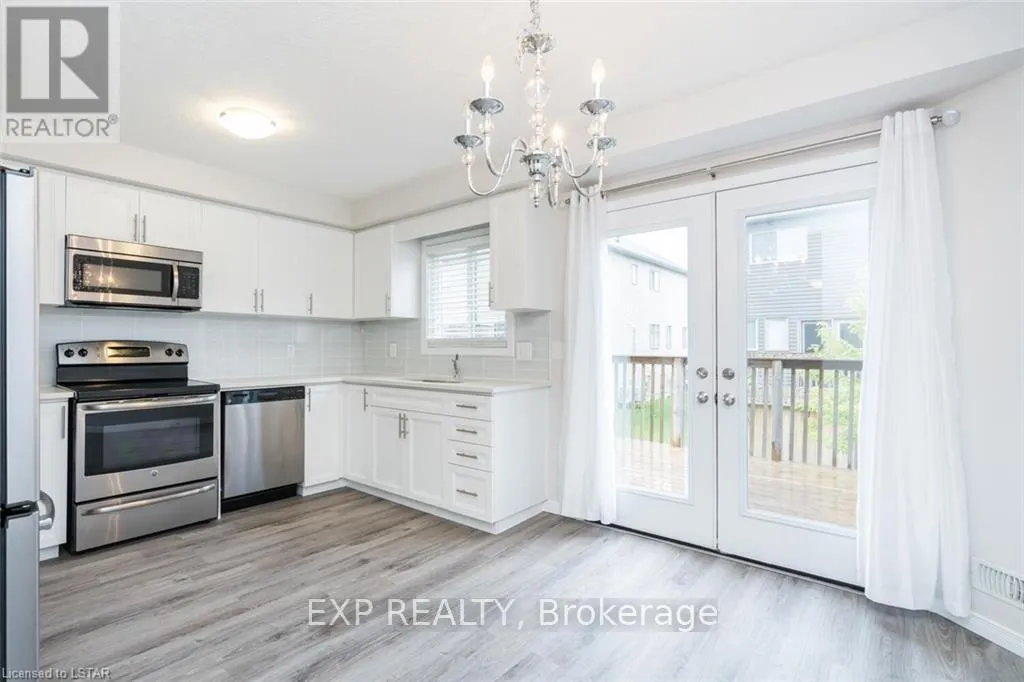 Cross Streets: Southdale Rd/ Springmeadow Rd. ** Directions: Take Southdale Rd heading East or West; Take Springmeadow Rd heading South; take first right turn heading Westbound; take next right heading Northbound, continue around corner, property on South/ left hand side. This beautifully finished 3 bedroom, 2 bathroom quadruplex townhouse style condominium in Andover Trails is available for rent March 1st, 2026. The main floor features a spacious family room featuring low maintenance laminate flooring, a 2 piece bathroom and a convenient laundry room. The bright kitchen features modern glossy cabinetry, stainless steel appliances, ceramic flooring, quartz counters and glass backsplash. The eating area leads to a large deck allowing for inside/outside living opportunities to use the back deck as a continuation of the living space. The sleeping area is divided up from the living area; with the upstairs featuring all three large bedrooms and a 4 piece bathroom. This property is situated in a fantastic area, close to many amenities including health care, shopping, restaurants, churches and schools. The lease includes use of an assigned parking space and the landlord is covering all the common element expenses. This offering is competitively priced outshining other comparable area options. This site also features amenities including a playground and visitor parking. Southdale Rd is a main corridor in the City of London offering access to travel East and West efficiently and offers ease of access to HWY 401 & 402 and to other major arterial rooms to travel to all areas of London from the South end of London. This road also features great public transit access and sits along major school bus routes for the London District Catholic School Board and speciality schools. A prime location for families, young professionals, and/or for those looking to secure a foothold in one of London's preeminent neighbourhoods! Lease appliacants will be required to submit Letter Of Employment, Credit Check & Score, References and be willing to submit for tenant screening. Lease applicants will also be subject to accept and abide by condo rules. Pet friendly w/exceptions.(Note: There are currently tenants in the unit; photos taken pre-possession while vacant.) (id:27476)