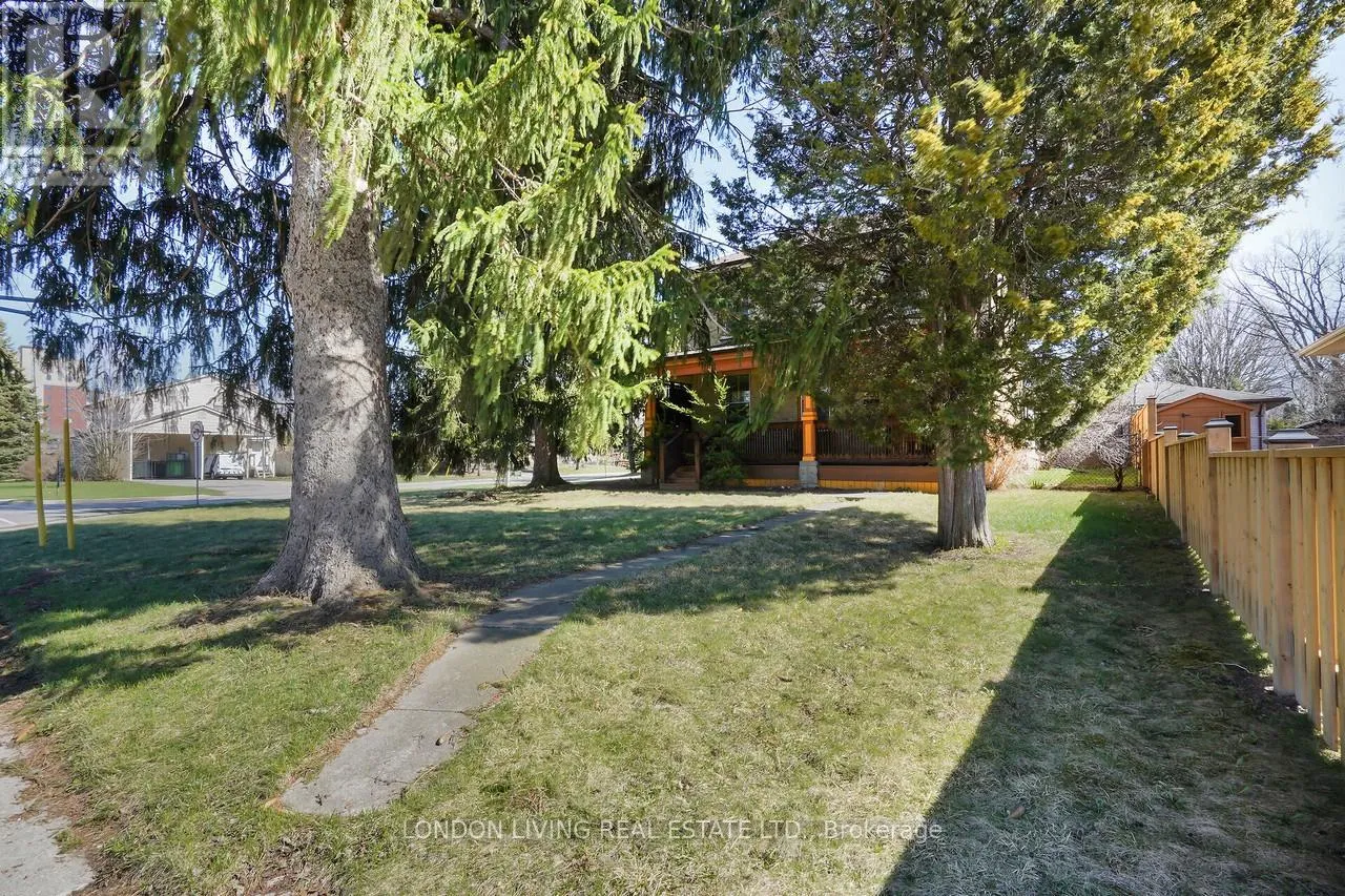 Cross Streets: BASELINE RD E/HIGH ST. ** Directions: BASELINE RD E TO HIGH ST, PROPERTY ON CORNER. Old South location! Nestled in the spruce trees you'll find a century home with an inviting front porch to enjoy your morning coffee - surprisingly private yet open at the same time! As soon as you walk through the front door, you'll notice the original oak bannister and the 1-inch hardwood floors. To your left, you'll find the living room with a cozy fireplace and built-ins. On to the dining room with more built-ins, a second two-sided fireplace and hardwood floors. To your left is the updated kitchen (2022), with a ceramic floor, quartz countertop, deep double sinks, pantry and stainless steel appliances. Off the dining room is an updated (2022) two piece powder room. At the back of the house you'll find the bright family room with another view of the fireplace and new (2022) sliding doors to the fully fenced back yard. Upstairs is a large 4 piece updated bathroom (2017) and three good sized bedrooms. The newly waterproofed basement (2025) is home to the washer, dryer and freezer with lots of room for storage and "messy" arts and crafts! On major bus route with ONE bus taking you from Parkwood to Victoria Hospital, downtown, St. Joseph's Hospital, University Hospital and Western University! Schools nearby are Mountsfield PS and South Secondary School + many others. Start making YOUR memories in this century home! (id:27476)