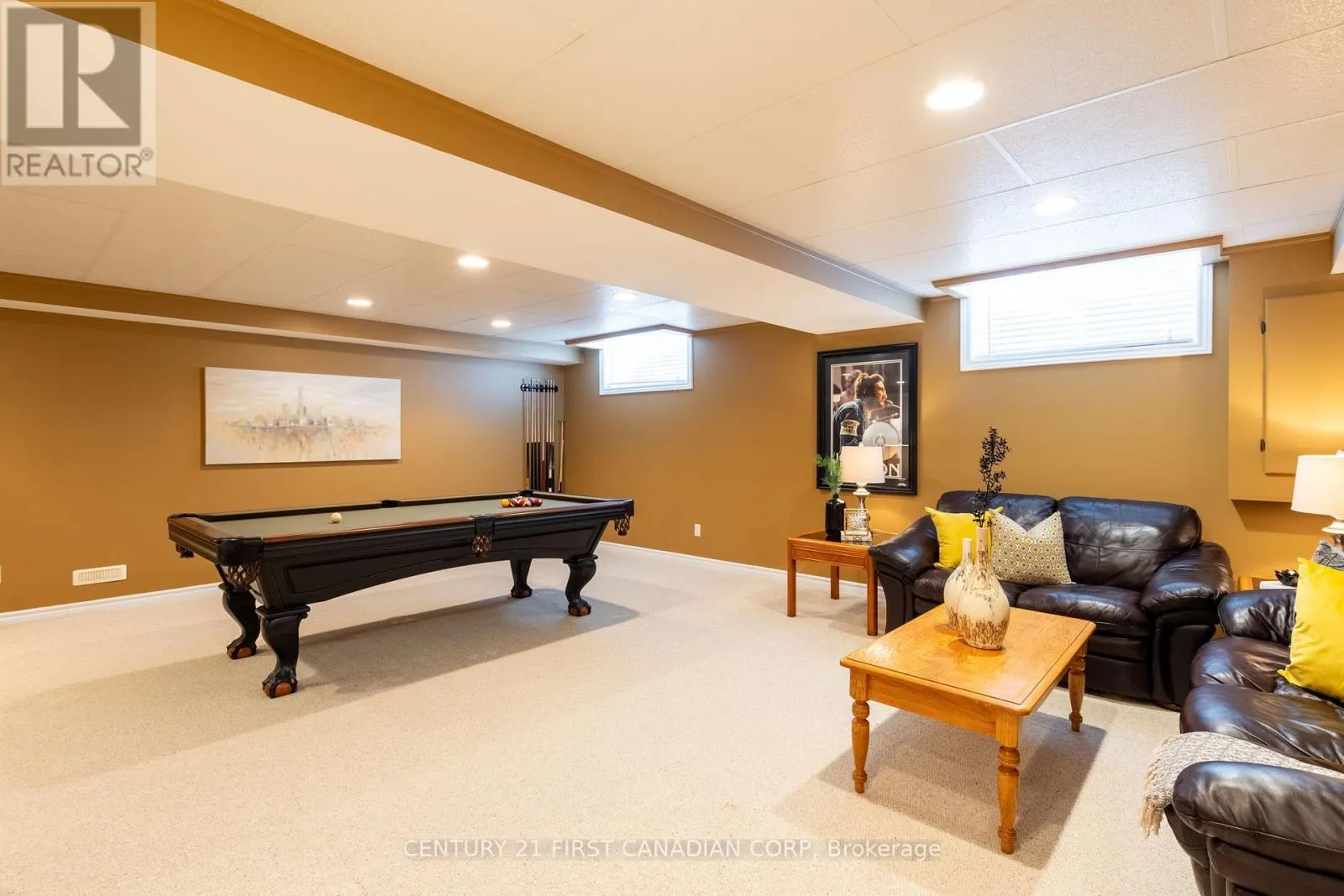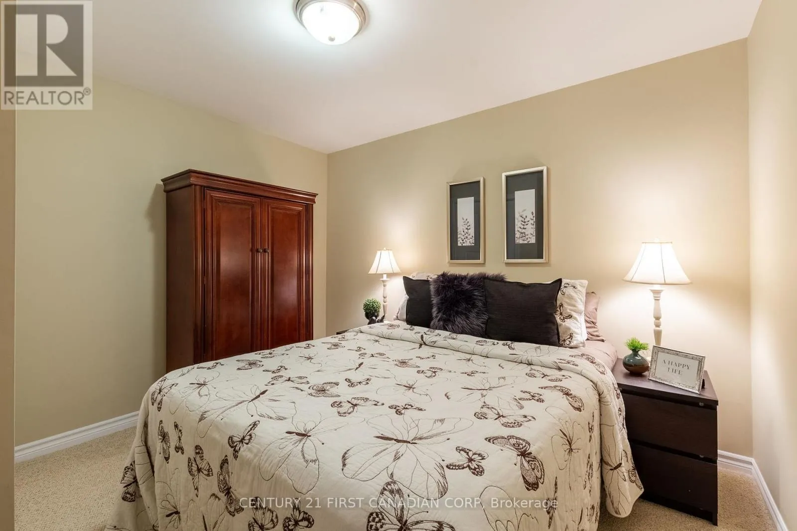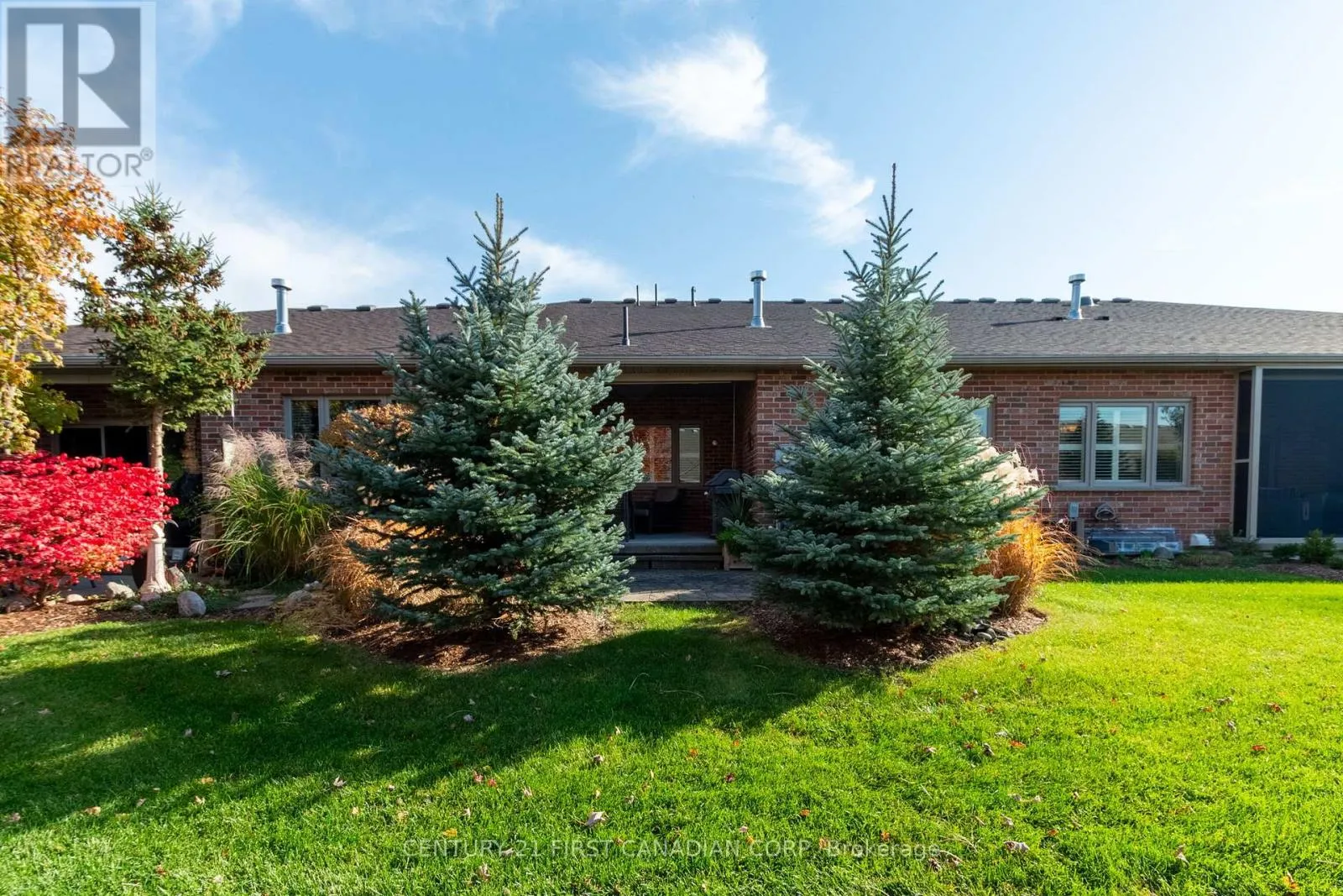 Cross Streets: Jack Nash Dr. ** Directions: West on Oxford St. W., then turn right on Kains Rd., then turn right into the Riverbend Golf Community. Proceed on Sandy Somerville Dr., then turn left on Jack Nash Dr. and then turn left on Marlene Stewart St. RARE ONE FLOOR LIVING!! A unique opportunity to experience the delights of London's most beautiful setting. Welcome to Riverbend Golf Community, recognized for being the winner of the 2026 Best of London Golf Award as selected by LondonOntarioGolf.com. This well appointed 2 bedroom, 3 bathroom home boasting premium quality from top to bottom across its 2,587 Sq. Ft. of impeccably finished living space. This bright and airy villa offers the ultimate adult lifestyle living experience and is perfect for GOLF ENTHUSIASTS. Step inside to convenient one floor living with a layout offering tremendous ease of flow. Beautifully appointed gourmet kitchen with rich shaker style cabinets, Granite countertops, Silgranit sink and convenient pantry. Dinette features garden door leading to private backyard, providing the perfect barbecue spot. Bright, sun soaked living room boasts high ceilings, gleaming oak hardwood and elegant gas fireplace with gorgeous wood mantle. Oversized master retreat complimented by walk-in closet and spa-like ensuite. Additional bedroom with updated 4 piece bathroom and convenient main floor laundry completes the space. Fully finished lower level features an expansive family room with wet bar rough-in, games room area, office and 3 piece bathroom. Custom California Shutters throughout. Escape to your covered patio overlooking the treed park-like setting, perfect for enjoying that morning cup of coffee or evening glass of wine. Attached double car garage with private interlock driveway. Just steps from the THAMES RIVER, premium hiking trails and sweet serenity awaits you just outside your back door. Riverbend land lease/monthly maintenance fee $890.91 includes 24 hour concierge service at the front gate, lawn maintenance, snow removal and clubhouse privileges including swimming pool, hot tub, exercise room, sauna and more. Act fast, this is your chance to start enjoying all the conveniences of the lifestyle that you desire! NO LAND TRANSFER TAX PAYABLE. (id:27476)