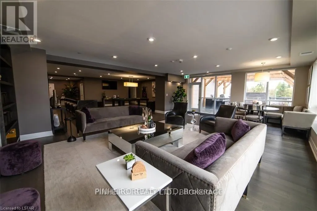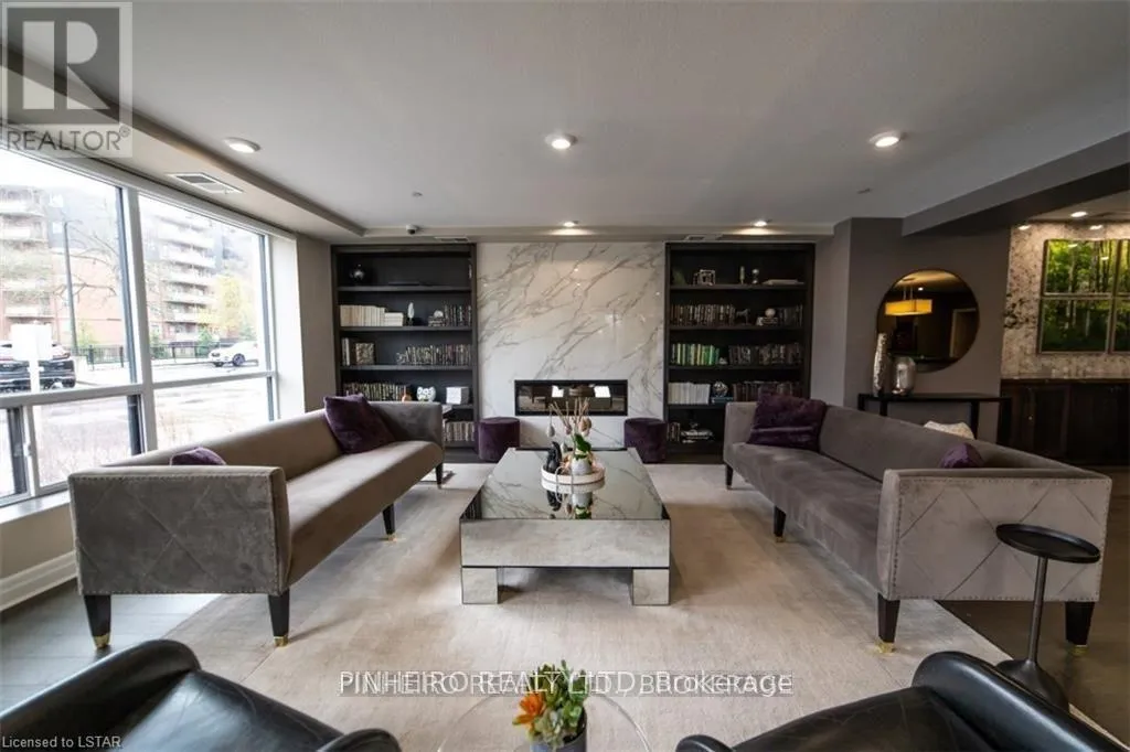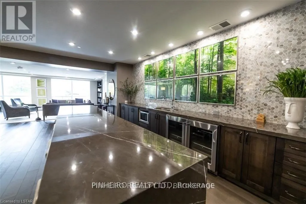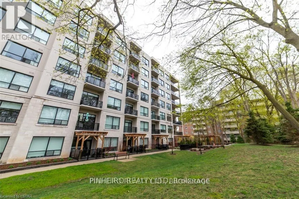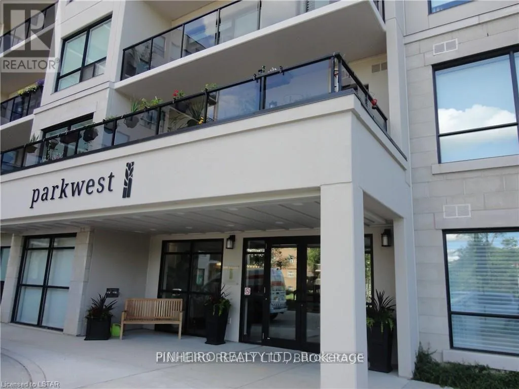 Cross Streets: Boler Rd. ** Directions: Go Commissioners Rd W to Byron Just before Boler Rd. and Commissioners Rd. Plaza on the South side. Welcome to ParkWest, a highly sought after condo complex in the city of London situated in the heart of beautiful Byron on the 5th floor with southern exposure for your sun pleasure overlooking treed landscape and the buildings common patio and fire pit area below your private balcony. Close to all amenities and just steps from the well known SpringBank Park where you can play and enjoy a great picnic or watch the flowing waters of the Thames River with many wild life species. This bright spacious and immaculate end unit has two bedrooms plus a Den or it can be a three bedroom being an end unit. It features an open concept bright kitchen with excellent upgraded quality and plenty of cabinets with two pantries and fully equipped with upgraded stainless steel appliances including fridge with ice and water dispenser. This unit also includes a spacious living room with an electric fireplace with remote and accented by floor to ceiling stone brick and access to your open balcony for your afternoon relaxation or BBQ adventure. As an added feature this unit has an extra siting area for your afternoon tea and a dining area for your formal dining for special occasions. The primary Master bedroom features a walk in closet with shelving and 5 piece ensuite bathroom with double sink, ceramic flooring and walk in shower with floor to ceiling tiled walls. Convenient in suite laundry and many building amenities which include: golf simulator with a variety of golf courses you to try and sitting area, Party/Lounge Room with pool table, fire place, kitchen cabinets, washrooms and Television plus outside patio with BBQ facilities , fully equipped exercise room with 2 televisions for your pleasure, guest suite, and in house Building Manager Suite. This condo and building offers all the comforts your heart desires including a relaxing patio/Lounge at the rear of building for your afternoon tea in the fresh air listening to the birds . Easy to show. Flexible possession. Priced to sell. (id:27476)