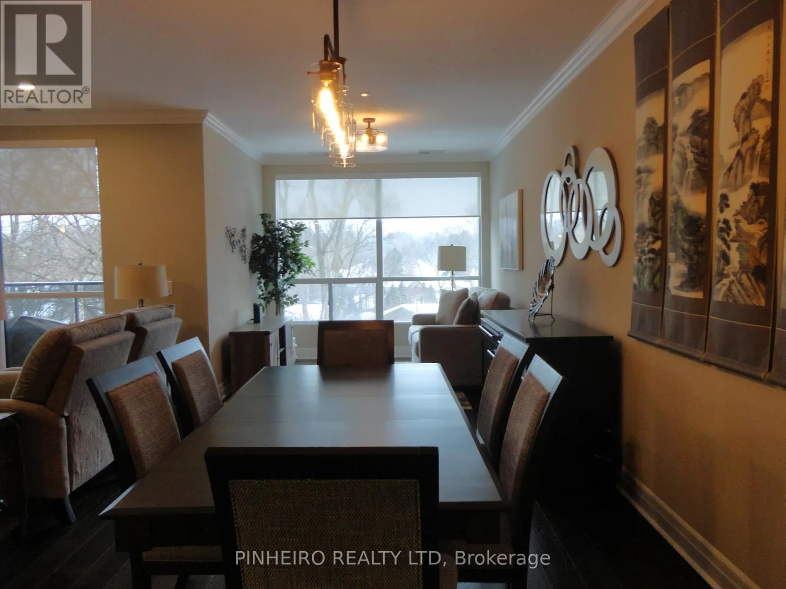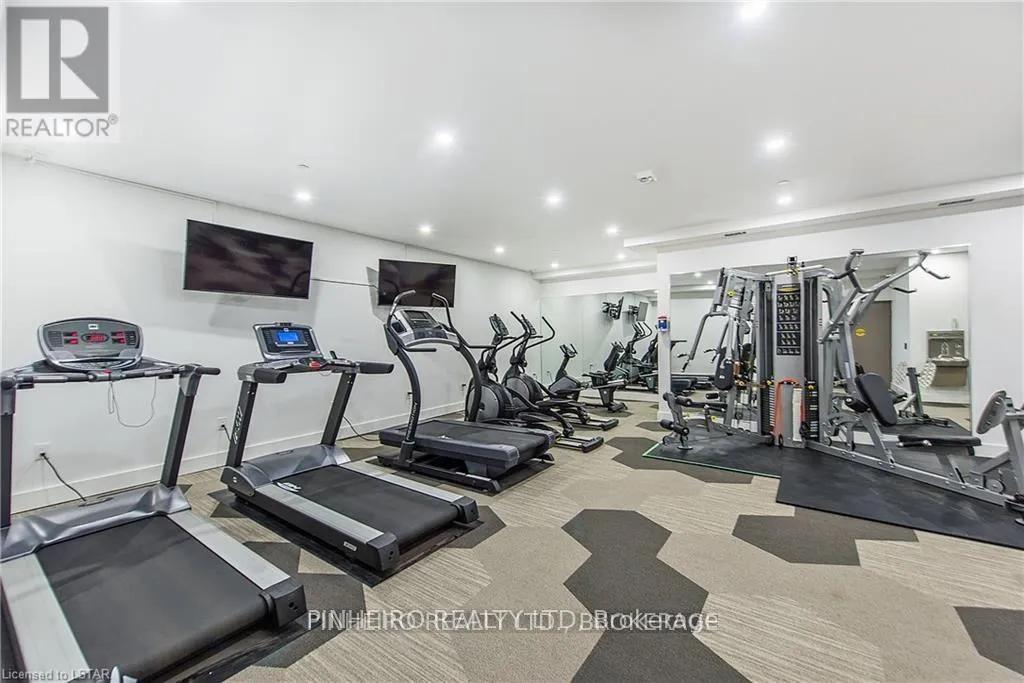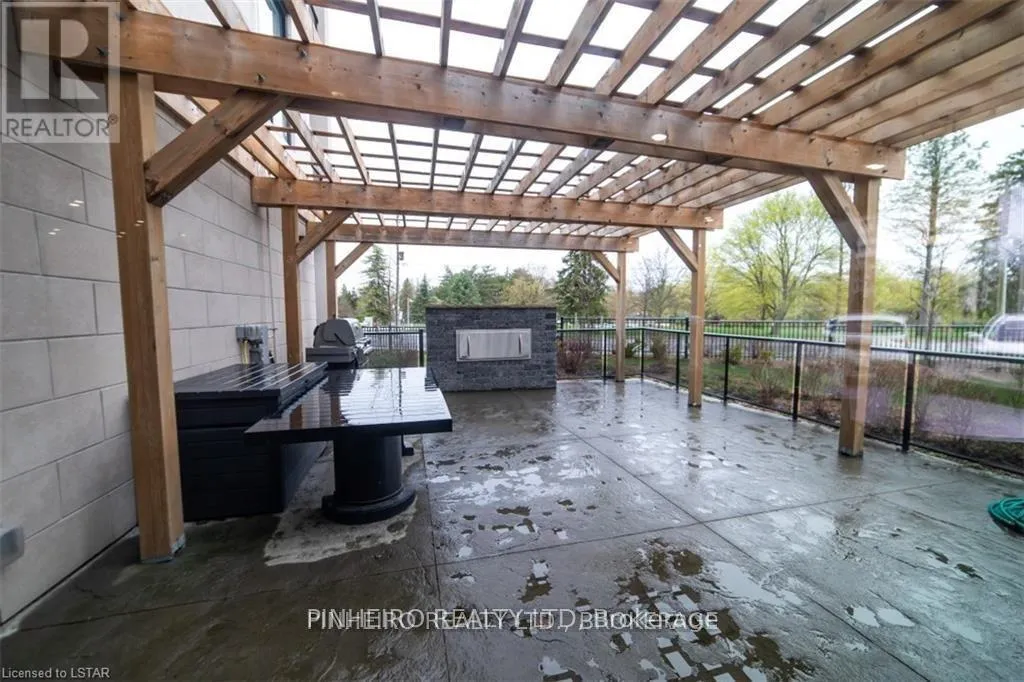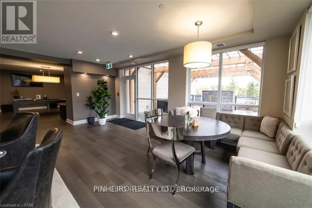 Cross Streets: Boler Rd. ** Directions: Go Commissioners Rd W to Byron Just before Boler Rd. and Commissioners Rd. Plaza on the South side. Welcome to ParkWest, a highly sought after condo complex in the city of London situated in the heart of beautiful Byron on the 5th floor with southern exposure for your sun pleasure overlooking treed landscape and the buildings common patio and fire pit area below your private balcony. Close to all amenities and just steps from the well known SpringBank Park where you can play and enjoy a great picnic or watch the flowing waters of the Thames River with many wild life species. This bright spacious and immaculate end unit has two bedrooms plus a Den or it can be a three bedroom being an end unit. It features an open concept bright kitchen with excellent upgraded quality and plenty of cabinets with two pantries and fully equipped with upgraded stainless steel appliances including fridge with ice and water dispenser. This unit also includes a spacious living room with an electric fireplace with remote and accented by floor to ceiling stone brick and access to your open balcony for your afternoon relaxation or BBQ adventure. As an added feature this unit has an extra siting area for your afternoon tea and a dining area for your formal dining for special occasions. The primary Master bedroom features a walk in closet with shelving and 5 piece ensuite bathroom with double sink, ceramic flooring and walk in shower with floor to ceiling tiled walls. Convenient in suite laundry and many building amenities which include: golf simulator with a variety of golf courses you to try and sitting area, Party/Lounge Room with pool table, fire place, kitchen cabinets, washrooms and Television plus outside patio with BBQ facilities , fully equipped exercise room with 2 televisions for your pleasure, guest suite, and in house Building Manager Suite. This condo and building offers all the comforts your heart desires including a relaxing patio/Lounge at the rear of building for your afternoon tea in the fresh air listening to the birds . Easy to show. Flexible possession. Priced to sell. (id:27476)