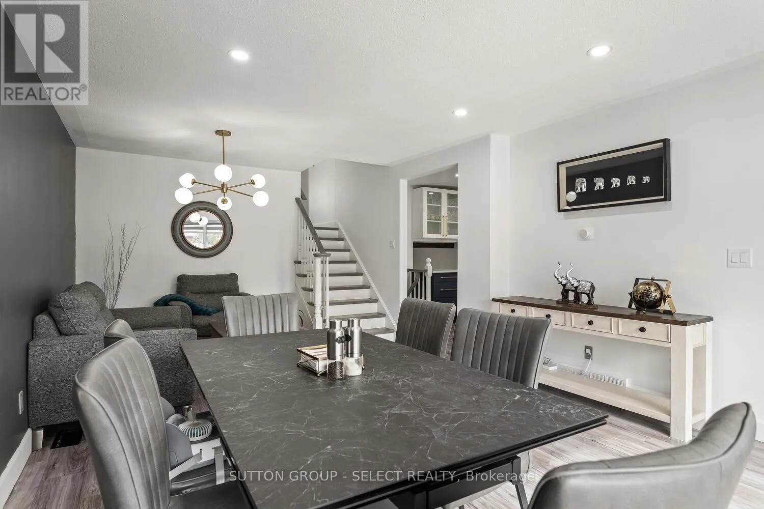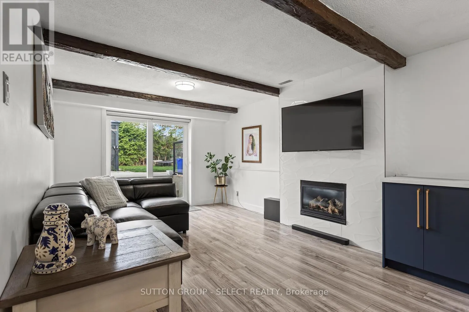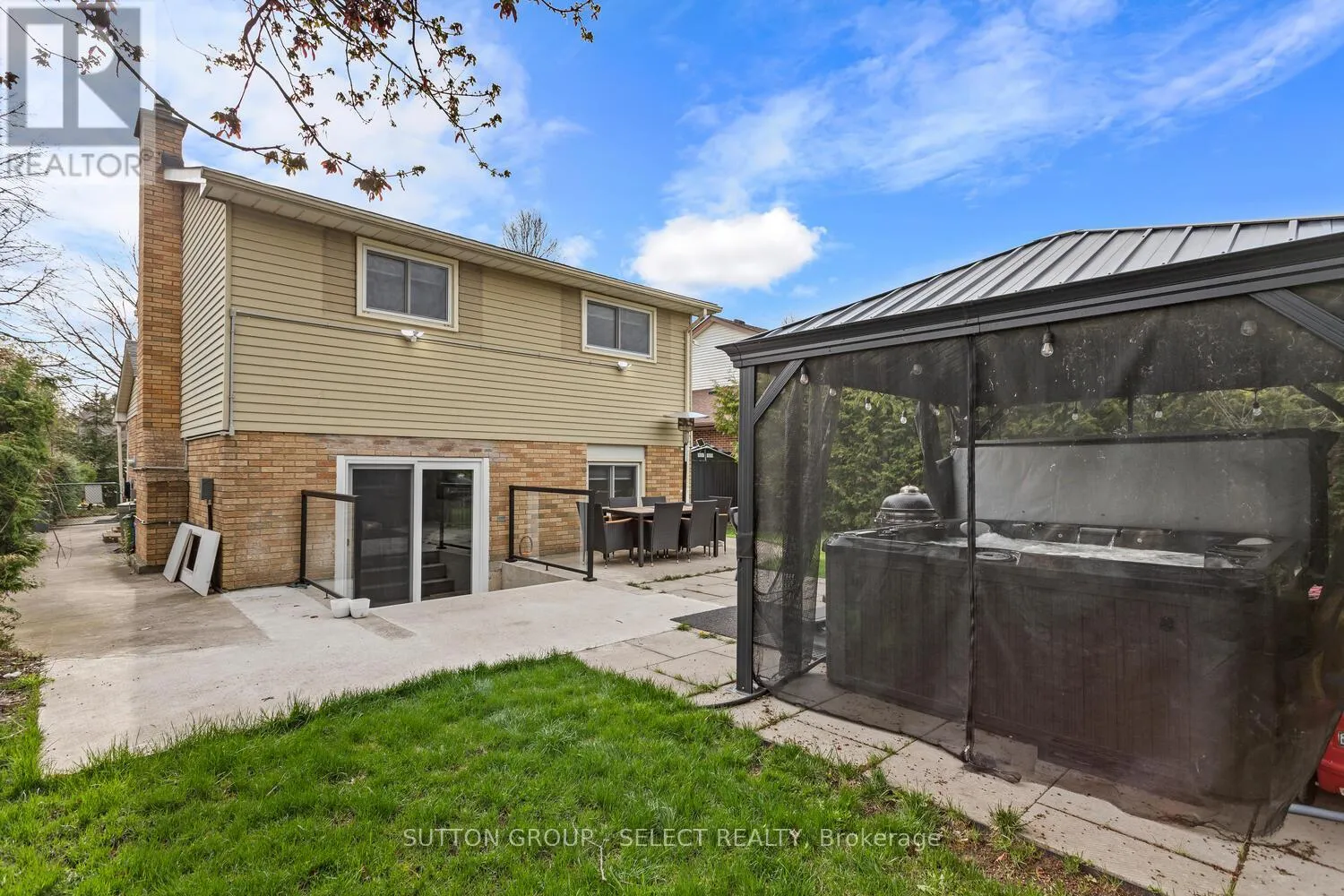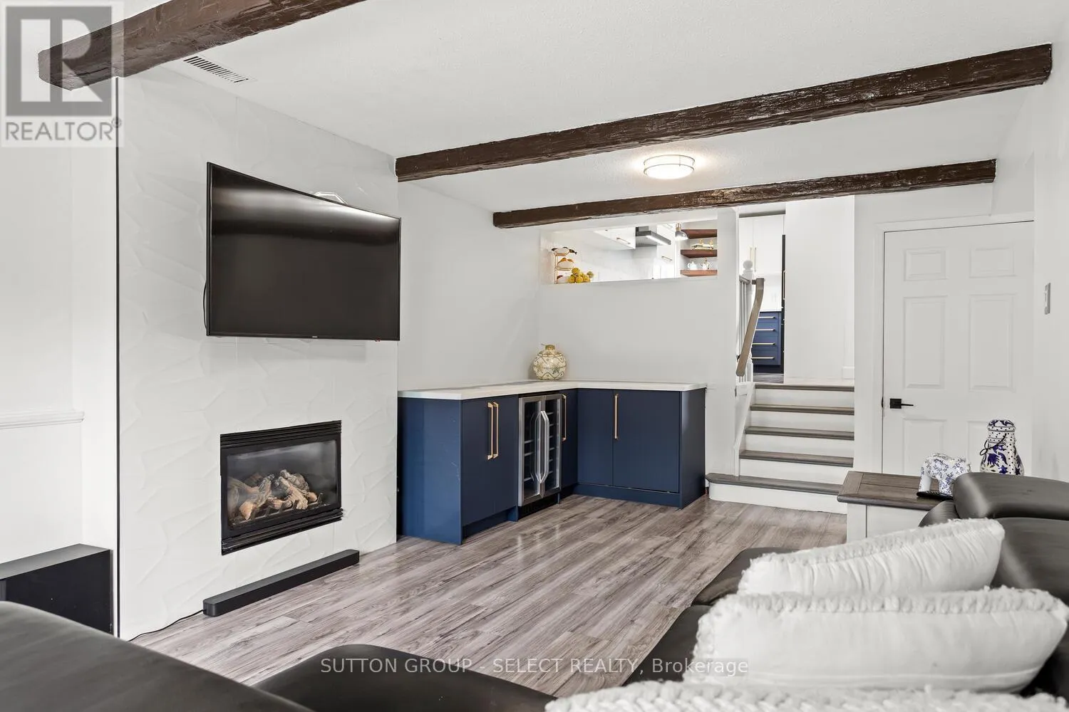Cross Streets: Commissioners / Deveron / Pondmills. ** Directions: From Commissioners East Right on Deveron, Left on Lysanda, left to Lochern. New Year, New Home! Step into this stunning back-split with a walkout basement, offering 4 bedrooms + den and 3 full baths-perfect for growing or multi-generational families. Located in a family-friendly neighborhood, this beautifully updated home features a modern kitchen with stainless steel appliances, ample cabinetry, and an open-concept layout flowing into bright living and dining areas.Enjoy new flooring, neutral décor, upgraded lighting, and major recent updates including a new roof, on-demand tankless water heater (2024), and newer A/C. The lower level impresses with a stylish family room, modern fireplace, custom bar island with mini fridge, and a walkout to a fully fenced backyard complete with hot tub and canopy-ideal for entertaining year-round.A concrete double driveway, paved sidewalks, and patio enhance curb appeal. Conveniently located close to schools, hospital, amenities, and Highway 401, this home is truly move-in ready and waiting for you to start the new year right. (id:27476)