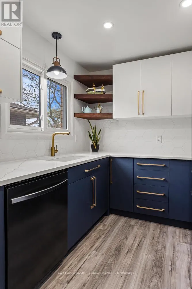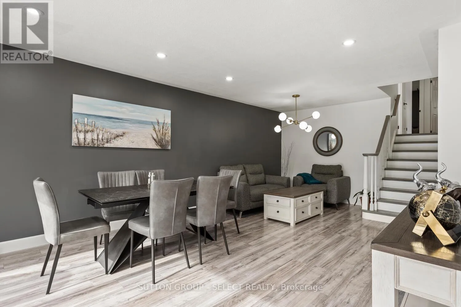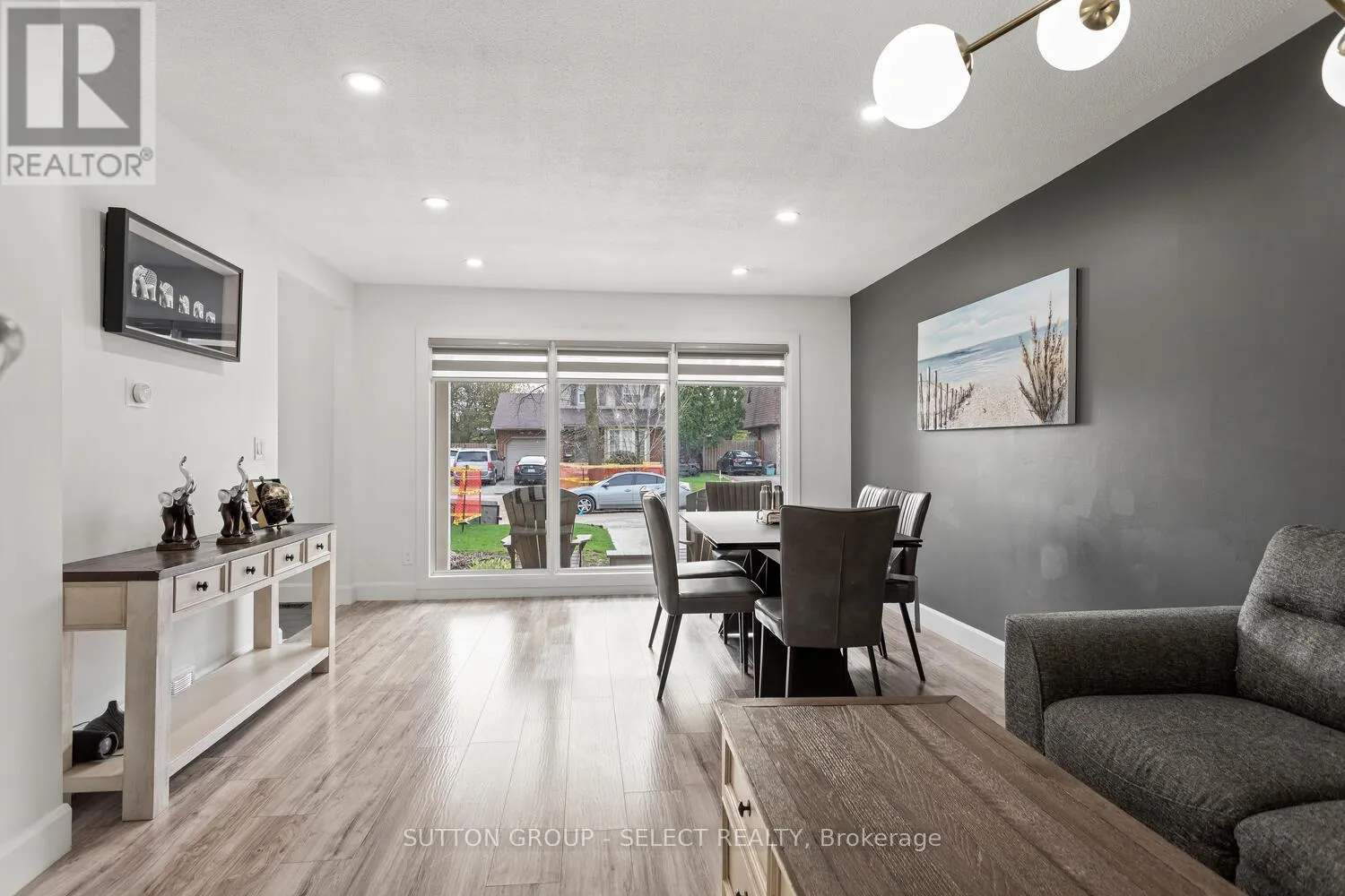 Cross Streets: Commissioners / Deveron / Pondmills. ** Directions: From Commissioners East Right on Deveron, Left on Lysanda, left to Lochern. New Year, New Home! Step into this stunning back-split with a walkout basement, offering 4 bedrooms + den and 3 full baths-perfect for growing or multi-generational families. Located in a family-friendly neighborhood, this beautifully updated home features a modern kitchen with stainless steel appliances, ample cabinetry, and an open-concept layout flowing into bright living and dining areas.Enjoy new flooring, neutral décor, upgraded lighting, and major recent updates including a new roof, on-demand tankless water heater (2024), and newer A/C. The lower level impresses with a stylish family room, modern fireplace, custom bar island with mini fridge, and a walkout to a fully fenced backyard complete with hot tub and canopy-ideal for entertaining year-round.A concrete double driveway, paved sidewalks, and patio enhance curb appeal. Conveniently located close to schools, hospital, amenities, and Highway 401, this home is truly move-in ready and waiting for you to start the new year right. (id:27476)