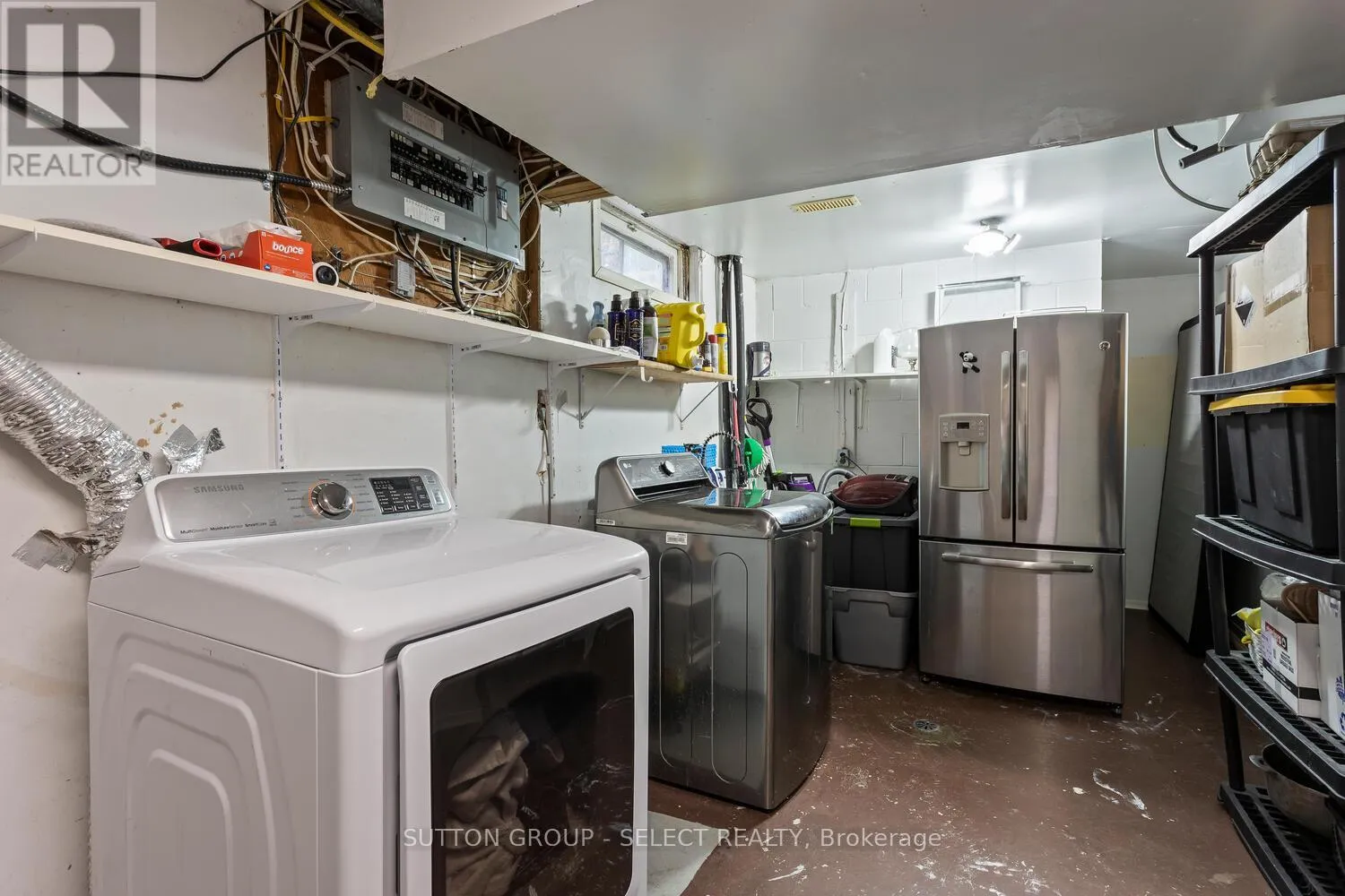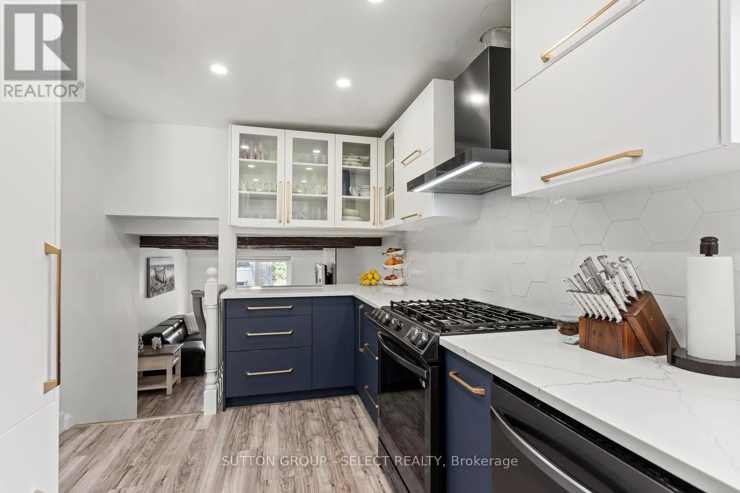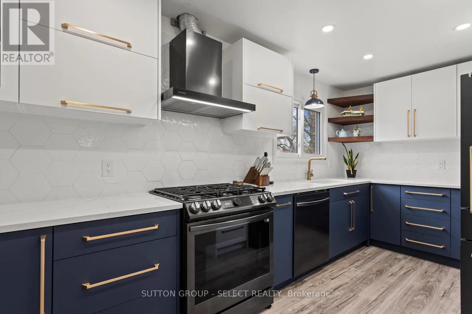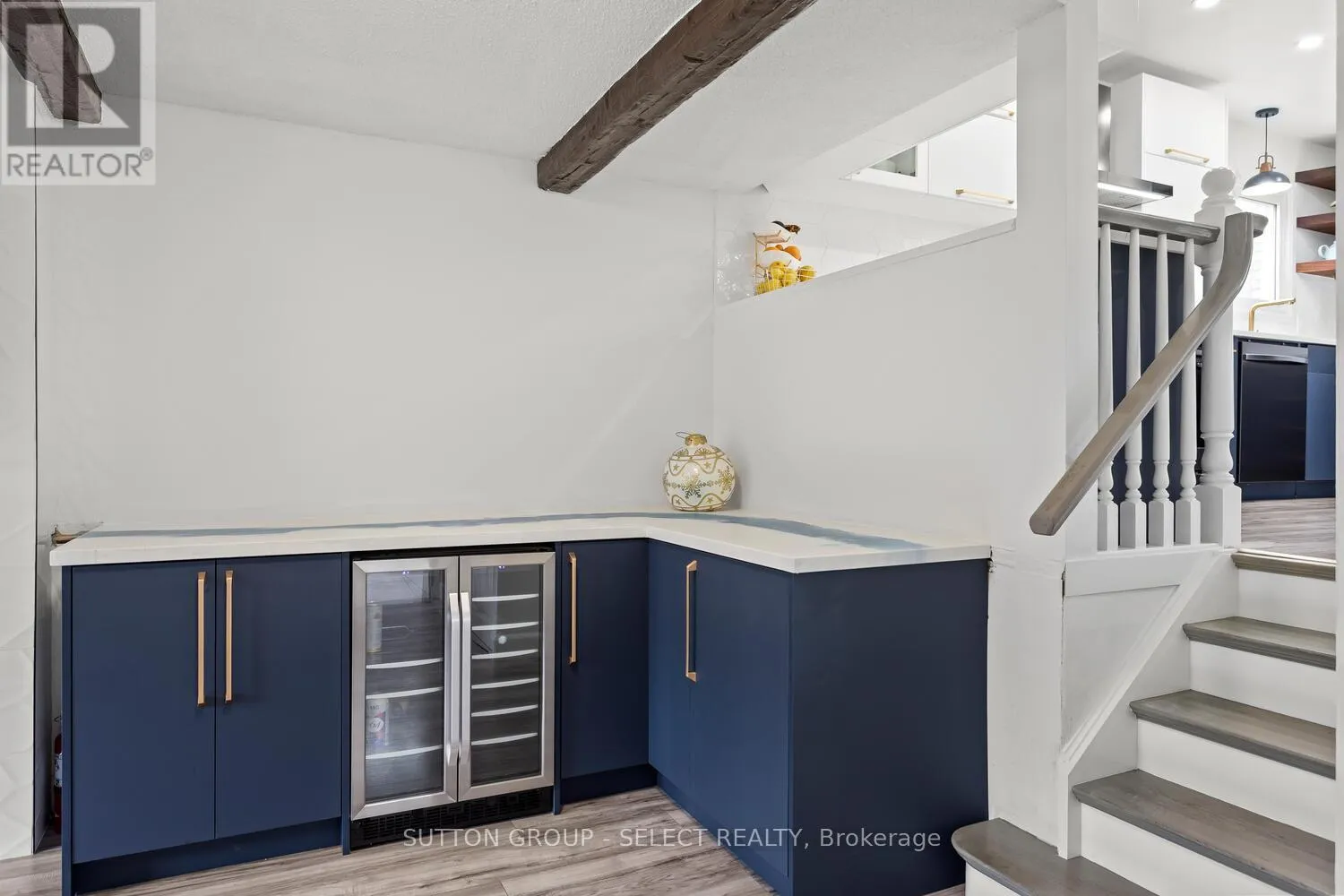 Cross Streets: Commissioners / Deveron / Pondmills. ** Directions: From Commissioners East Right on Deveron, Left on Lysanda, left to Lochern. New Year, New Home! Step into this stunning back-split with a walkout basement, offering 4 bedrooms + den and 3 full baths-perfect for growing or multi-generational families. Located in a family-friendly neighborhood, this beautifully updated home features a modern kitchen with stainless steel appliances, ample cabinetry, and an open-concept layout flowing into bright living and dining areas.Enjoy new flooring, neutral décor, upgraded lighting, and major recent updates including a new roof, on-demand tankless water heater (2024), and newer A/C. The lower level impresses with a stylish family room, modern fireplace, custom bar island with mini fridge, and a walkout to a fully fenced backyard complete with hot tub and canopy-ideal for entertaining year-round.A concrete double driveway, paved sidewalks, and patio enhance curb appeal. Conveniently located close to schools, hospital, amenities, and Highway 401, this home is truly move-in ready and waiting for you to start the new year right. (id:27476)