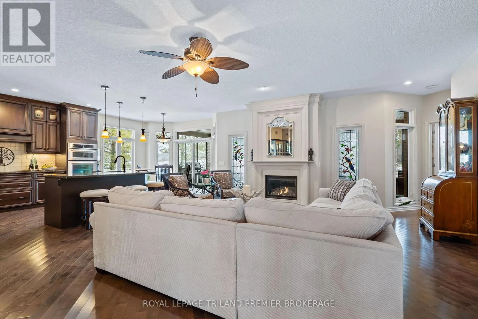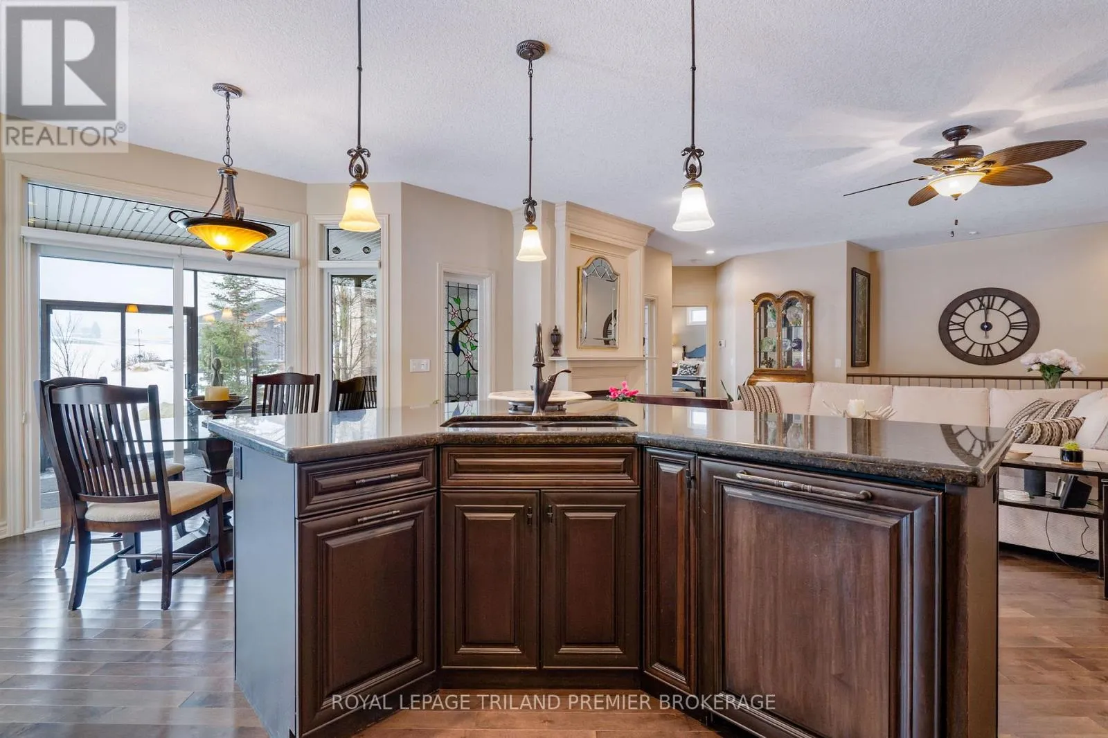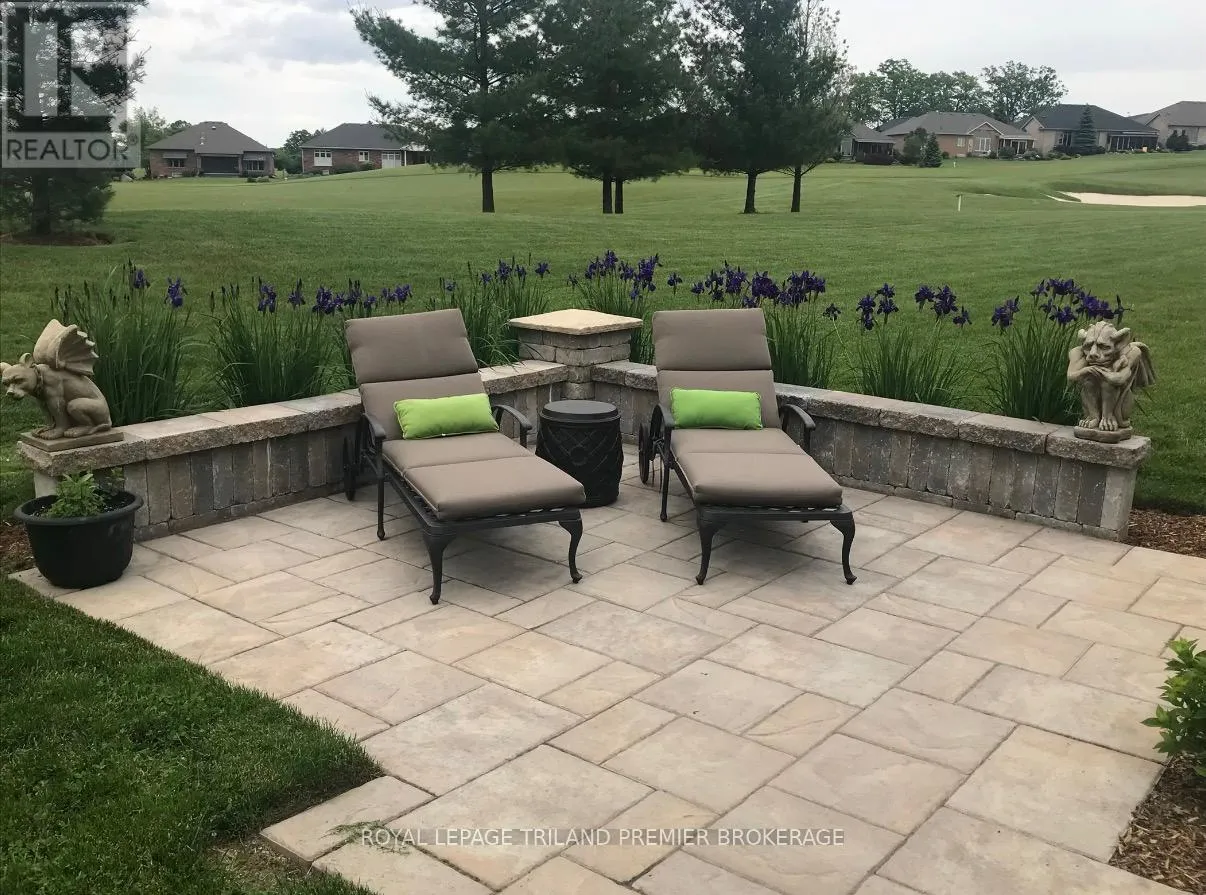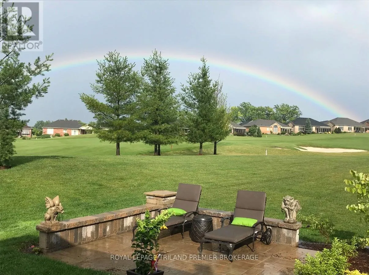 Cross Streets: Sandra Post Cres. ** Directions: Located in the Riverbend Gated Community. Welcome to the prestigious golf community of River Bend, where this impeccably maintained (2+1Bed 3 full bathroom) Marion Model bungalow delivers refined living from the moment you arrive. Framed by a picturesque pond and the natural beauty of Kains Woods with the 12th TBox from your front covered porch. Then head out back to a breathtaking backdrop, with sweeping views of the11th fairway and green enjoyed from the private patio or the expansive 30.6' x 14' screened rear porch. The elegant open-concept interior is thoughtfully finished with timeless, designer-selected details and upgrades throughout. Rich dark hardwood flooring, a custom kitchen, and a sophisticated blend of ceramic, granite, and marble create a seamless and elevated aesthetic that is both luxurious and inviting. The professionally finished lower level extends the living space beautifully, featuring a spacious family-sized rec room with custom built-ins, a games room perfectly sized for a pool table with wet bar, an additional bedroom, dedicated gym space, and a full bathroom. Exceptional storage throughout the home ensures effortless organization and functionality. Completing this exceptional offering is the monthly land lease and fee of ONLY $1,175.76, providing unparalleled convenience and peace of mind. This includes 24-hour gated concierge service, lawn and sprinkler maintenance, snow removal, and exclusive clubhouse privileges. An outstanding opportunity in one of the city's most desirable communities-schedule your private showing today (id:27476)