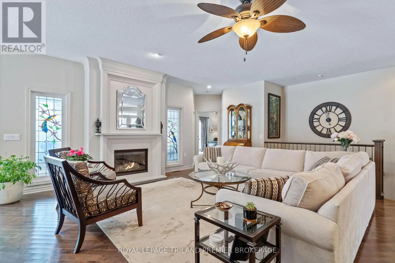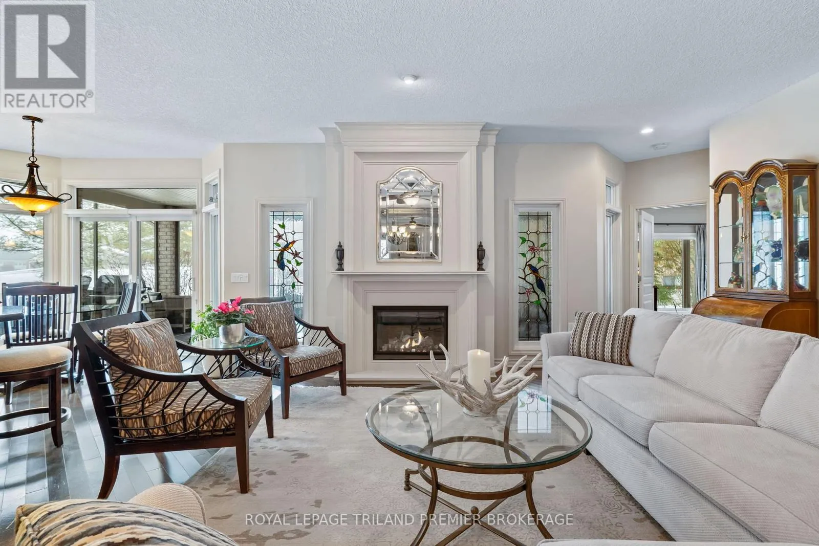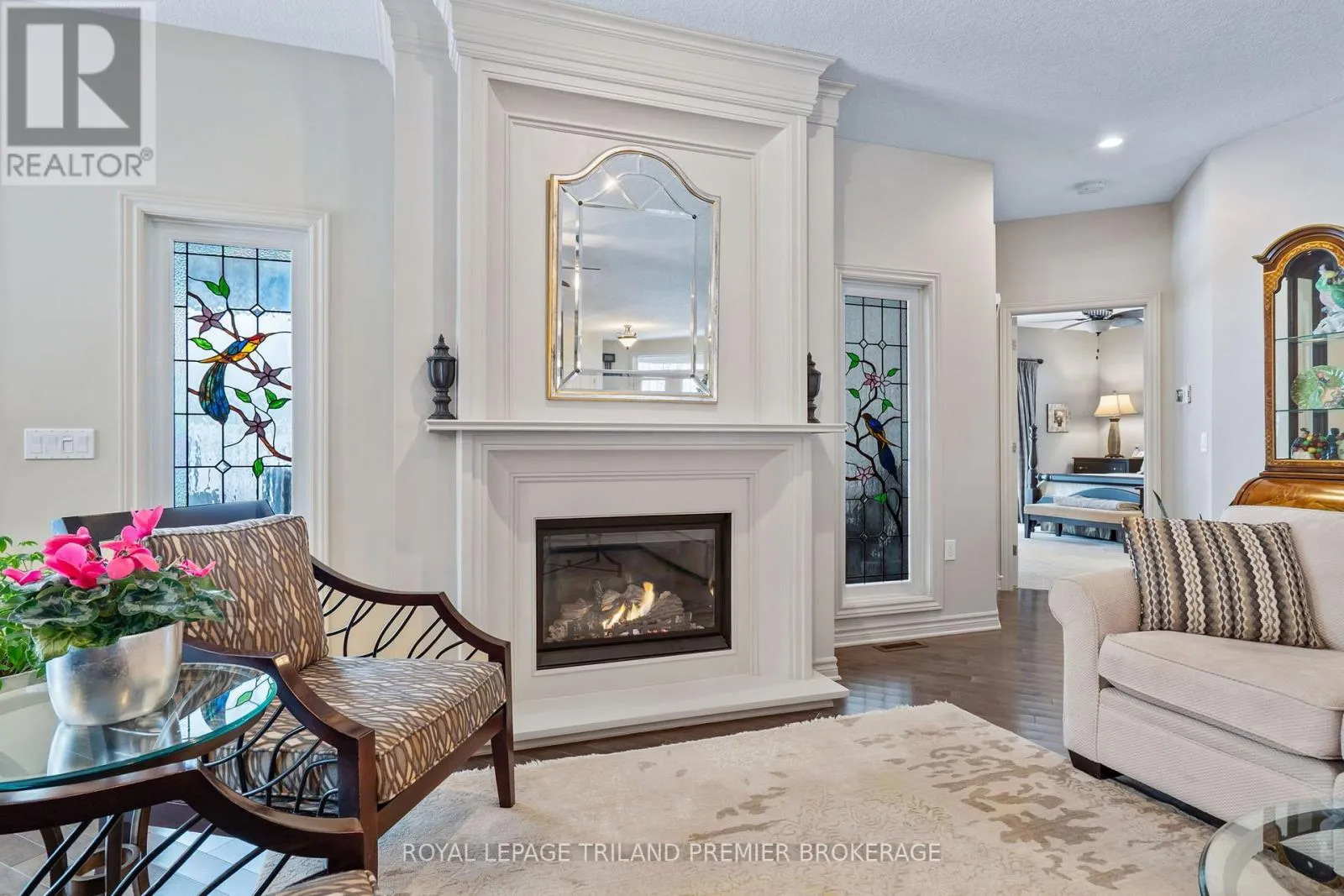Cross Streets: Sandra Post Cres. ** Directions: Located in the Riverbend Gated Community. Welcome to the prestigious golf community of River Bend, where this impeccably maintained (2+1Bed 3 full bathroom) Marion Model bungalow delivers refined living from the moment you arrive. Framed by a picturesque pond and the natural beauty of Kains Woods with the 12th TBox from your front covered porch. Then head out back to a breathtaking backdrop, with sweeping views of the11th fairway and green enjoyed from the private patio or the expansive 30.6' x 14' screened rear porch. The elegant open-concept interior is thoughtfully finished with timeless, designer-selected details and upgrades throughout. Rich dark hardwood flooring, a custom kitchen, and a sophisticated blend of ceramic, granite, and marble create a seamless and elevated aesthetic that is both luxurious and inviting. The professionally finished lower level extends the living space beautifully, featuring a spacious family-sized rec room with custom built-ins, a games room perfectly sized for a pool table with wet bar, an additional bedroom, dedicated gym space, and a full bathroom. Exceptional storage throughout the home ensures effortless organization and functionality. Completing this exceptional offering is the monthly land lease and fee of ONLY $1,175.76, providing unparalleled convenience and peace of mind. This includes 24-hour gated concierge service, lawn and sprinkler maintenance, snow removal, and exclusive clubhouse privileges. An outstanding opportunity in one of the city's most desirable communities-schedule your private showing today (id:27476)