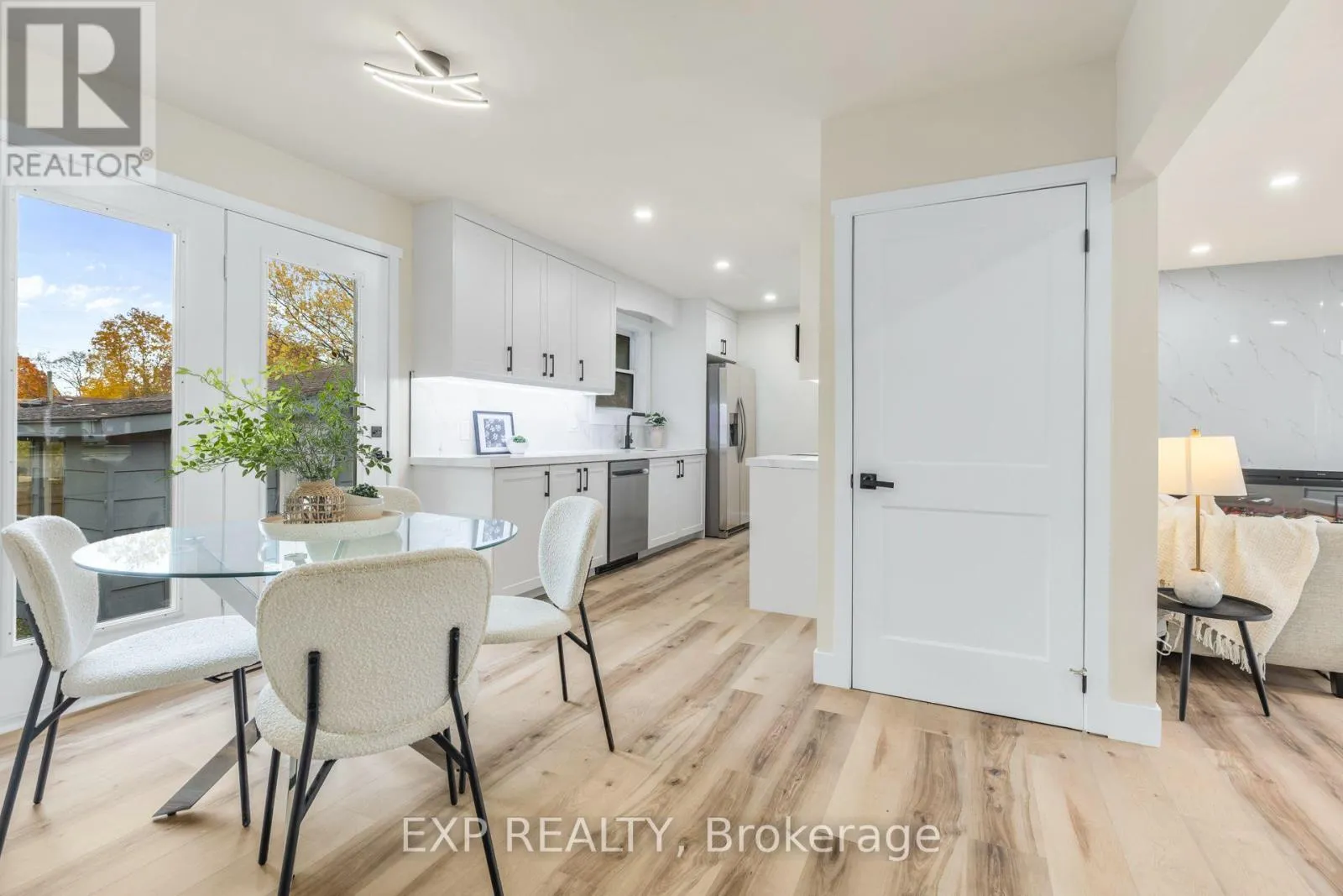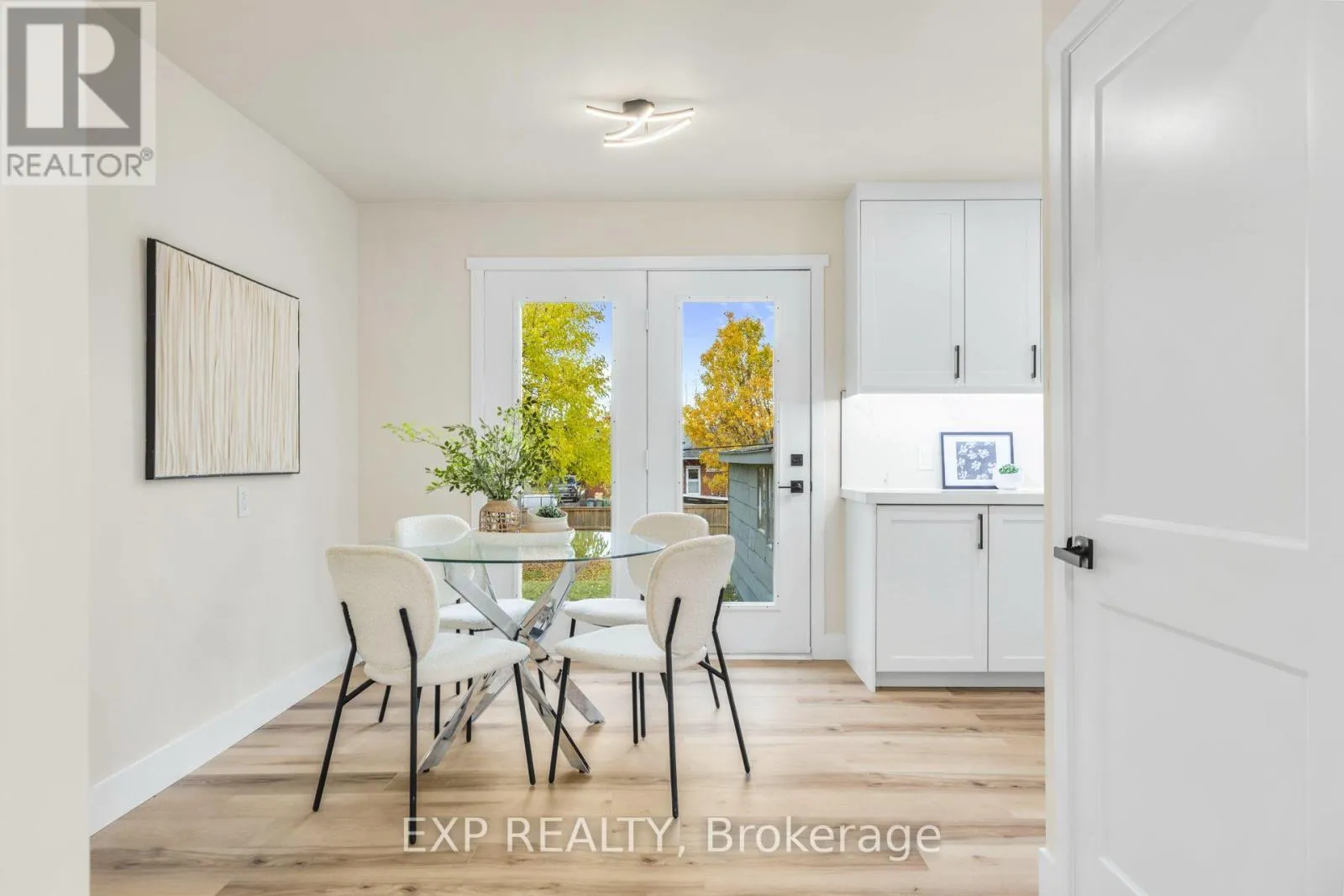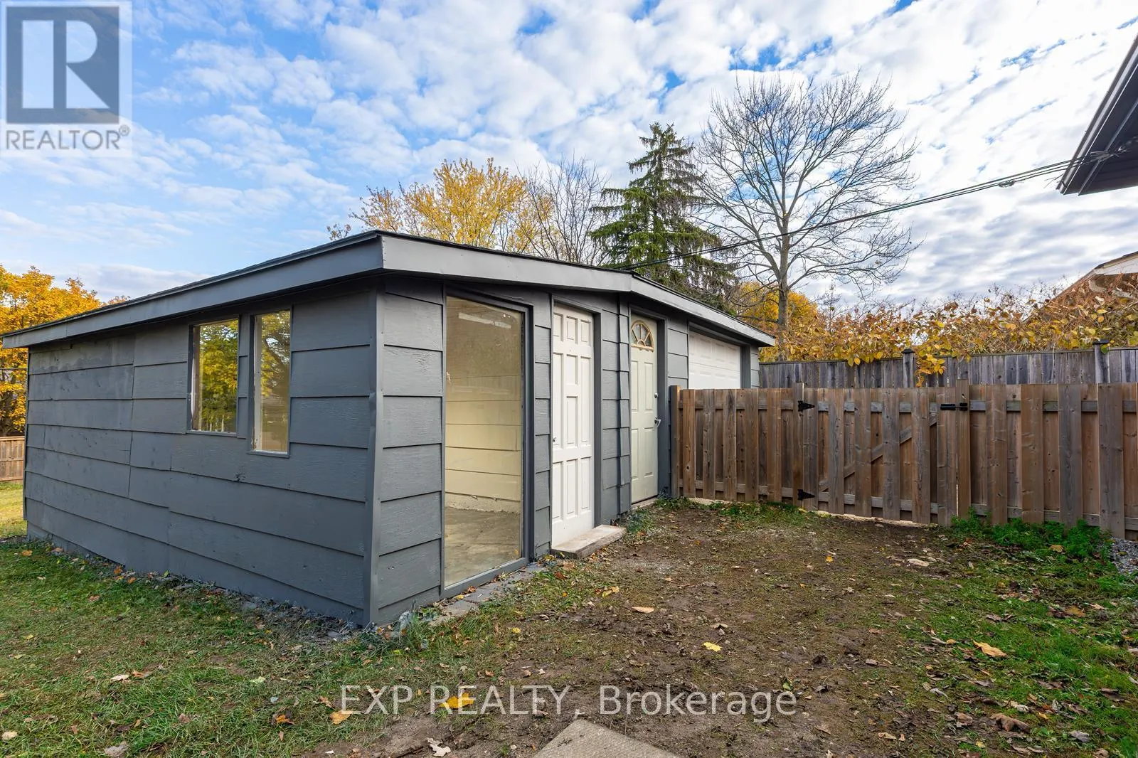 Cross Streets: West St. ** Directions: From Wharncliffe Rd S go west on Commissioners Rd - 239 Commissioners will be on the right (north) side of the road. Welcome to 239 Commissioners Rd W - a renovated brick bungalow on a deep 140' lot with a double-wide driveway, ideally located in West London close to schools, parks, shopping, hospital services, and public transit. The bright main level offers a functional layout with a welcoming living room featuring an accent wall and fireplace, an open kitchen and dining area, three well-sized bedrooms, and a full bathroom. Patio doors off the dining area provide direct access to the backyard, creating a convenient indoor-outdoor connection. The interior has been freshly painted and the lower level features a separate entrance, two additional bedrooms, an office, a den, a second kitchen, and a full bathroom, offering flexibility for a variety of potential living arrangements or future use. Buyers to satisfy themselves with respect to any permitted uses.Major mechanical updates include furnace, air conditioner, and hot water heater (approximately three years old). Roof shingles are approximately 10 years old, with the garage/shed roof approximately 8 years old. Both kitchens have been updated with modern cabinetry and newer appliances, each with approximately two years of warranty remaining. The property passed a full ESA inspection in 2025 and includes a recent energy audit reflecting strong efficiency results. A detached garage with attached shed features 30-amp service, high-bay lighting, and updated siding (repaired and repainted in 2025), offering added functionality for storage, workshop, or hobby use. A conceptual plan has been submitted to the City regarding a potential garage conversion; buyers to complete their own due diligence. A move-in-ready home offering comfort, flexibility, and long-term appeal. Some basement photos are virtually staged and noted as such. (id:27476)