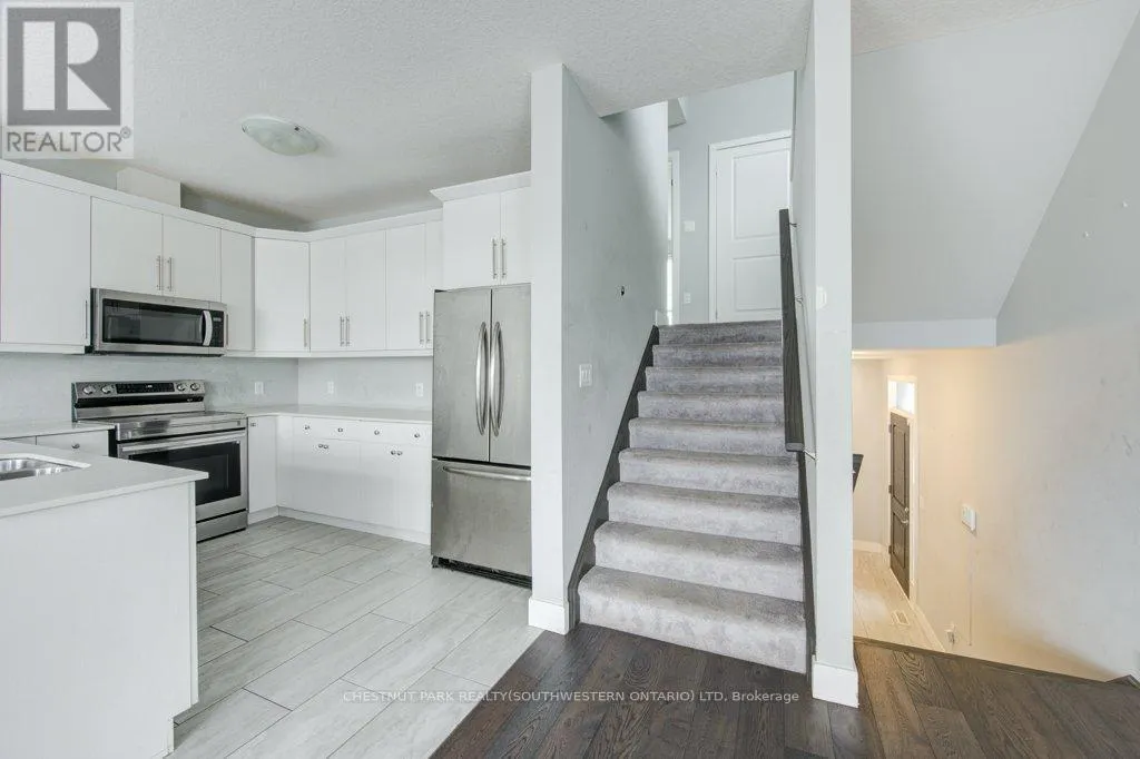 Cross Streets: Between Evans Blvd and Bradley Ave. ** Directions: Bradley Ave to Chelton. Welcome to this stunning 3-bedroom, 3.5-bath end-unit townhouse that offers the perfect blend of comfort, style, and functionality. With an attached garage, a spacious deck, and a fully finished basement featuring an additional full bathroom, this home is designed to meet all your needs. Step inside to discover a bright and airy living room, filled with natural light from generous windows. The open layout flows seamlessly into the dining area, perfect for hosting family meals or entertaining friends. Downstairs, the versatile finished basement provides endless possibilities-use it as a cozy family room, a productive home office, or a private guest suite. The outdoor deck invites you to unwind while enjoying serene neighbourhood views, and the attached garage offers the convenience of secure parking and extra storage. Located in a sought-after community, this townhouse boasts easy access to Highway 401, top-notch local amenities, restaurants, and shopping destinations. It's the ideal home for anyone looking to join a vibrant and thriving neighbourhood. Don't miss your chance to make this exceptional property your own! (id:27476)