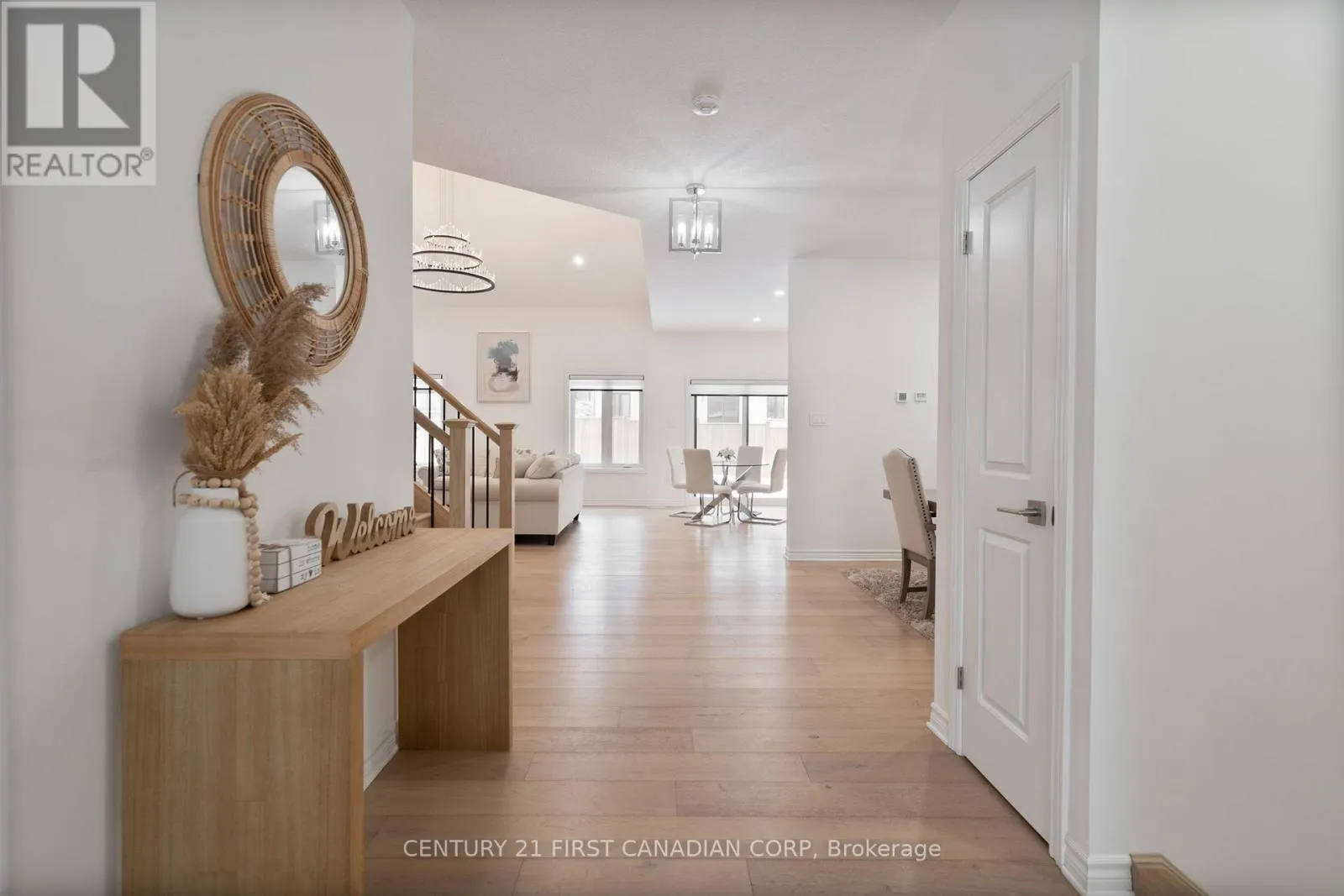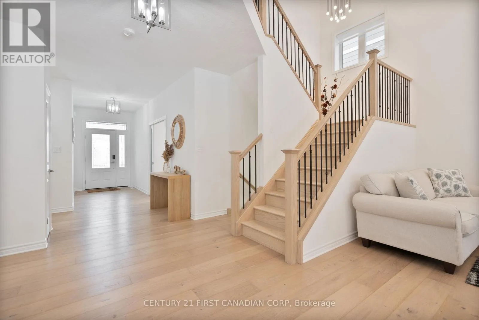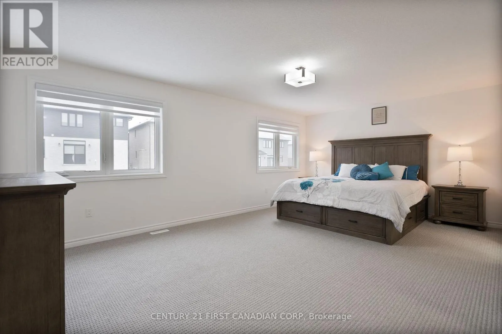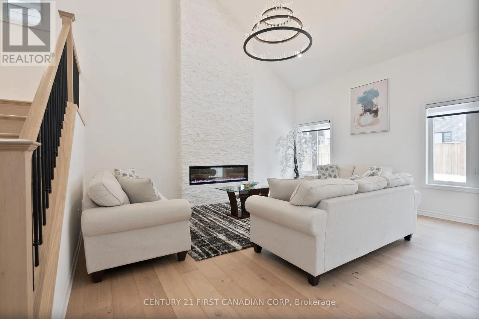 Cross Streets: OXFORD RD W & RIVERBEND RD. ** Directions: From Oxford St W, head south on Riverbend Rd, at the end of the road, turn right onto Boardwalk Way, home will be on the left. Welcome to 1899 Boardwalk Way-- where modern elegance meets comfort and convenience. Located in the desirable Riverbend community, steps from the trails of Warbler Woods, this Sifton-built home sits on a generous 50' lot. Offering over 2800 sq ft of finished living space above grade, plus an expansive basement ready for customization, the home features sun-filled interiors, hardwood floors, designer lighting, custom window coverings, and refined contemporary finishes throughout. The main foyer opens to a formal living room or private office behind double pocket doors. The open-concept two-storey great room showcases a cozy electric fireplace with stone feature wall and flows seamlessly into the breakfast area, formal dining room, and custom kitchen-- ideal for entertaining and everyday living. The custom kitchen offers upgraded cabinetry, stone countertops, premium black stainless steel appliances, and a spice kitchen with gas stove. A stylish main-floor powder room and inside access to the double-car garage complete the main level. Upstairs, the spacious primary suite features ample closet space and a spa-inspired ensuite with double vanity, walk-in shower, and soaker tub. Three additional bedrooms-- one with ensuite-- along with a modern main bath and upper-level laundry complete the second floor. Additional highlights include an owned water softener, large front porch, and an unbeatable location near walking paths, community park, new public elementary school (under construction), and nearby dining options. Luxury, comfort, and convenience await at 1899 Boardwalk Way. (id:27476)
