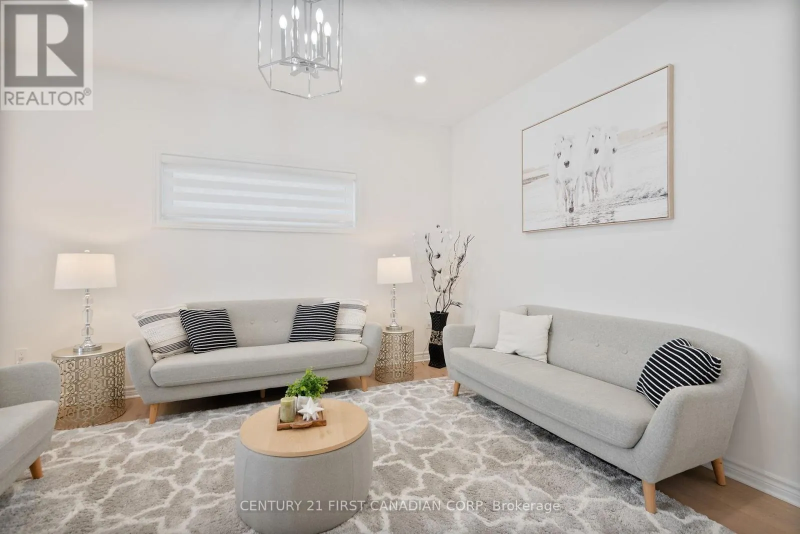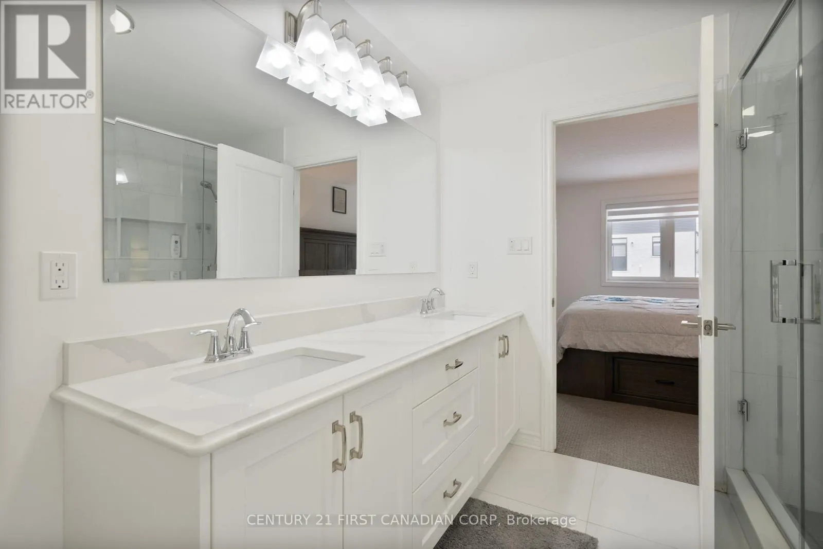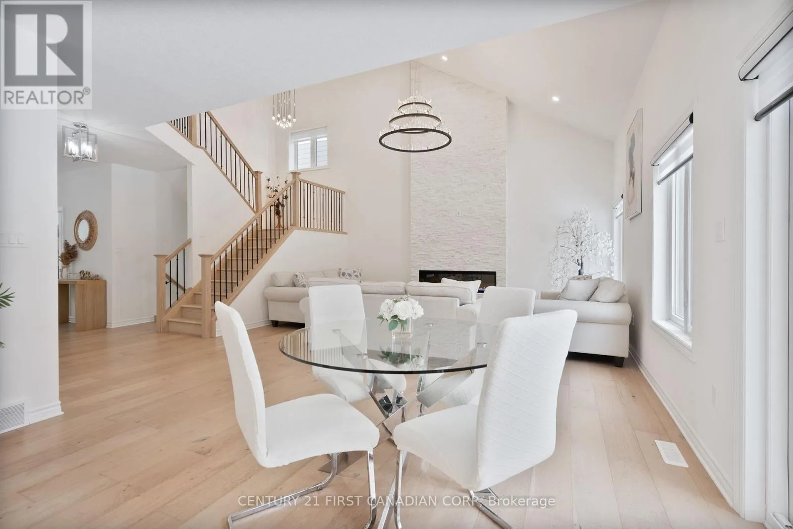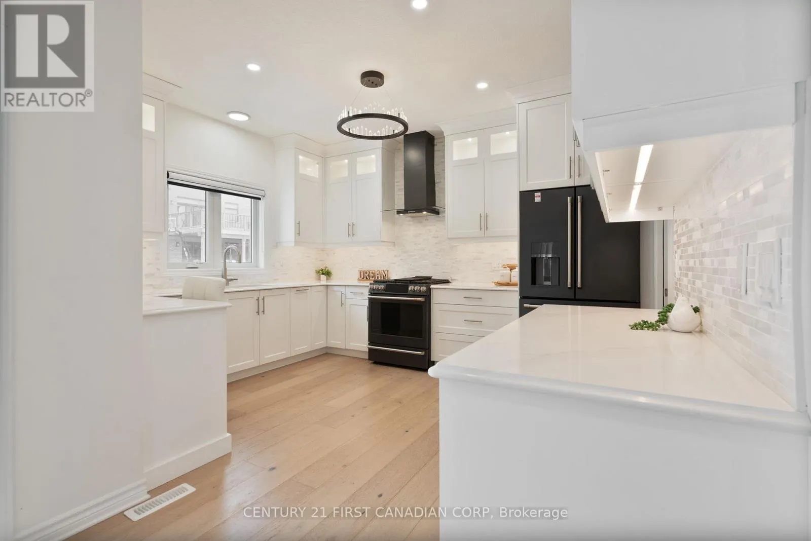 Cross Streets: OXFORD RD W & RIVERBEND RD. ** Directions: From Oxford St W, head south on Riverbend Rd, at the end of the road, turn right onto Boardwalk Way, home will be on the left. Welcome to 1899 Boardwalk Way-- where modern elegance meets comfort and convenience. Located in the desirable Riverbend community, steps from the trails of Warbler Woods, this Sifton-built home sits on a generous 50' lot. Offering over 2800 sq ft of finished living space above grade, plus an expansive basement ready for customization, the home features sun-filled interiors, hardwood floors, designer lighting, custom window coverings, and refined contemporary finishes throughout. The main foyer opens to a formal living room or private office behind double pocket doors. The open-concept two-storey great room showcases a cozy electric fireplace with stone feature wall and flows seamlessly into the breakfast area, formal dining room, and custom kitchen-- ideal for entertaining and everyday living. The custom kitchen offers upgraded cabinetry, stone countertops, premium black stainless steel appliances, and a spice kitchen with gas stove. A stylish main-floor powder room and inside access to the double-car garage complete the main level. Upstairs, the spacious primary suite features ample closet space and a spa-inspired ensuite with double vanity, walk-in shower, and soaker tub. Three additional bedrooms-- one with ensuite-- along with a modern main bath and upper-level laundry complete the second floor. Additional highlights include an owned water softener, large front porch, and an unbeatable location near walking paths, community park, new public elementary school (under construction), and nearby dining options. Luxury, comfort, and convenience await at 1899 Boardwalk Way. (id:27476)