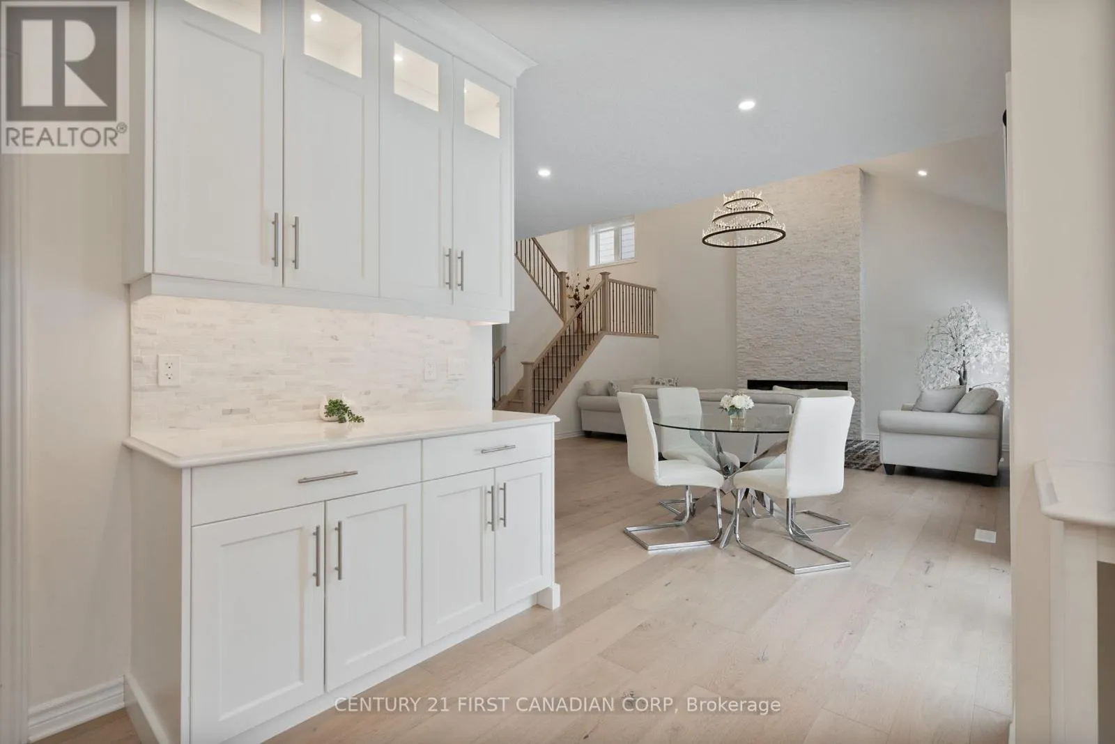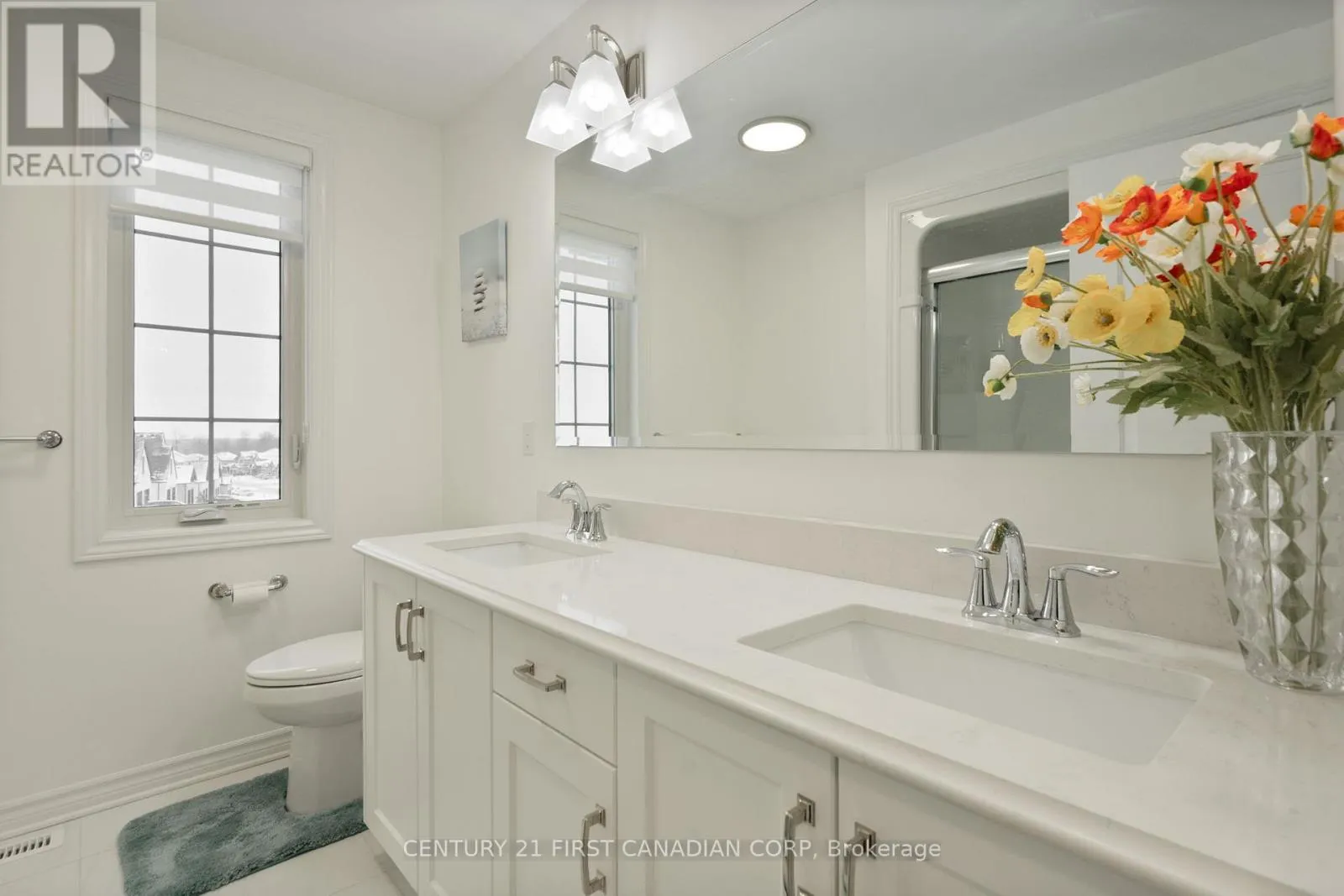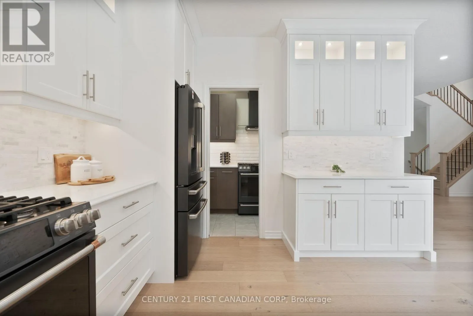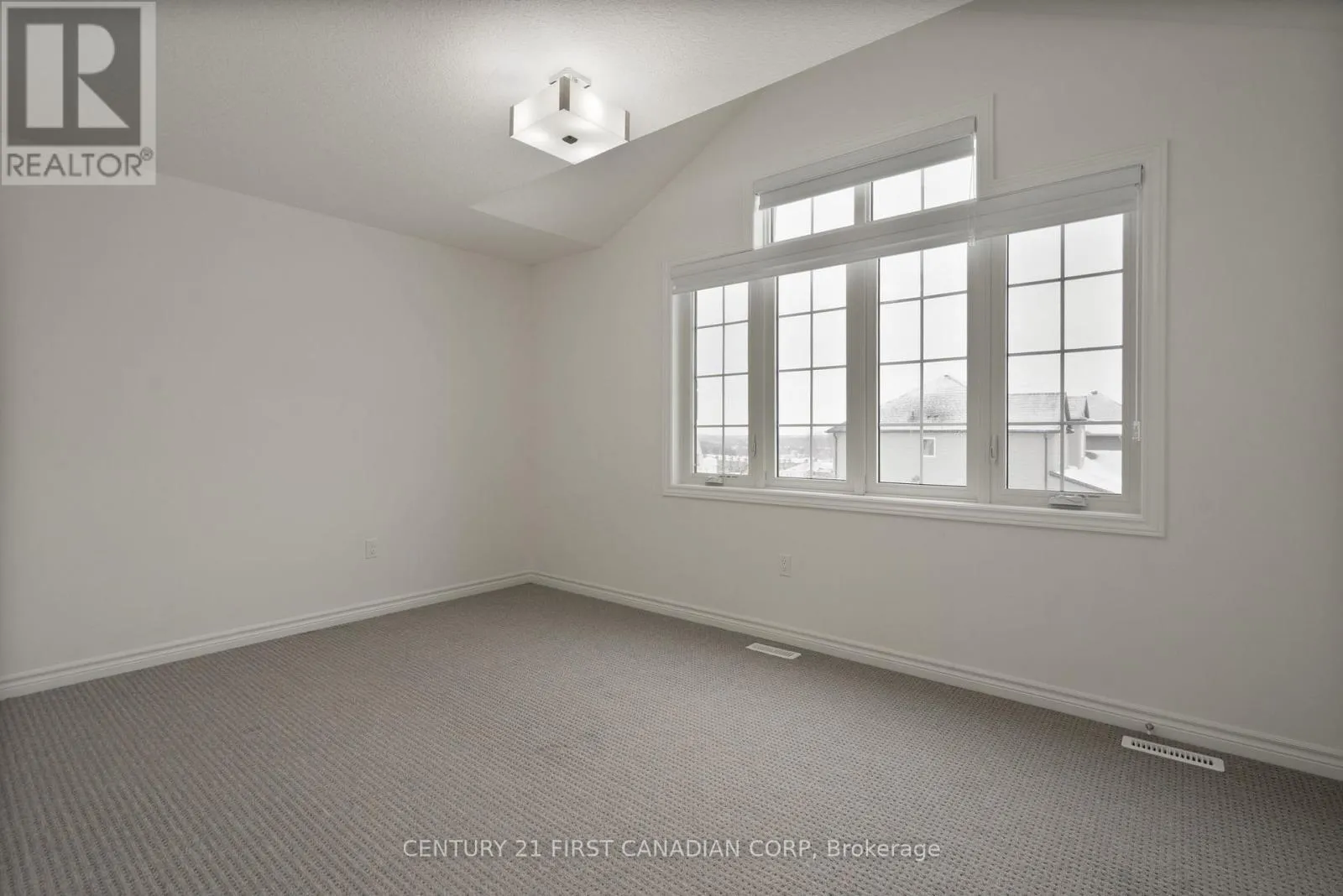 Cross Streets: OXFORD RD W & RIVERBEND RD. ** Directions: From Oxford St W, head south on Riverbend Rd, at the end of the road, turn right onto Boardwalk Way, home will be on the left. Welcome to 1899 Boardwalk Way-- where modern elegance meets comfort and convenience. Located in the desirable Riverbend community, steps from the trails of Warbler Woods, this Sifton-built home sits on a generous 50' lot. Offering over 2800 sq ft of finished living space above grade, plus an expansive basement ready for customization, the home features sun-filled interiors, hardwood floors, designer lighting, custom window coverings, and refined contemporary finishes throughout. The main foyer opens to a formal living room or private office behind double pocket doors. The open-concept two-storey great room showcases a cozy electric fireplace with stone feature wall and flows seamlessly into the breakfast area, formal dining room, and custom kitchen-- ideal for entertaining and everyday living. The custom kitchen offers upgraded cabinetry, stone countertops, premium black stainless steel appliances, and a spice kitchen with gas stove. A stylish main-floor powder room and inside access to the double-car garage complete the main level. Upstairs, the spacious primary suite features ample closet space and a spa-inspired ensuite with double vanity, walk-in shower, and soaker tub. Three additional bedrooms-- one with ensuite-- along with a modern main bath and upper-level laundry complete the second floor. Additional highlights include an owned water softener, large front porch, and an unbeatable location near walking paths, community park, new public elementary school (under construction), and nearby dining options. Luxury, comfort, and convenience await at 1899 Boardwalk Way. (id:27476)