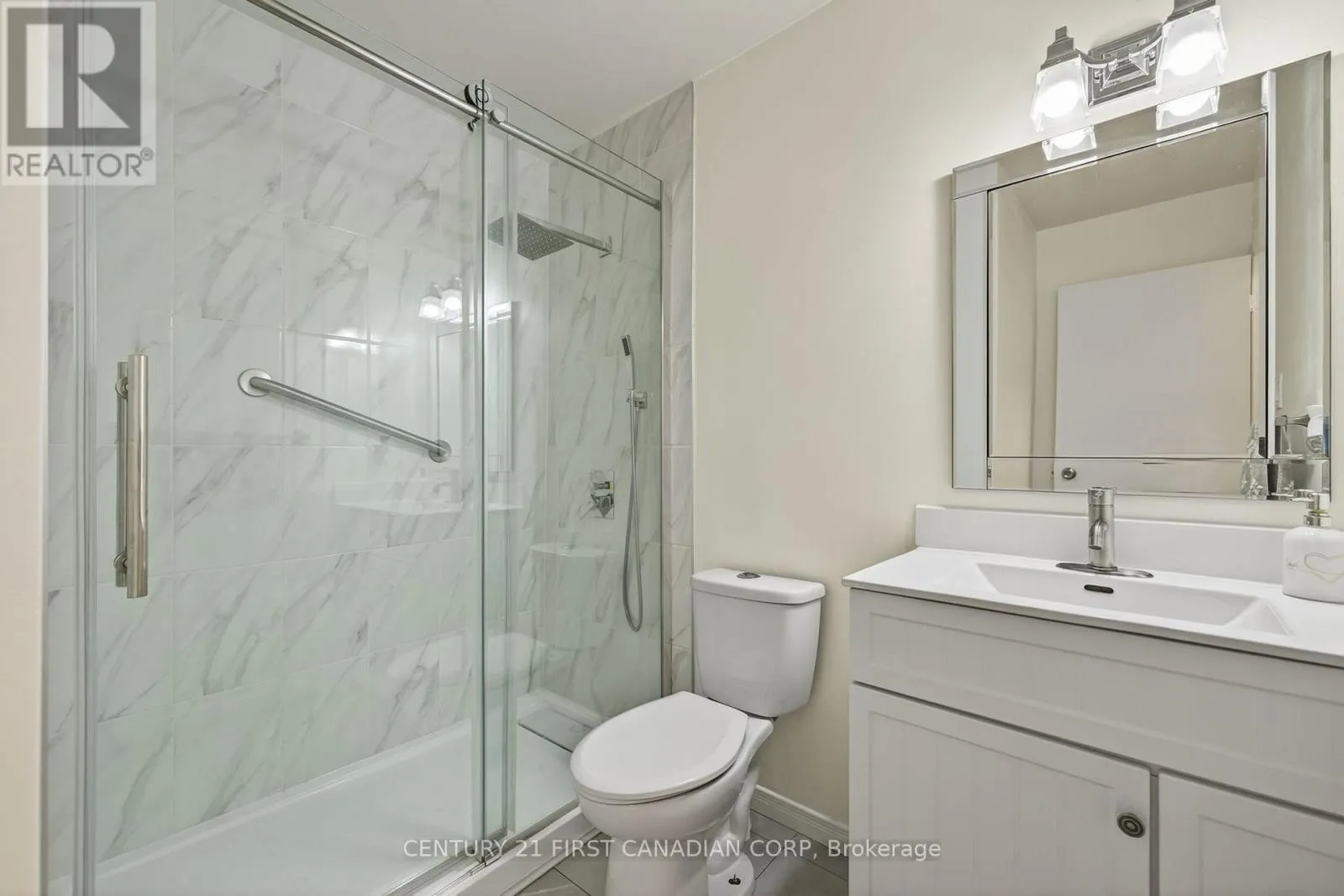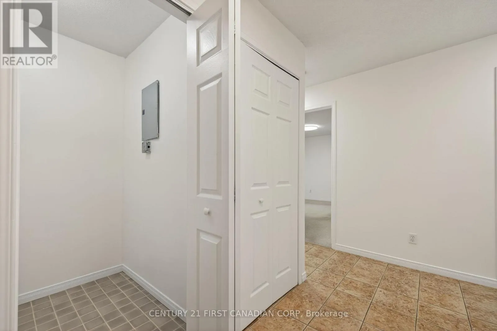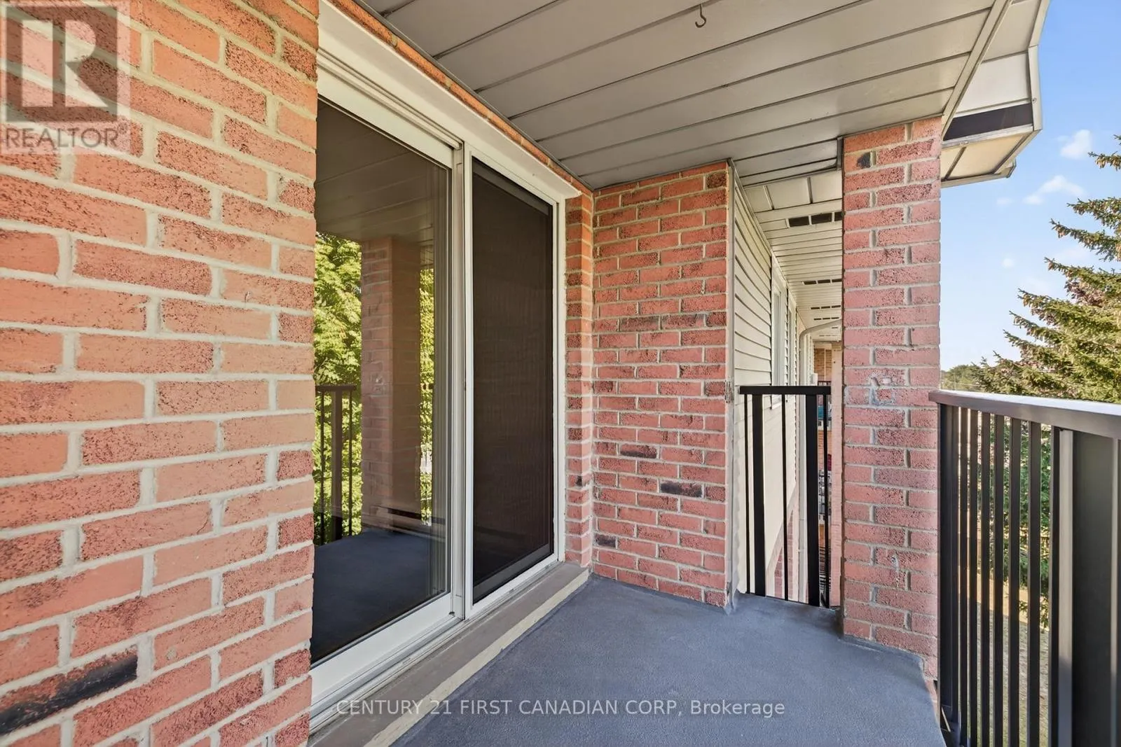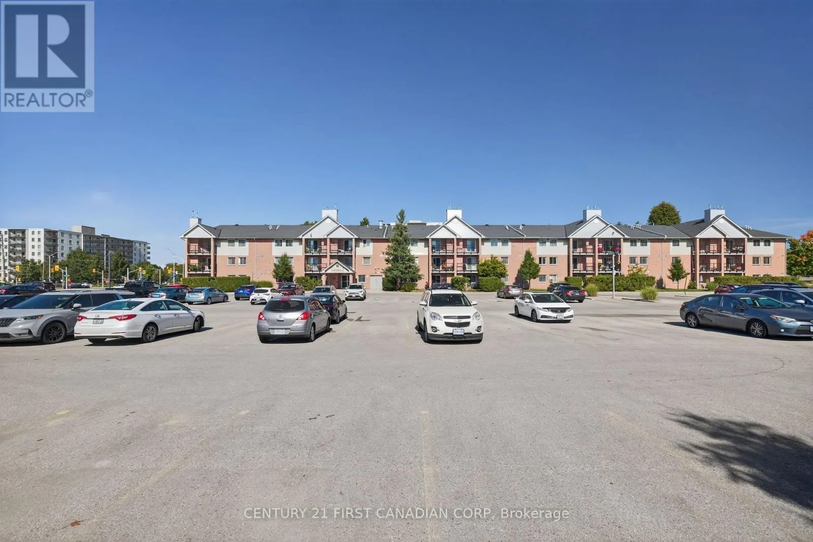Cross Streets: Bradley Ave & Jalna Blvd. ** Directions: From Wellington Road, head west on Bradley, turn left on Ernest Ave, right on Conway Drive. Welcome to South Ridge Meadows! This beautifully maintained top-floor 2-bedroom unit offers 879 sq. ft. of thoughtfully designed living space, plus a private 51 sq. ft. balcony with peaceful northern exposure, perfect for morning coffee or evening relaxation. Step inside to a spacious tiled foyer that opens into a bright and functional galley kitchen, complete with 3 appliances, a separate filtered drinking water tap (installed in 2025), mosaic tile backsplash, under-cabinet lighting, and tile flooring. The kitchen flows into the open-concept dining and living area, featuring tile & luxury vinyl plank flooring and a cozy gas fireplace--ideal for those chilly winter days. The living area also provides direct access to the updated balcony. Down the hall, you'll find two generously sized bedrooms with warm carpet floors and ample closet space. The updated full bathroom (2023) showcases a tiled walk-in shower, large-format tile floors, a modern vanity, new faucet, and a new toilet. Additional features include in-suite laundry and a large in-unit storage room. This well-managed complex offers plenty of surface parking and a refreshing outdoor pool for residents to enjoy in the warmer months. Recent building upgrades include new tile and carpet flooring in the lobby & hallways, a new elevator, updated unit doors and hardware--adding to the overall appeal and peace of mind. Conveniently located near White Oaks Mall, Food Basics, Costco South, a wide selection of restaurants, banks, and just minutes from Hwy 401. Outdoor lovers will appreciate the nearby network of scenic walking paths, stretching from Exeter Road to Jalna Blvd, passing through White Oaks Park and Rick Hansen baseball fields. Don't miss this opportunity to own a move-in ready condo in a fantastic location (id:27476)