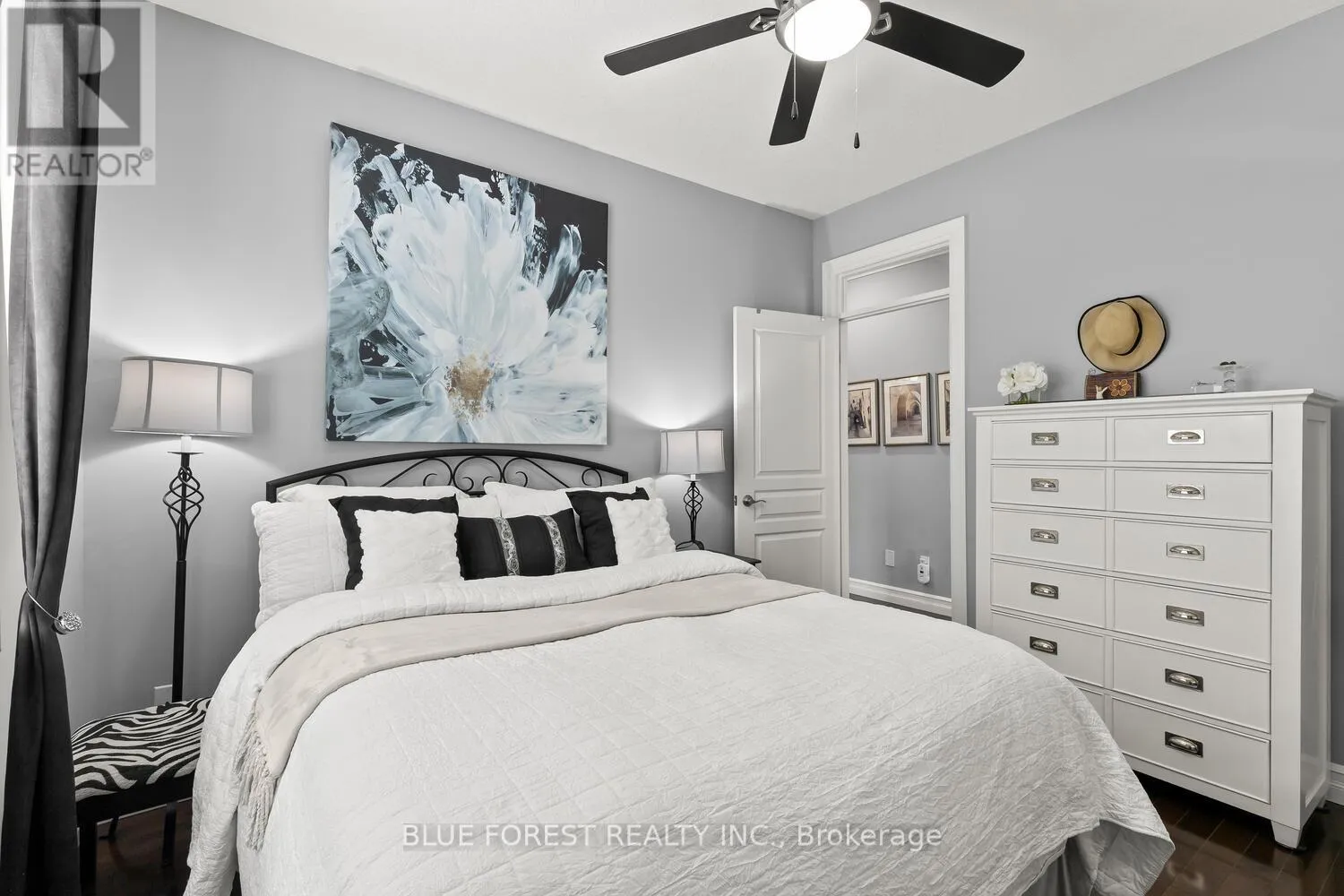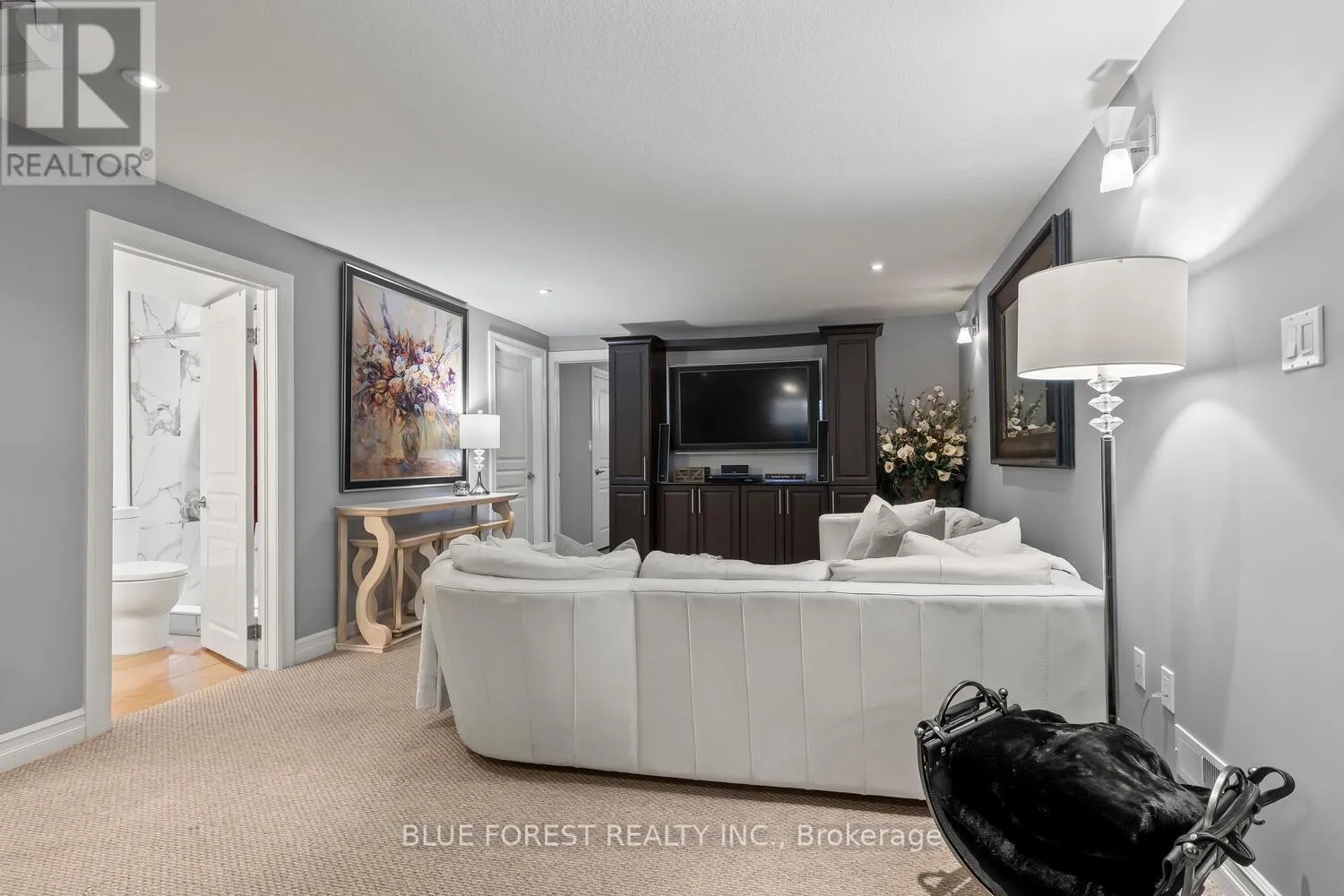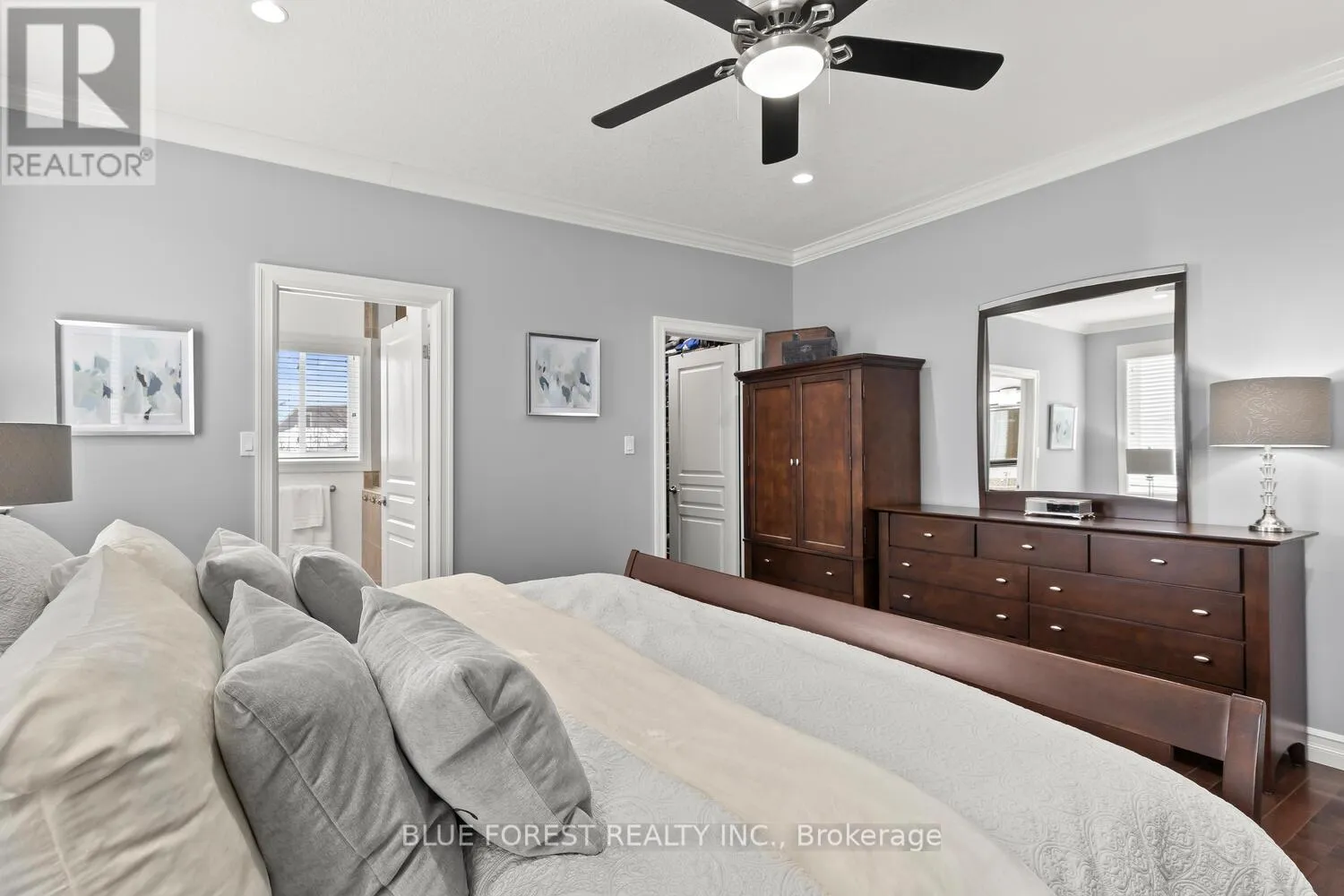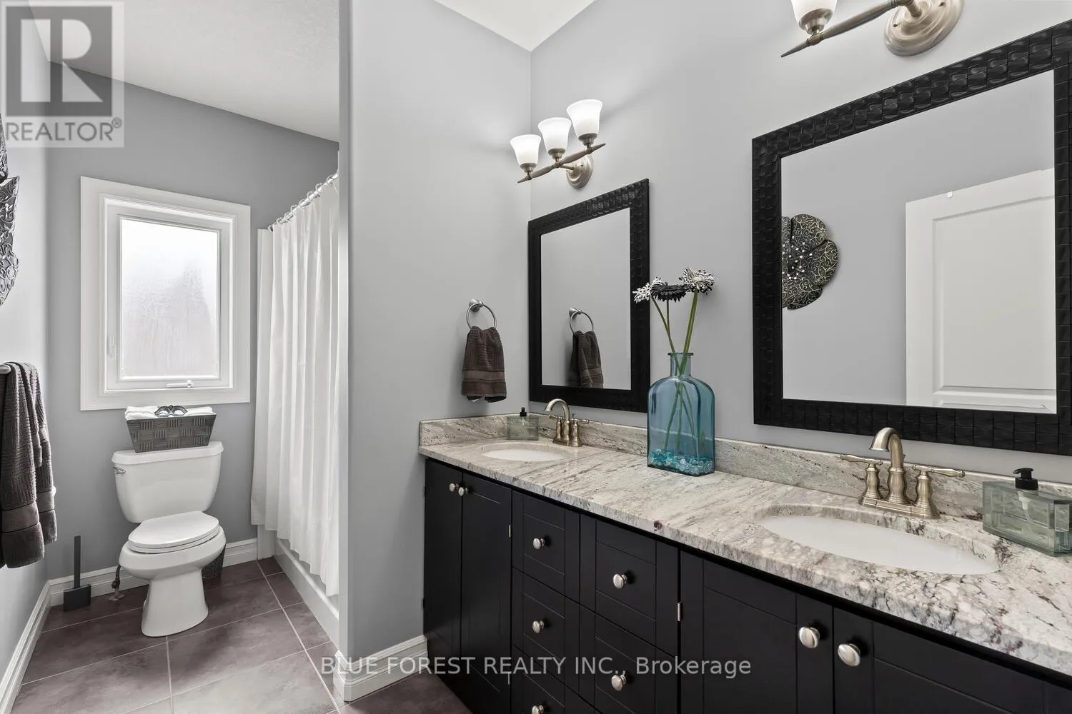 Cross Streets: PACK RD AND COLONEL TALBOT. ** Directions: Colonel Talbot south to Pack rd to Pioneer parkway. This stunning former model home is in immaculate condition and loaded with all the premium upgrades you would expect from a showcase property. Offering over 3,000 square feet of space, this home features 9ft ceilings, rich hardwood floors, and elegant crown moldings throughout. The main floor offers a bright and open layout, including a great room with gas burning fireplace, a beautiful kitchen finished with granite countertops, a large island, a corner pantry, and stainless appliances with a five-burner gas stove. The adjacent dining area features garden doors that open to a large covered porch, which connects to an extended deck. This outdoor setup is perfect for entertaining, providing a seamless transition to the fenced yard and mature trees while offering a sheltered space to enjoy the outdoors regardless of the weather.The main level includes three bedrooms, highlighted by a spacious primary suite featuring a walk-in closet and a three-piece ensuite with a jetted spa shower. One of the additional bedrooms is currently utilized as a formal dining room, demonstrating the floor plan's flexibility. A second four-piece bathroom with granite tops and a convenient laundry room with access to the triple-car garage complete the main floor. The fully finished lower level provides even more functional space with a large combination family and recreation room, complete with a custom built-in entertainment cabinet. This level also features a fourth bedroom with an attached private office and a three-piece bathroom with an updated shower. With a custom brick and stone exterior and a location just steps from nature trails, quick drive to all amenities, hospitals and 401 access, StarTech YMCA, parks, trails, a brand-new public elementary school (White Pine PS) this home is in absolute move-in condition. (id:27476)