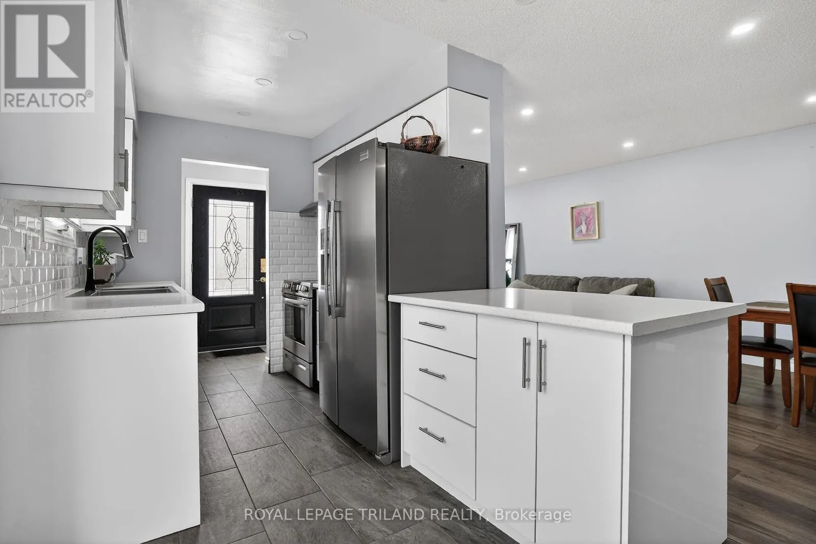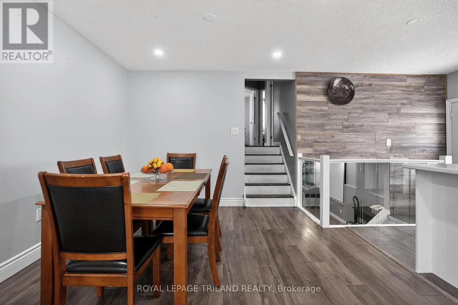 Cross Streets: JALNA AND CONWAY. ** Directions: FROM WELLINGTON AND BRADLEY HEAD WEST ON BRADLEY TO THE SECOND JALNA AND THEN LEFT TO CONWAY AND THEN TURN RIGHT ON CONWAY DRIVE. Beautiful semi-detached back-split backing onto a peaceful wooded area! Enjoy an open-concept main floor featuring ceramic and laminate flooring, perfect for modern living. The updated galley kitchen boasts a breakfast bar, stylish glass tile backsplash, and flows seamlessly into the formal dining area-ideal for entertaining. The spacious lower-level family room impresses with oversized windows, cozy wood-burning fireplace, and pot lighting, creating a warm and inviting retreat. The 4th level offers abundant storage and excellent future development potential. Numerous updates include Furnace and Air (2013-2014), shingles (2017), large new upper-level bedroom windows (2021). Step outside to a fully fenced backyard with a sundeck-perfect for relaxing or hosting guests. A true pleasure to show! (id:27476)