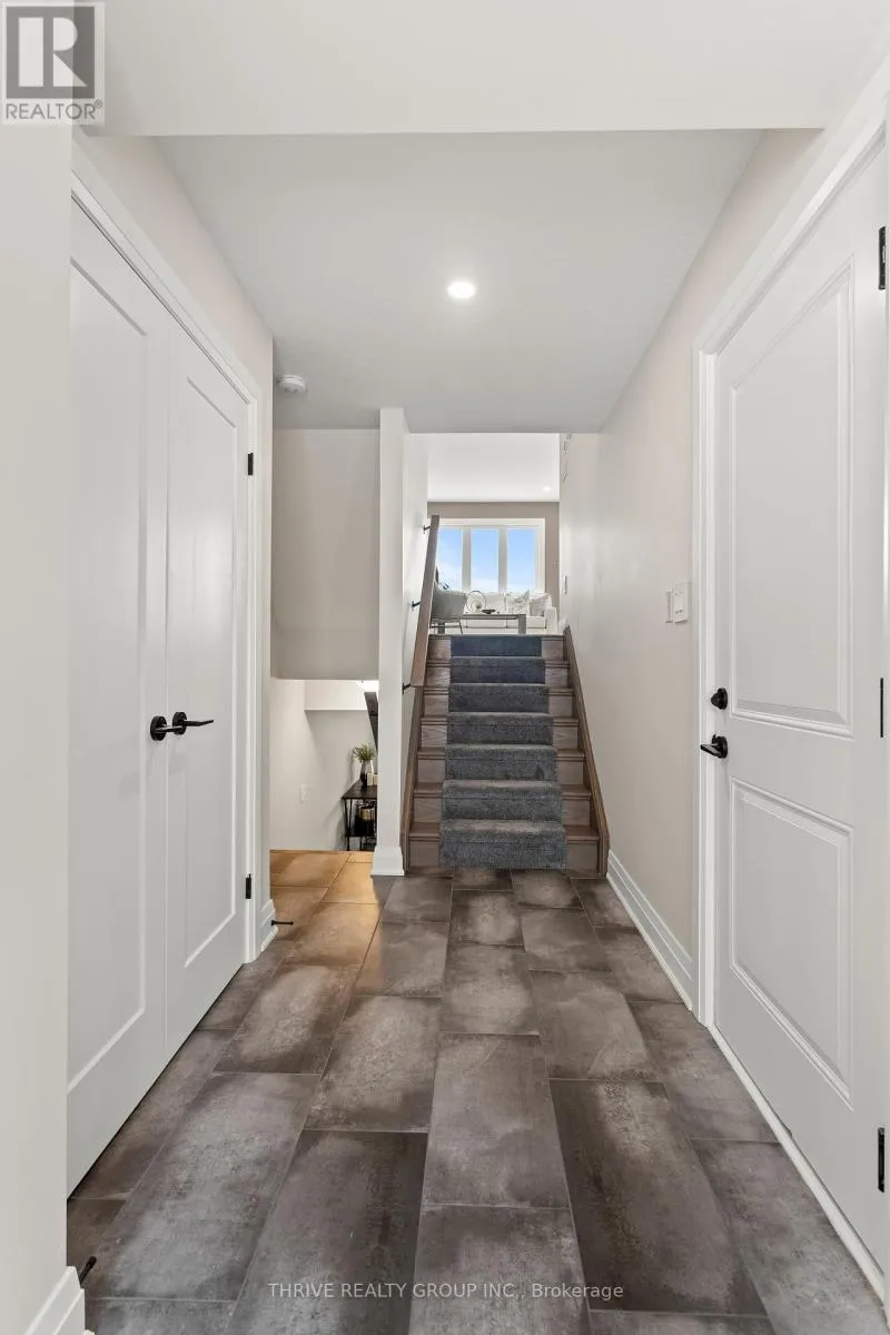 Linkway Blvd/Kains Rd. Welcome to Upper West, Rembrandt Homes' newest community in highly desirable Southwest London. This Unit must be Experienced to see and feel the QUALITY. This popular 3-bedroom, 2.5-bathroom model, The NEW WESTERDAM has been thoughtfully redesigned with modern enhancements and smart floor plan improvements throughout. Offering 1,782 sq. ft. of finished living space, this home stands out with a rare walk-out basement and two spacious decks, ideal for outdoor entertaining or quiet relaxation. The interior is finished with high-quality, contemporary selections, including quartz kitchen countertops, stylish ceramic tile, a custom-designed kitchen, and beautiful laminate flooring. The primary suite features a walk-in closet and a luxurious five-piece ensuite complete with a freestanding soaking tub, double vanity, and tiled glass shower. A convenient upper-level laundry closet adds everyday functionality. This MODEL has numbers Upgraded Finishes to Elevate it from its competition. Enjoy the convenience of a single attached garage with inside entry, plus parking for two additional vehicles. Built to Energy Star standards, this home includes triple-glazed windows for enhanced comfort and efficiency. Ideally located just minutes from the scenic trails of Kains Woods, and a short drive to major shopping, golf courses, and quick access to Highways 401 and 402, Upper West offers the perfect balance of lifestyle and location. Low condo fees cover shingles, windows, doors, decks, driveway, grounds, and exterior maintenance-making this a truly low-maintenance, lock-and-leave opportunity. See Builders Floor Plan for Dimensions (id:27476)