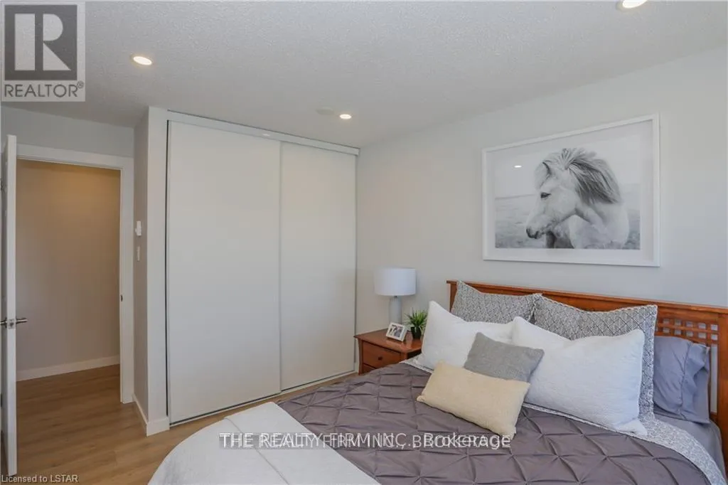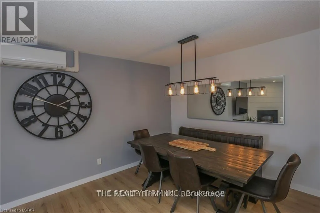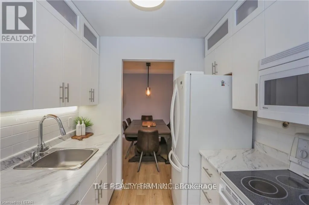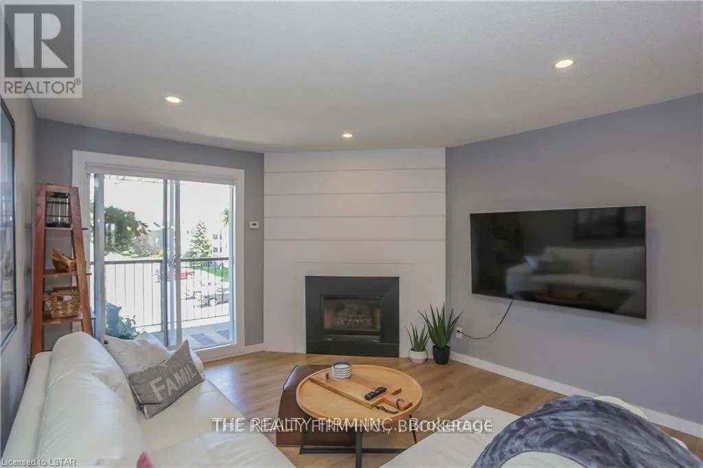 Cross Streets: Deveron and Commissioners. ** Directions: Heading south on Commissioners from Pond Mills road then turn right onto Deveron. Welcome to this beautifully maintained 3-bedroom, 1.5-bathroom end-unit condo perched on the top floor-offering privacy, natural light, and stylish upgrades throughout.Step inside to a spacious foyer complete with a large hall closet, perfect for everyday organization. The upgraded white kitchen features a modern tile backsplash, under-cabinet lighting, and ample cabinetry, seamlessly flowing into the open-concept dining and living area-ideal for entertaining or relaxing at home.The living room showcases a stunning gas fireplace feature wall, pot lights, and durable laminate flooring, with direct access to your east-facing balcony-the perfect spot to enjoy your morning coffee in the sun.All three bedrooms are generously sized and equipped with closet organizers for maximum storage. The bathrooms have been tastefully updated with ceramic tile finishes, while the in-suite laundry and dedicated storage room add everyday convenience.Additional features include ductless central air (2020) and water included in the condo fees.Located in the highly desirable Pond Mills neighbourhood, residents enjoy direct access to the outdoor pool and close proximity to the highway, hospital, shopping, public transit, and schools-making this an ideal location for commuters and families alike.Please note: Photos are from a previous listing; the property shows in the same condition. (id:27476)