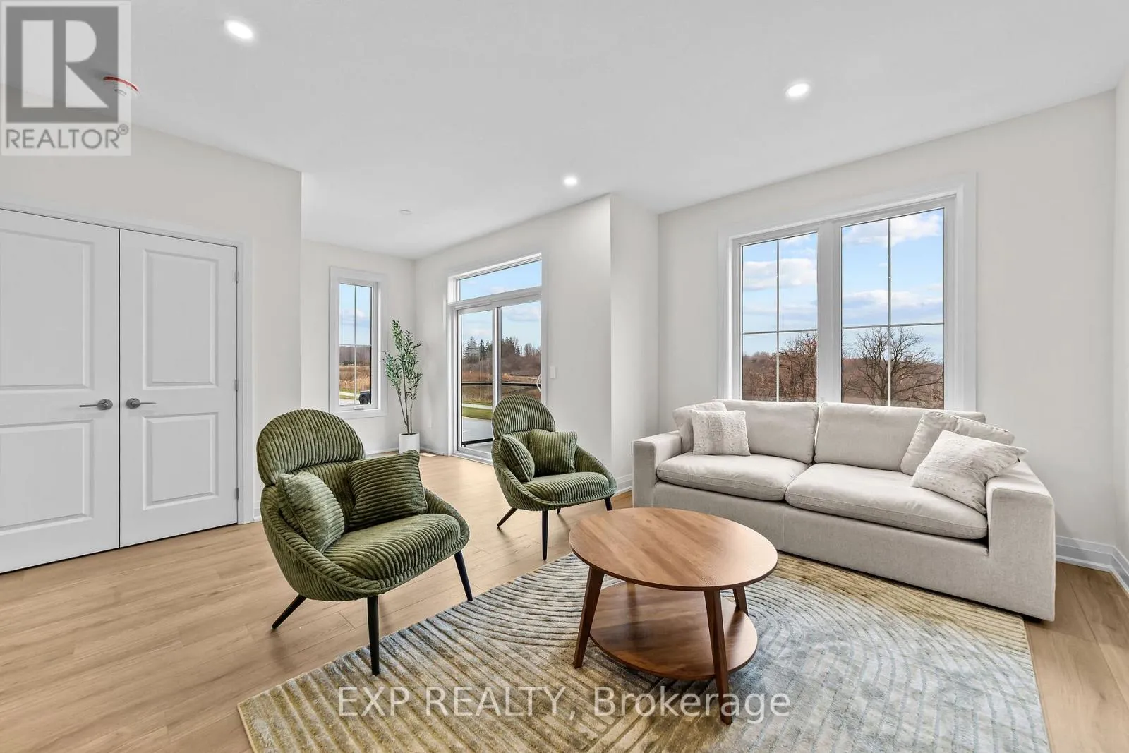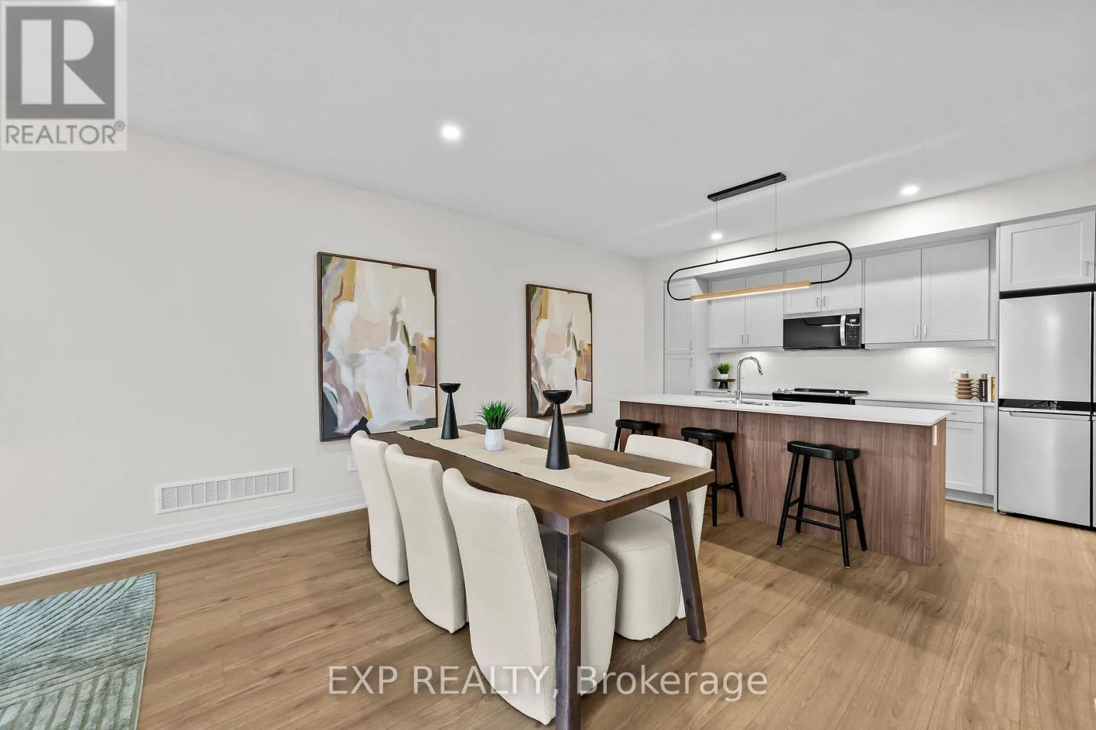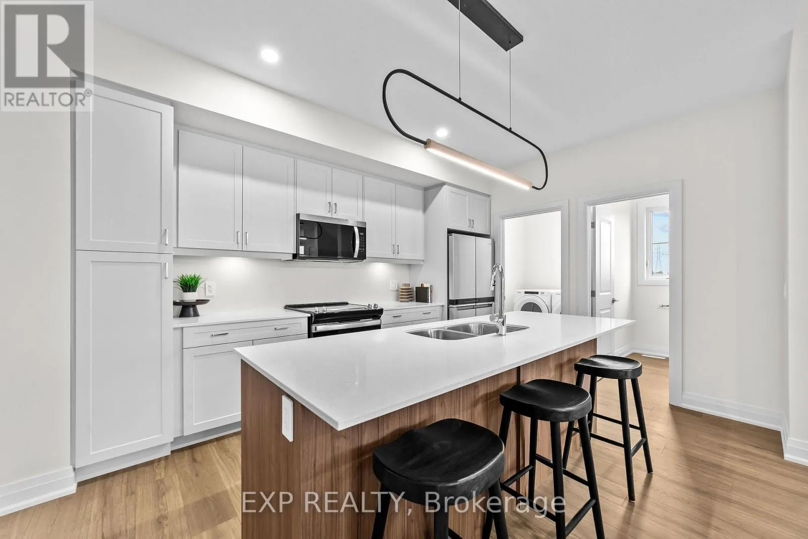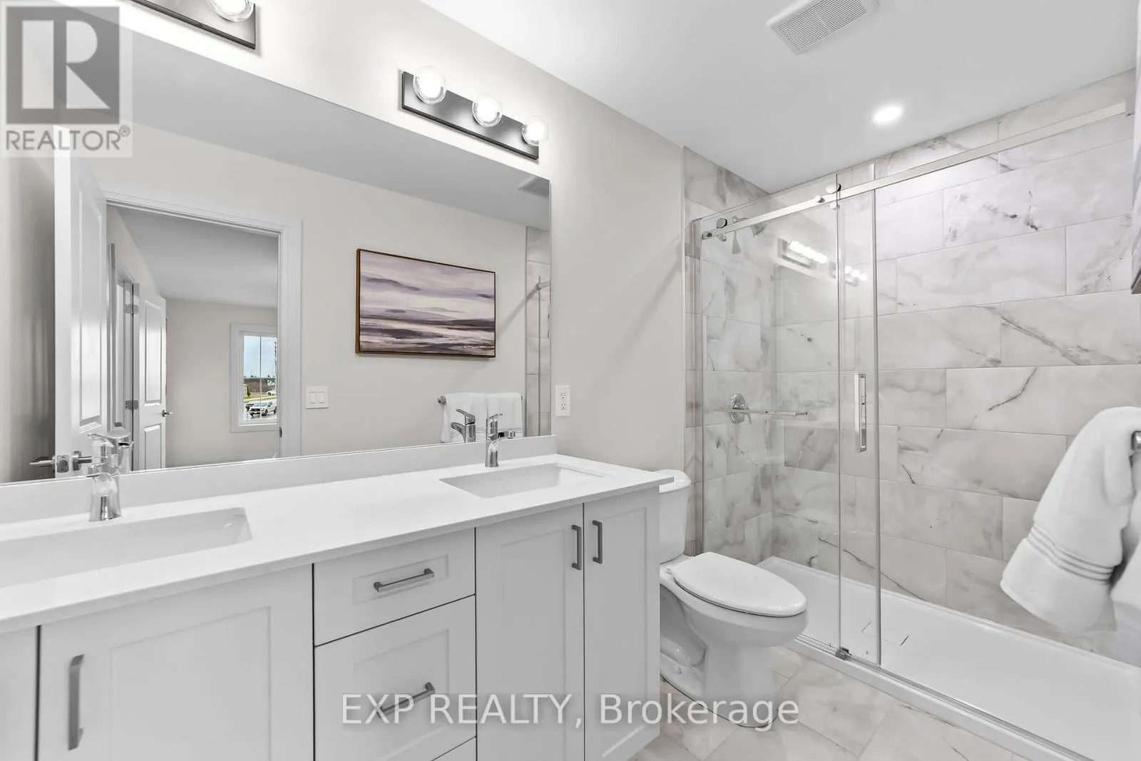Sheffield Blvd/Kettering Pl Designed as London's most attainable new home condominium community, every residence in this collection is an end unit, providing exceptional natural light, enhanced privacy, and a sense ofopenness that reflects the interior design vision. Inspired by natural tones and modern functionality, the homes feature a warm streetscape palette carried inside to create an inviting atmosphere for growing families, first time buyers, and newcomers establishing roots in the city. Offering approximately 1,795 square feet above grade as per builder plans, this three storey back to back semi centres everyday living around a bright open concept main floor with nine foot ceilings, waterproof luxury laminate, and a quartz kitchen with upgraded cabinetry that extends to a glass railed balcony suited for morning coffee or relaxed entertaining. The ground level Flex Room offers versatility for a home office, fitness area, playroom, or guest space, while the upper level unites three bedrooms and two full bathrooms. The primary suite stands out with an oversized layout currently staged with a king sized bed, a large walk in closet, an ensuite w/double vanity, and a modern plate glass walk in shower. Powder rooms on both the entry and main levels add everyday convenience, and the built-in garage with a Wi-Fi enabled opener pairs with a private driveway to offer secure, effortless parking. Nearby parkland and walkable amenities enhance everyday living, with Sheffield Park, playgrounds, sports centres, and the Thames River trail network all within easy reach. The community benefits from quick access to Highway 401, London's industrial park, East Park, and national retailers like Costco, supporting long term value for both end users and investors. Built by Johnstone Homes, a trusted London builder with more than thirty five years of experience, Parkside brings together quality materials, modern design, and low maintenance living in a location defined by nature, neighbourhood, and convenience. (id:27476)