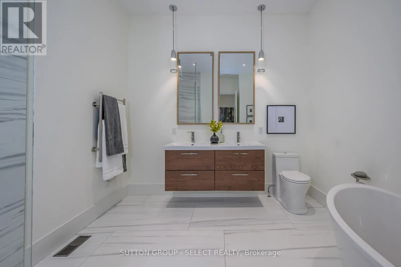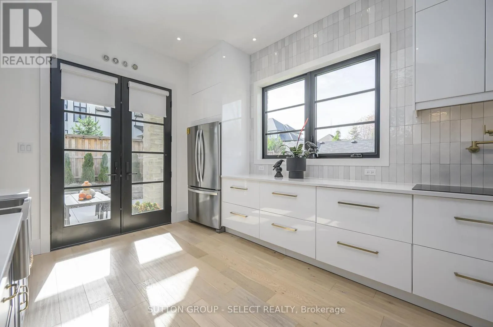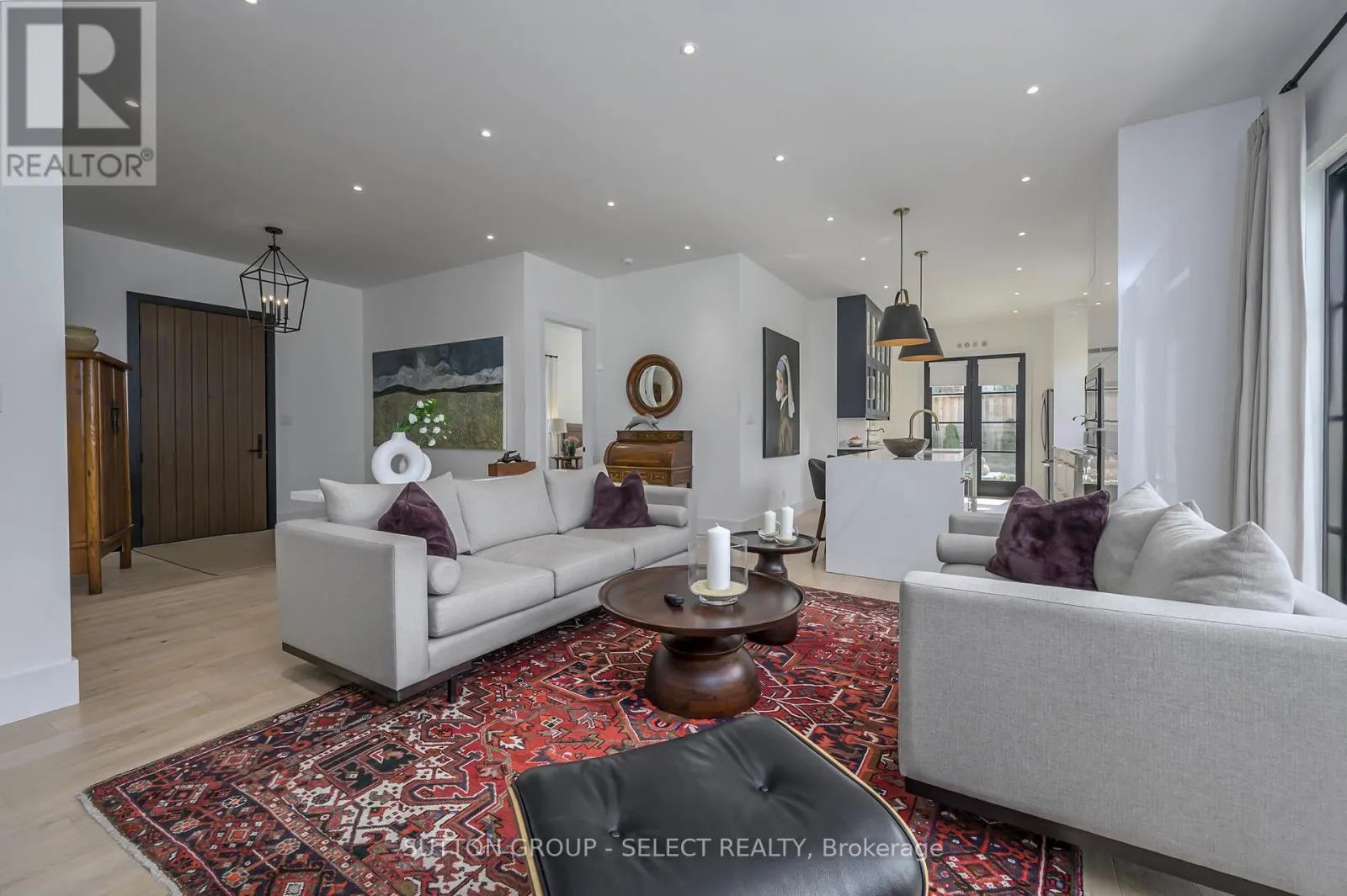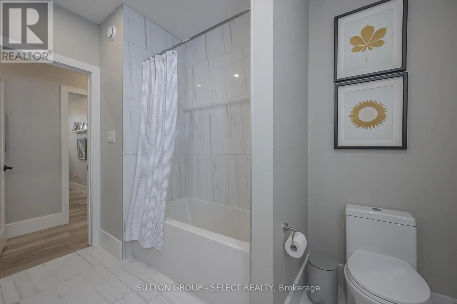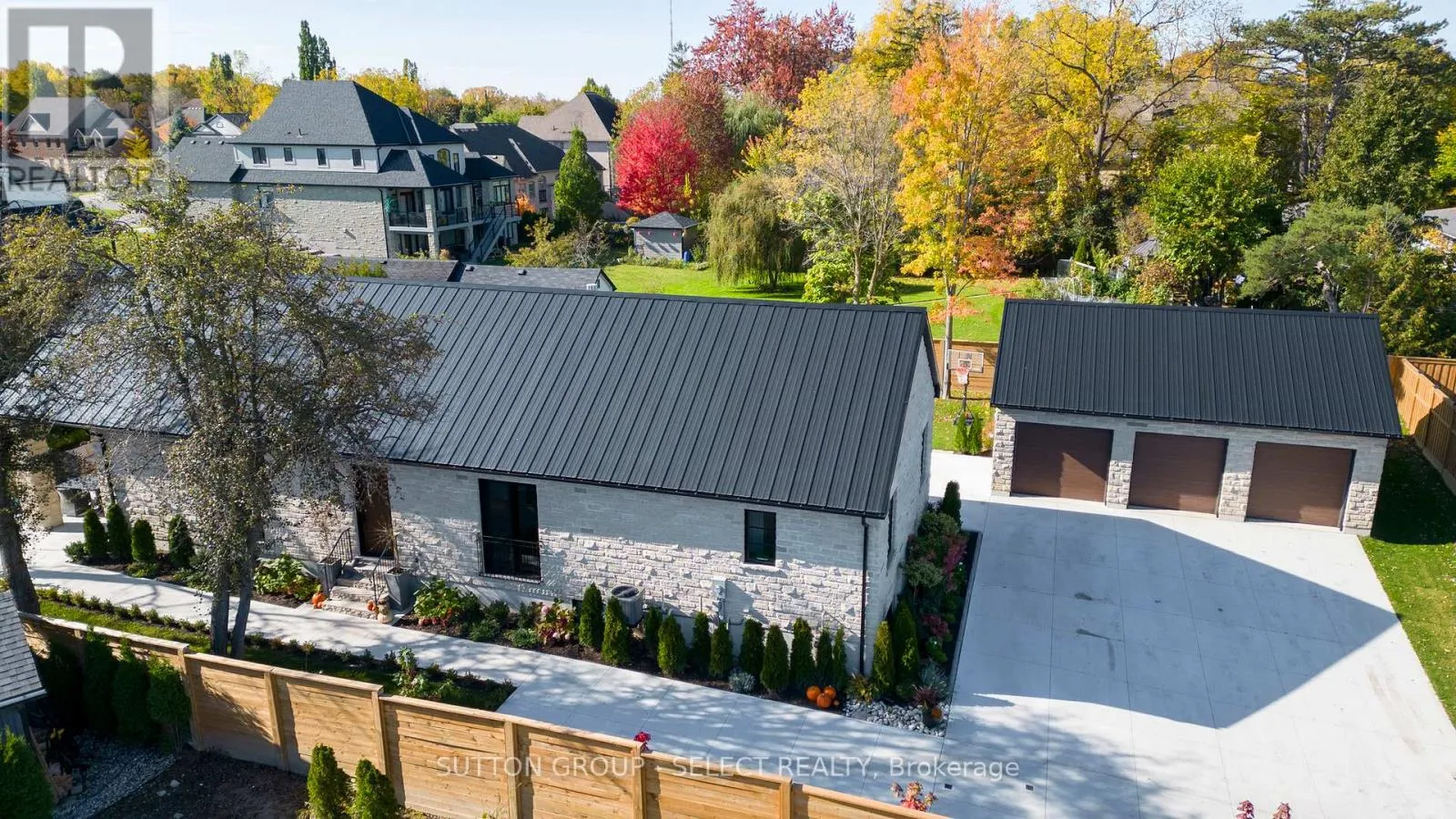 Cross Streets: Edwin Drive. ** Directions: Commissioners Rd E & Edwin Drive. Understated executive bungalow, set intentionally back from the road, behind the mystique of automated privacy gates, creating the English stone-cottage inspired residence found wrapped in trees, tranquility, and quiet prestige. A long, softly illuminated, concrete drive draws you away from traffic to a quiet fully fenced, pool-sized lot, with abundant guest parking and a separate 3-car garage. The timeless stone exterior, romantic Juliette balconies, and partially covered verandah set the stage for refined outdoor living, anchored by a two-sided fireplace that invites lingering evenings and effortless entertaining. Inside, soaring 10-ft ceilings on the main level and 9-foot ceilings in the lower level create a sense of volume and light for this modern-European aesthetic. The main floor unfolds in a thoughtful 2-bedroom plus den layout that balances intimacy and openness, centred around a showpiece kitchen with ceiling-height flat-panel cabinetry, quartz surfaces, and a wet bar/servery with garden door access to the terrace. Scandinavian-inspired baths and a serene, boutique-style primary suite complete the upper level with quiet sophistication, while the den adapts easily as a third bedroom. The lower level is equally impressive and remarkably versatile, offering 3 additional bedrooms, 2 bathrooms, a full second kitchen and laundry, and expansive living areas filled with natural light. Whether envisioned as a seamless extension of the main home, a private guest or teen retreat, or an elevated work-from-home, the possibilities are exceptional. Notably, there are no interior load-bearing walls on this level, allowing easy removal of fireplace and island to create an exceptional flex/games/media space. A metal roof, 3-bay garage w/ 220-amp service & the rare setback position complete this private, design-driven residence delivering beauty, presence, and flexibility in equal measure-quietly tucked away, yet moments from Hospitals, Wortley Village, and Highland Golf. (id:27476)