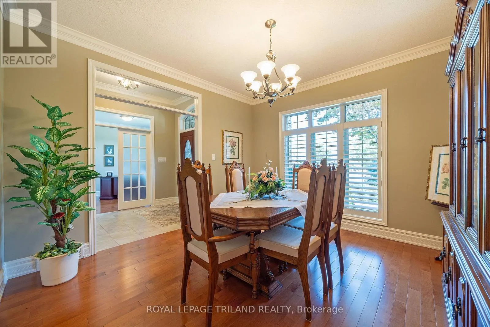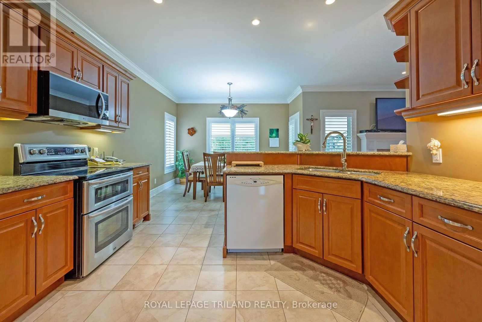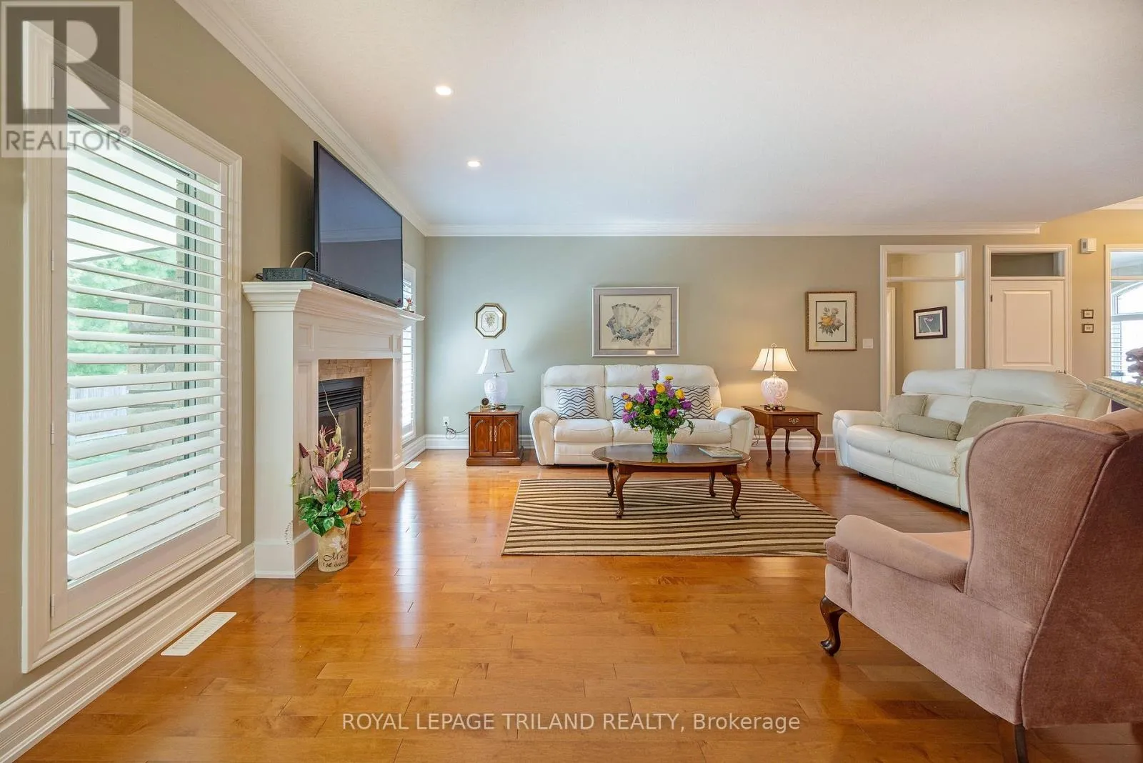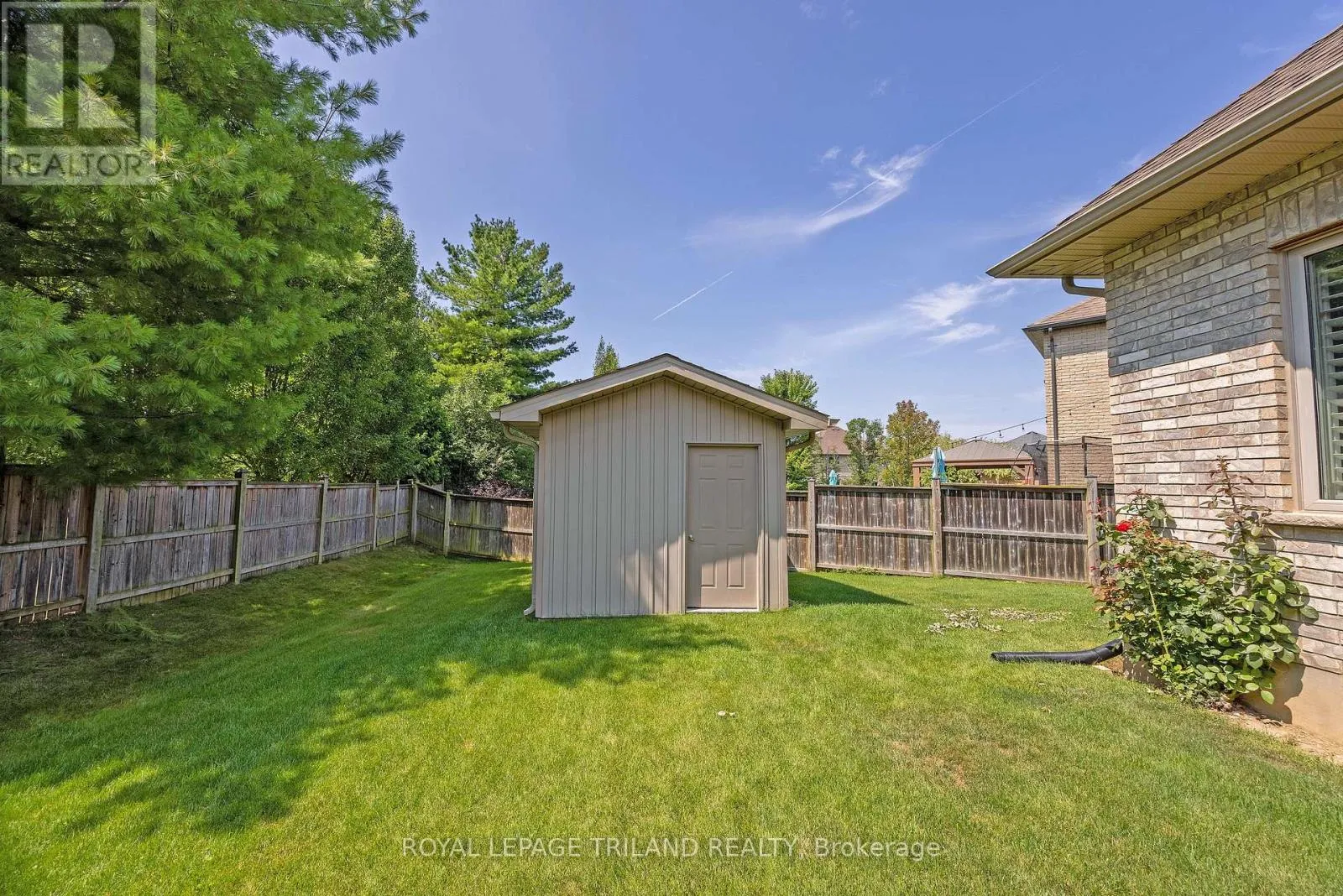 WICKERSON ROAD / LILAC GATE Welcome to Wickerson Heights in the desirable Byron, where this elegant custom executive one-floor ranch sits on a quiet, private pie-shaped lot surrounded by mature trees. Offering over 3,000 sq ft of finished living space, this home features 3+1 bedrooms, 3 full baths and quality construction throughout, including Anderson windows, 30 year shingles, crown moulding, 9 ft ceilings, transom windows, 6" baseboards, and maple hardwood floors. The kitchen includes granite countertops, a walk-in pantry, plus a bright breakfast nook, complemented by a formal dining room and a spacious great room with a custom mantel fireplace. The fully fenced yard provides exceptional privacy, generous entertaining space, and room for your personal oasis. Additional highlights include an oversized garage with a gas BBQ hookup and basement access, a covered concrete patio, an enclosed porch, and a large custom shed. The finished lower level offers a family room, bedroom, full bath, hobby area, ample storage, and cold cellar. Built with energy-efficient 2x6 construction, spruce roof boards, and upgraded insulation, this home delivers comfort and long-term value. A rare opportunity in a peaceful, established neighbourhood-quality like this and a mature private lot are hard to find. (id:27476)