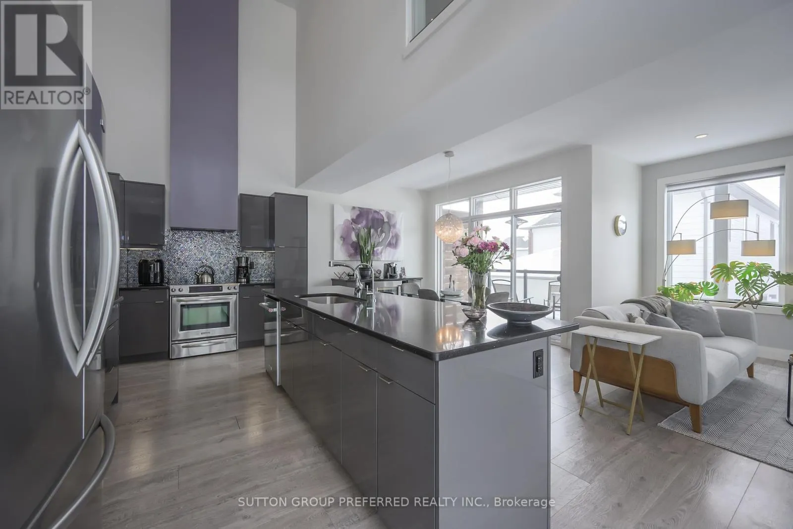 Cross Streets: Southdale and Boler. ** Directions: Fronting on Apricot Dr. Sleek and modern 2-storey located in prestigious Byron. The open-concept main floor offers an ideal layout for both entertaining and everyday living. The spacious kitchen features impressive 2-storey ceilings, a large island, and seamless flow into the dining and living areas, complete with a stylish wine bar. Two sets of sliding doors lead to covered balconies with glass railings, creating excellent indoor-outdoor living spaces. The living room showcases large west-facing windows and a cozy fireplace with updated tile surround.Additional main floor updates include custom window coverings (2025), dishwasher (2021), and a stone countertop in the powder room. The main floor laundry and mudroom combination offers custom built-in cabinetry, along with a new washer and dryer (2023). The innovative dual-washer machine allows for simultaneous, separate loads.The spacious primary bedroom features a walk-in closet and beautifully updated ensuite with quartz countertop, tile surround shower, tile flooring, and in-floor heating. Two additional generously sized bedrooms share a Jack and Jill bathroom.The thoughtfully redesigned walk-out lower level includes two additional finished rooms, a rec room, and a 3-piece bathroom.Further updates include concrete patio, fully fenced with composite privacy fencing and gate, A/C (2024), furnace motor, google nest, garage door opener with remotes and app capability. This vacant land condo has a monthly fee of $285, which covers snow removal for the driveway, steps, and porch, as well as maintenance of the private road. (id:27476)