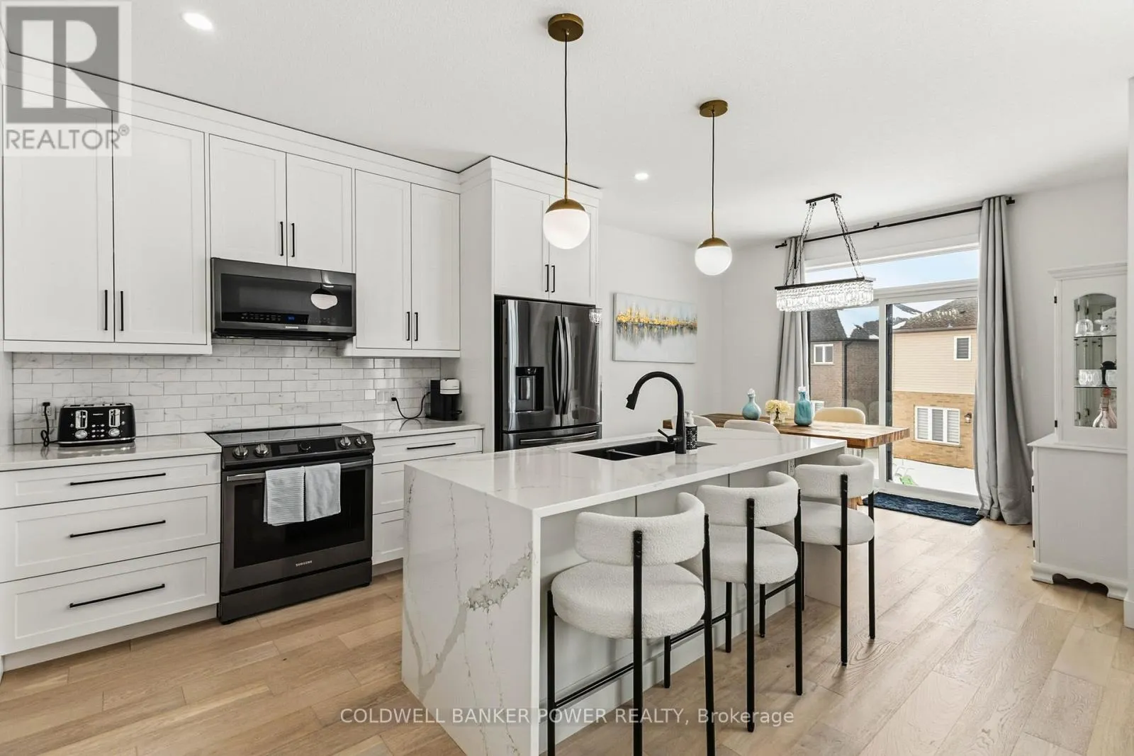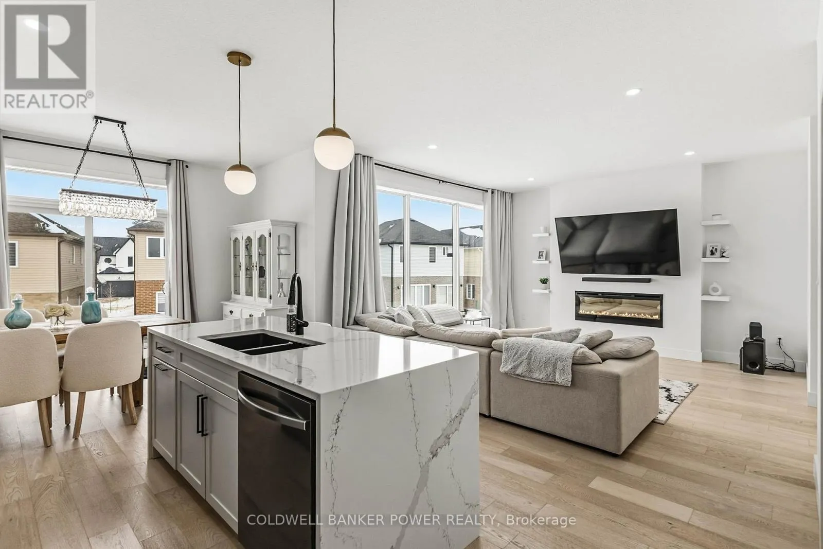 Commissioners Rd E & Hamilton Rd Welcome to 2884 Doyle Drive in London Ontario - a bright, modern 3+1 bedroom, 3.5 bathroom home with over 2,500 sq ft of finished living space, built by Woodfield Homes and set on a pie shaped lot near Summerside and the 401 corridor. The home offers a clean, stylish brick and Hardie board elevation with great curb appeal and an insulated double car garage. Inside, you'll find an open, easy flowing layout that is completely carpet free, finished with white oak engineered hardwood throughout and large windows that bring in tons of natural light. The two storey foyer creates a strong first impression, and the living room features a floor to ceiling window, built in fireplace, and floating shelves. The kitchen is crisp and functional with white shaker cabinets, a quartz waterfall island, sleek black appliance package, modern backsplash, ceiling height cabinetry, and a walk in pantry. The dining area opens to the backyard through oversized sliding doors, making it great for everyday living and entertaining. A mudroom with laundry off the garage adds practical convenience. Upstairs, a hardwood staircase with iron spindles leads to three generous bedrooms. The primary suite includes a large walk in closet and a 5 piece ensuite with double vanity and a glass walk in shower with dual rainfall heads. Two additional bedrooms share a modern four piece bath. The fully finished lower level adds even more usable space with a large rec room, a full three piece bathroom, and an extra bedroom that works well for guests, a home office, or movie nights. Located minutes to Highway 401, schools, shopping, Meadowlily Woods, and Citywide Sports Park, this is a move in ready home that blends modern style with everyday comfort. (id:27476)